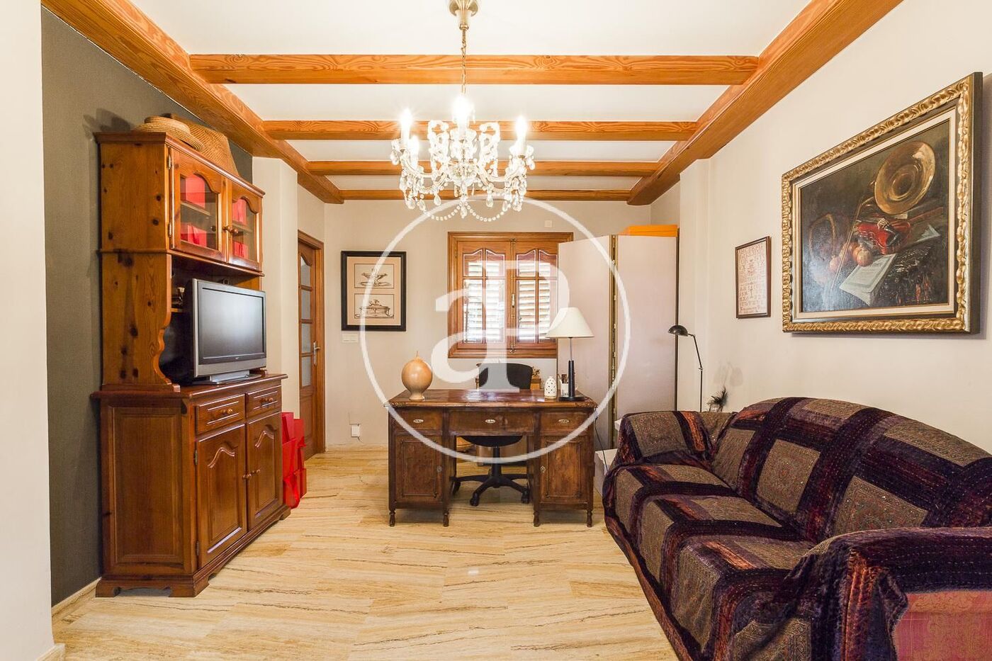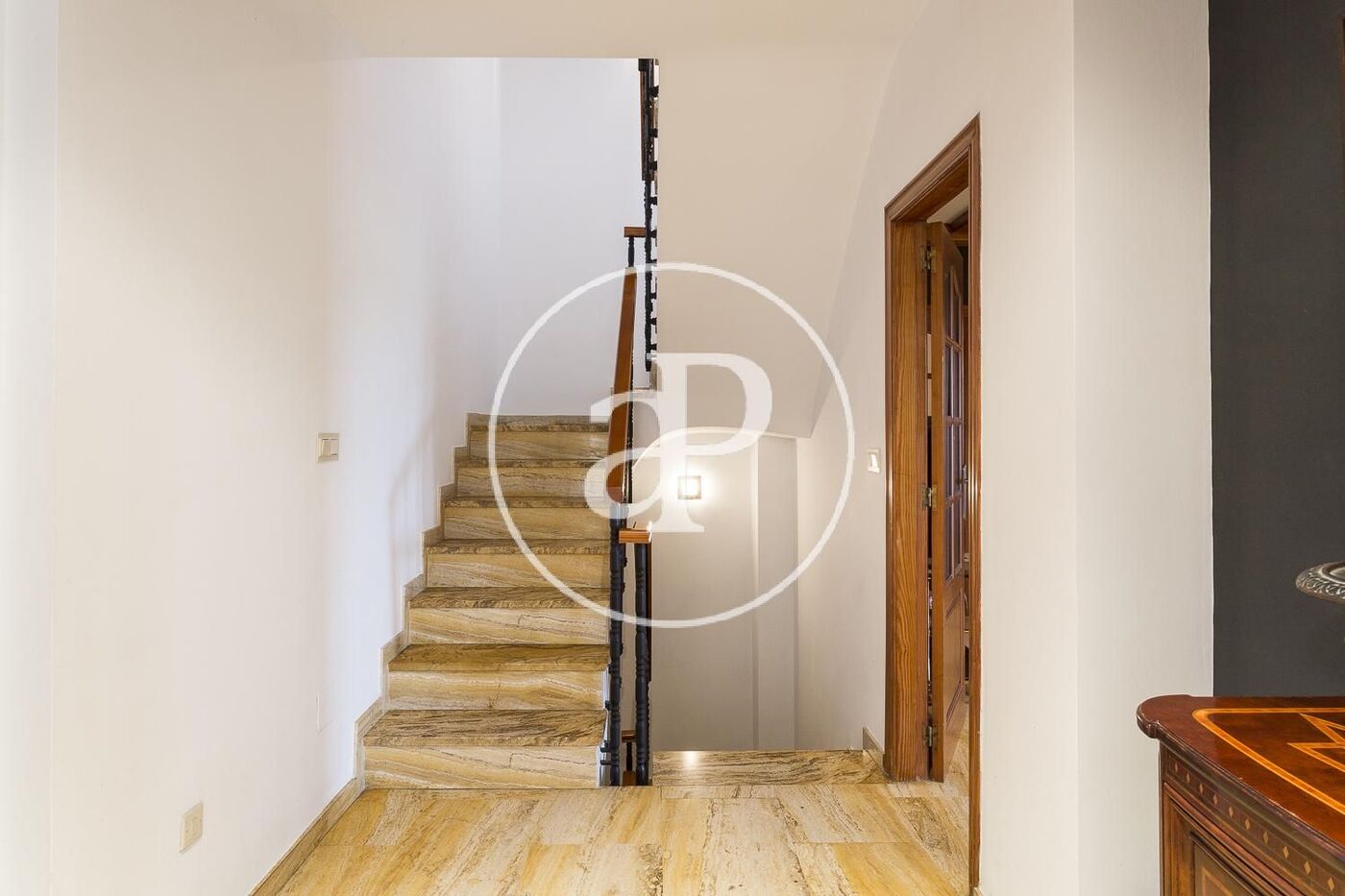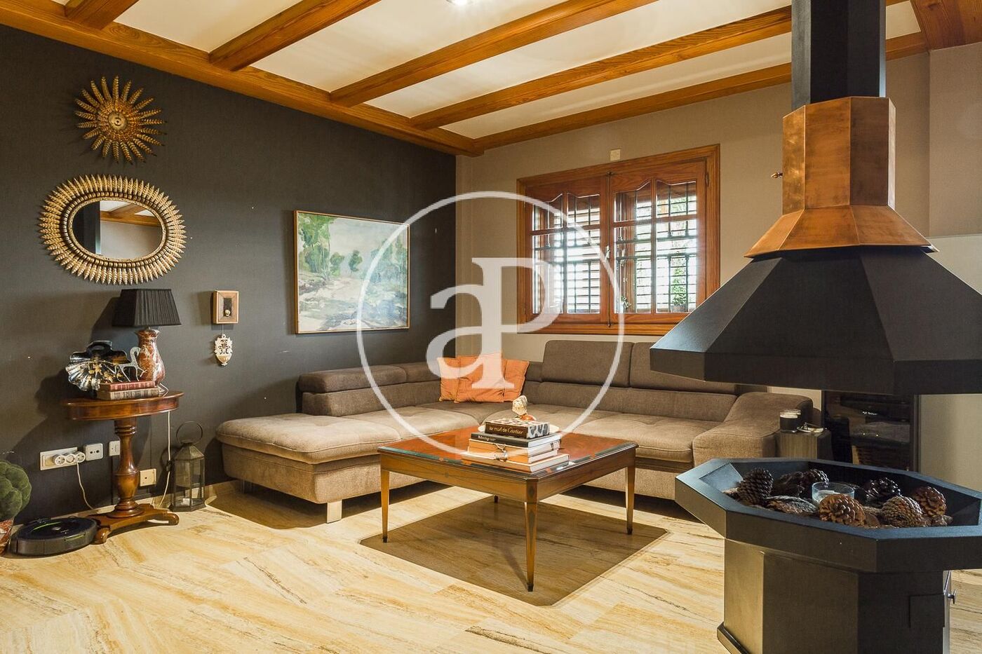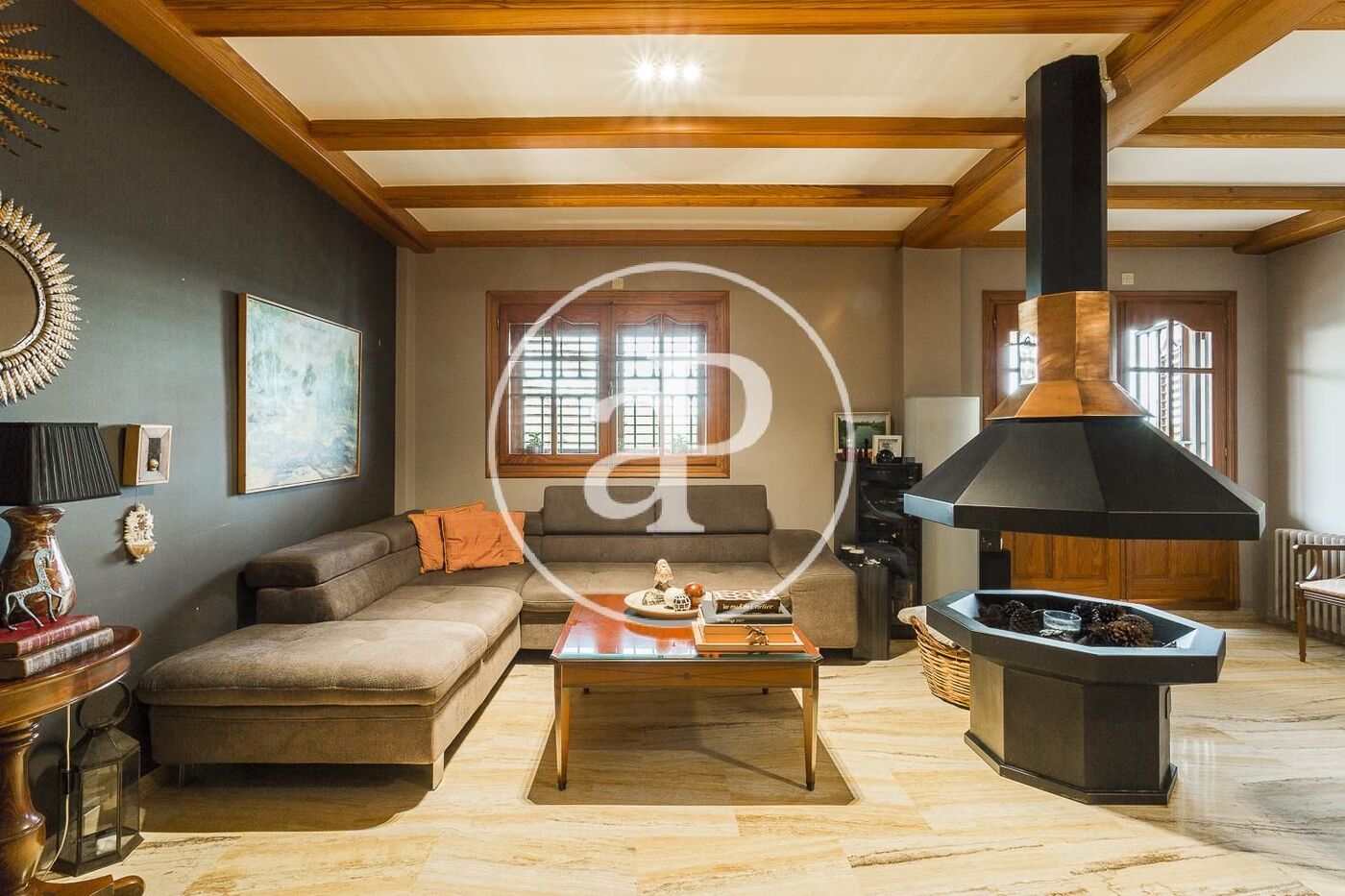 Aire acondicionado, calefacción central por radiadores, vigas de madera en techos, pavimento en salón comedor en mármol travertino y parquet en todas las estancias de noche, gas natural…