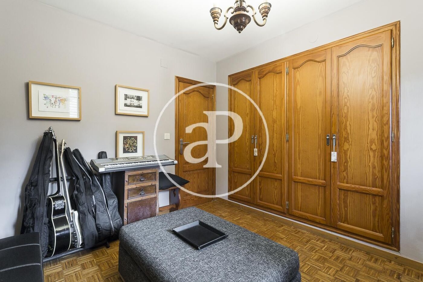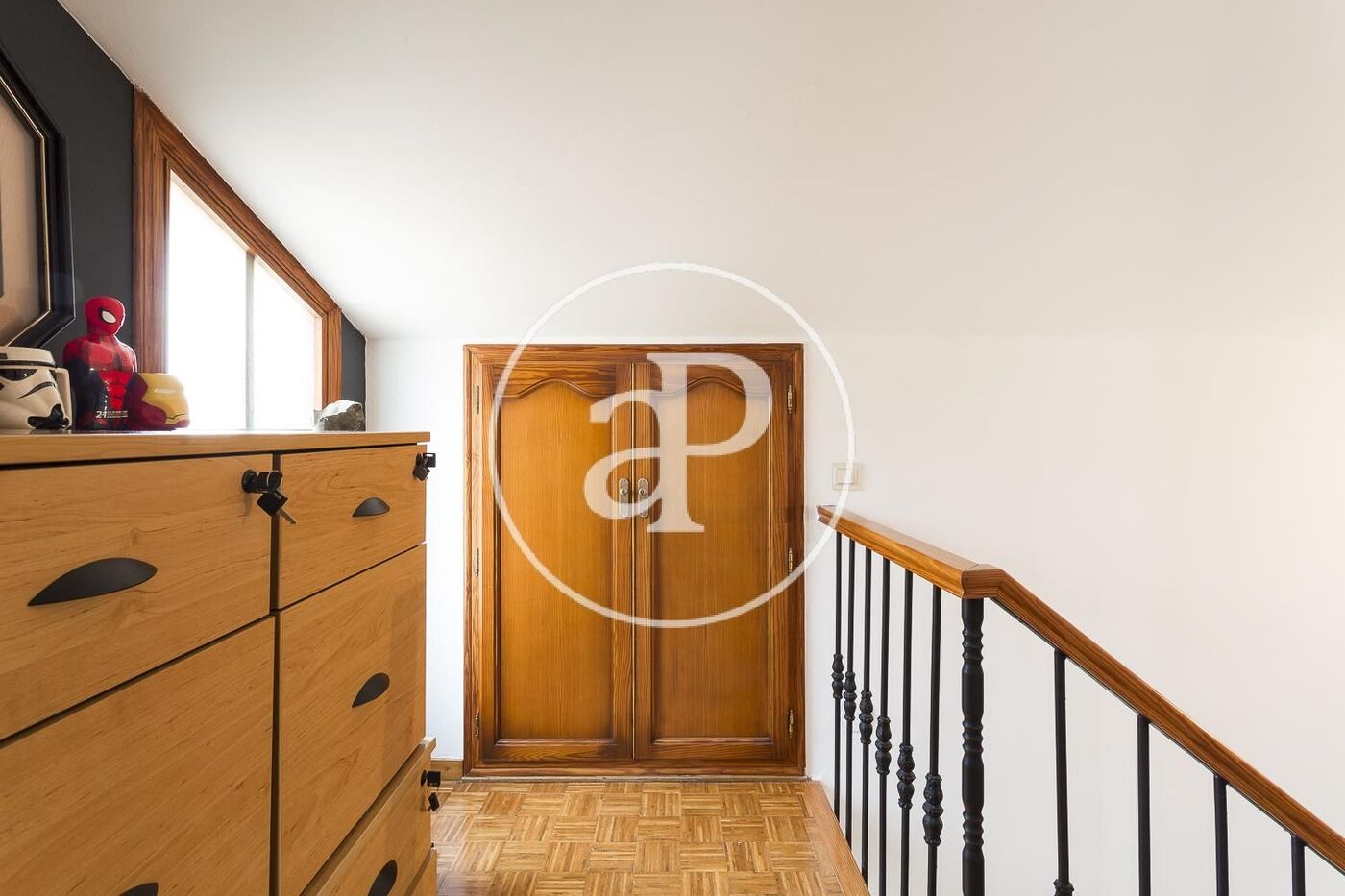 En la primera planta se encuentra la zona de noche con tres habitaciones, dos de ellas dobles y la principal con terraza y vistas a Montecañada, un baño completo. En la buhardilla nos encontramos una gran habitación con un baño en suite y acceso a una terraza independiente. En el sótano tenemos una gran sala que hace de apartamento independiente con acceso a la piscina, zona de gimnasio, lavandería, trastero y garaje para dos coches.