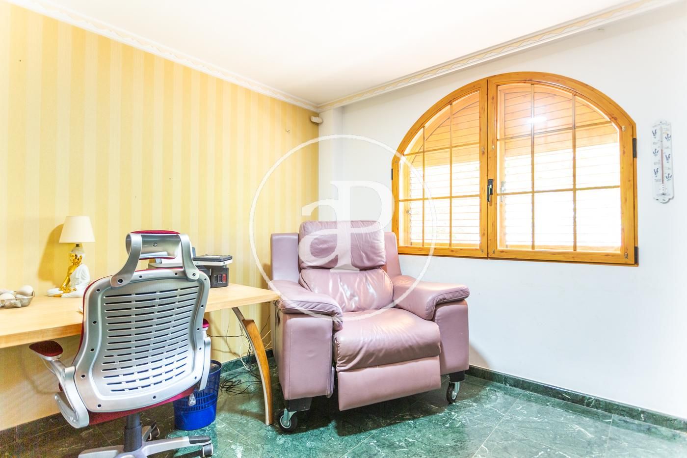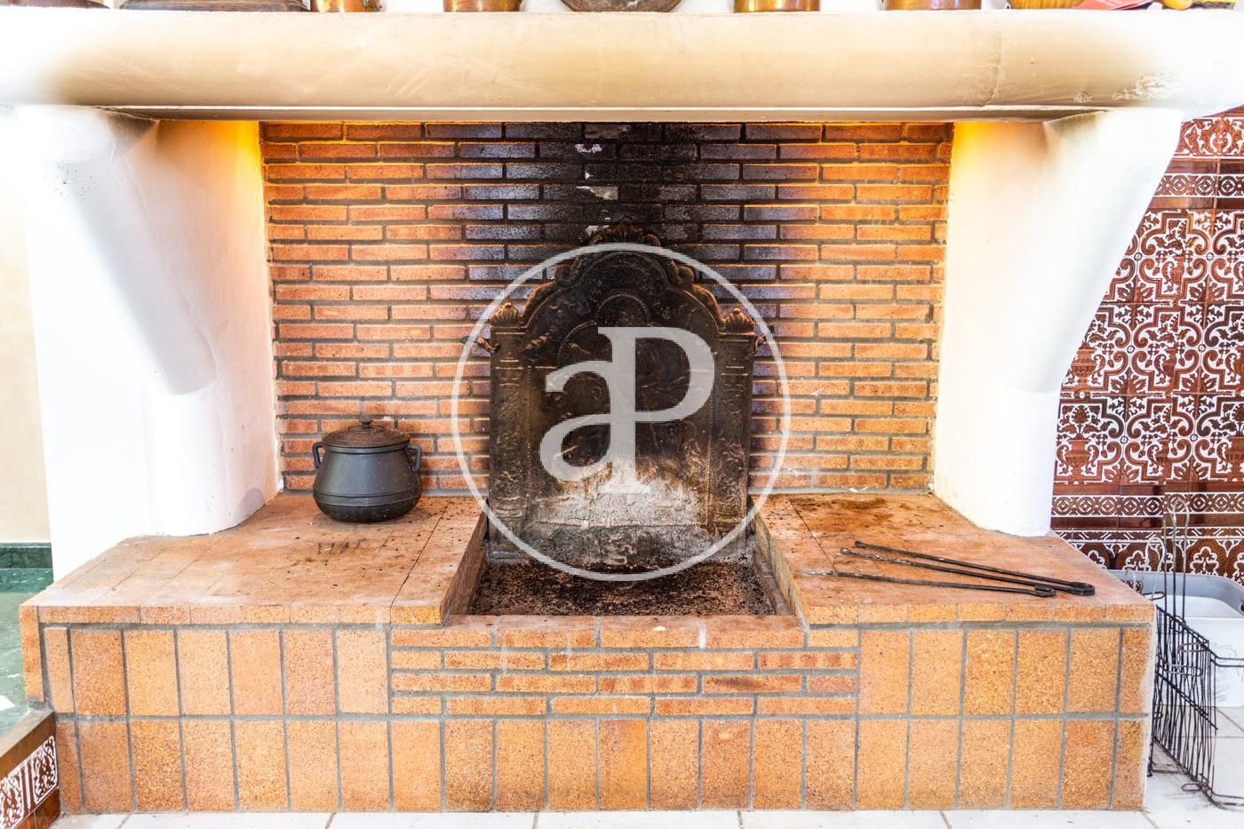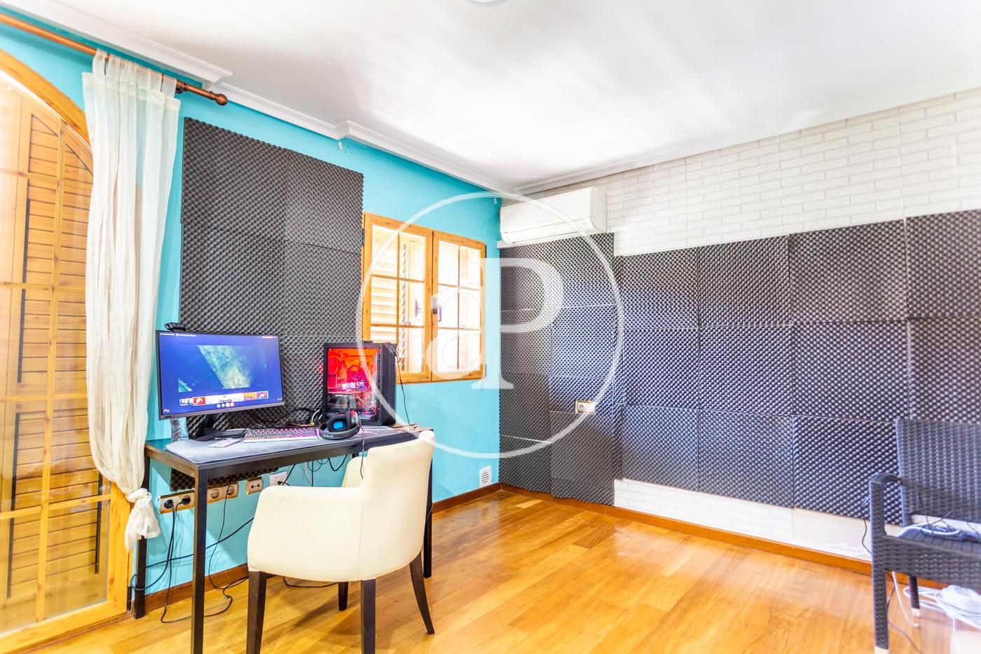 Una casa pareada esquinera de tres lados rodeada de jardín con su propia piscina y amplia terraza con su paellero. 7 habitaciones y 6 baños completos están repartidos entre 2 plantas, la buhardilla y la planta semisótano.