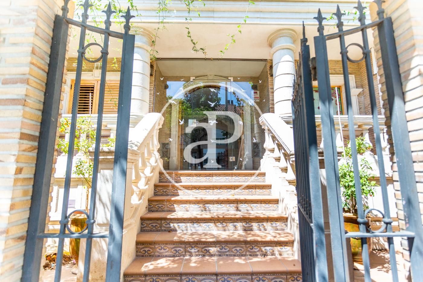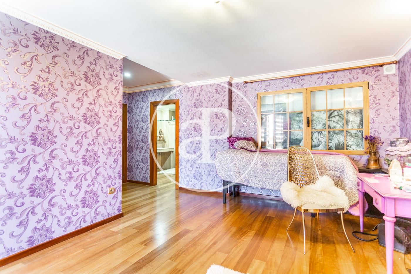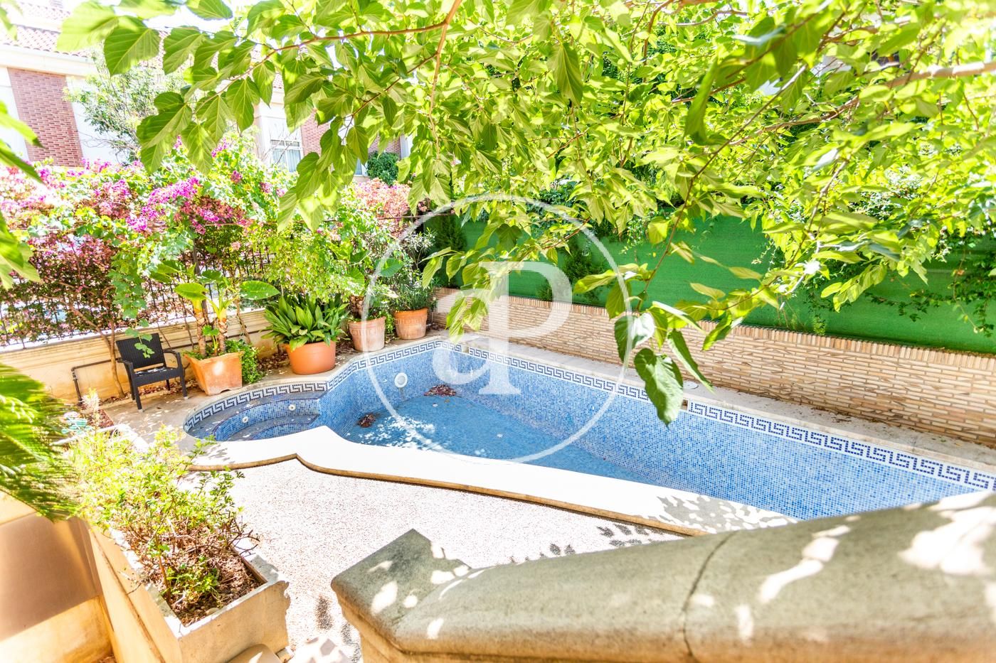 Una casa pareada esquinera de tres lados rodeada de jardín con su propia piscina y amplia terraza con su paellero. 7 habitaciones y 6 baños completos están repartidos entre 2 plantas, la buhardilla y la planta semisótano.