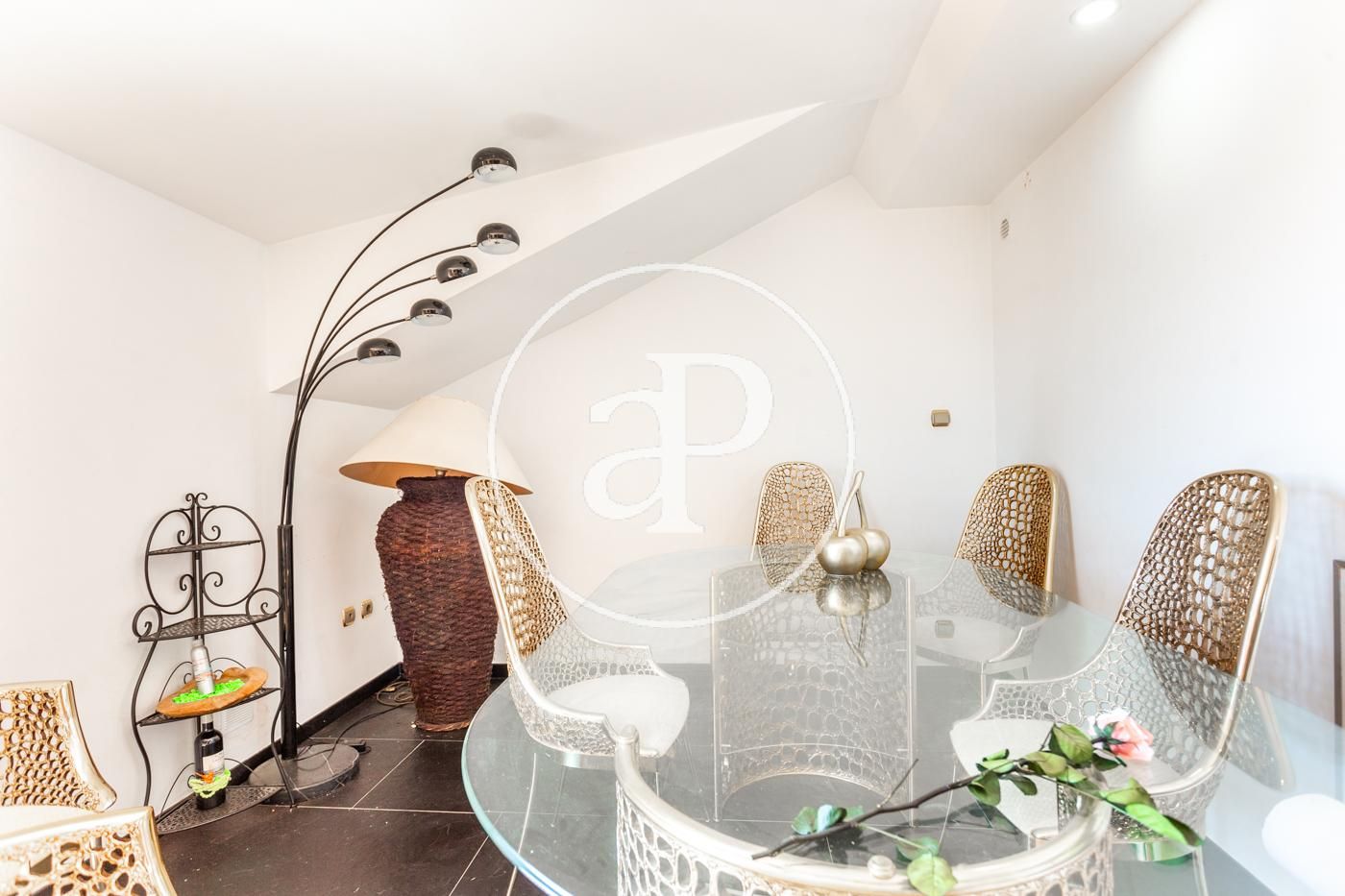 Situado en una tranquila calle residencial, con escaso tráfico y a poca distancia de comercios y zonas de ocio, se encuentra este encantador dúplex en planta baja, con una superficie construida de 82 m². El inmueble forma parte de un edificio de 2008, perfectamente conservado, y dispone de acceso privado a la propiedad. Con una distribución funcional que optimiza el espacio, la vivienda de 82 m² destaca por sus techos altos y grandes ventanales que permiten la entrada de luz natural durante todo el día. En la planta inferior, de 57,35 m², se encuentra el salón-comedor con una cocina americana completamente equipada, que conecta con un pequeño patio interior de aproximadamente 2,60 m². También en esta planta se ubica la habitación principal en suite, con baño privado equipado con bañera y armario empotrado. La planta superior, que se accede mediante una escalera de caracol, cuenta con una superficie de 57,35 m². Aquí encontramos una habitación de tamaño mediano con acceso a un balcón de 3 m², y una habitación individual que puede servir como oficina o vestidor. Esta planta dispone también de un baño amplio con plato de ducha. El estado de conservación de la propiedad es impecable, equipada con aire acondicionado y calefacción mediante sistema de aerotermia y radiadores tradicionales. Las ventanas de doble acristalamiento ofrecen aislamiento térmico y acústico, contribuyendo a un mayor confort. Además, existe la opción de adquirir una plaza de garaje doble en el mismo edificio, adicional al precio de la vivienda.