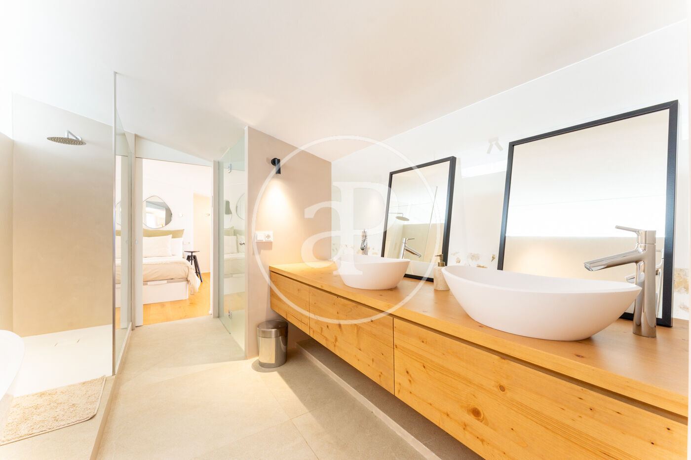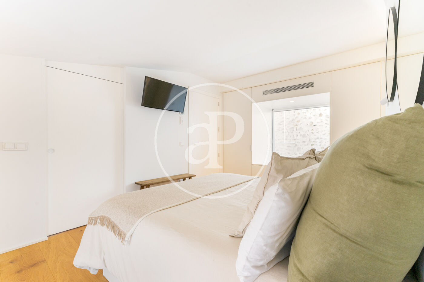 Lujoso ático dúplex amueblado de 180 m2 con una terraza privada de 30 m2 y vistas a la emblemática calle Passeig de Gracia, en una finca totalmente restaurada con un gusto exquisito, cuidando hasta el más mínimo detalle. En la planta inferior, que es zona de día, se encuentra un precioso salón comedor con muebles de diseño y con acceso a la terraza, una cocina totalmente equipada con electrodomésticos de calidad y todos los utensilios de cocina para cocinar desde el primer día y un baño completo. En la planta superior hallamos dos habitaciones dobles en suite y un despacho. La vivienda ha sido diseñada y decorada por el codiciado arquitecto de interiores Lázaro Rosa Violán.  Todas las estancias están completamente amuebladas y listas para entrar solo con el equipaje.  El alquiler incluye servicios mantenimiento, limpieza una vez por semana con cambio de sábanas y toallas, luz, agua, AACC, calefacción, TV SAT y conexión a internet de alta velocidad, tanto en su apartamento, como en toda la finca. En la azotea del edificio se encuentra una impresionante terraza exterior con piscina, gimnasio, sauna, zona con proyector para cine y demás programas, barbacoa, todo reservable para eventos privados. Además, la finca dispone servicio de conserjería de 07:00 a 23:00, código de seguridad de accesos, zona de parking para bicicletas y trastero. La finalidad del contrato es temporal. "La realidad del mobiliario puede no corresponder exactamente con las fotografías mostradas en este anuncio".* En cumplimiento de la Ley 12/2023 y la Llei 18/2007 informamos que:Índice de R.P.LL: 24,00 € / m2 Respecto a la presente propiedad no existe certificado informativo estatal de referencia de precios de alquilerRenta último contrato de arrendamiento: 15.000,00 €Este propietario ostenta la condición de gran tenedor.La presente propiedad tiene la consideración de suntuaria por razón de superficie y/o renta, y por ello de conformidad a la LAU no es de aplicación el índice estatal de referencia de precios de alquiler.