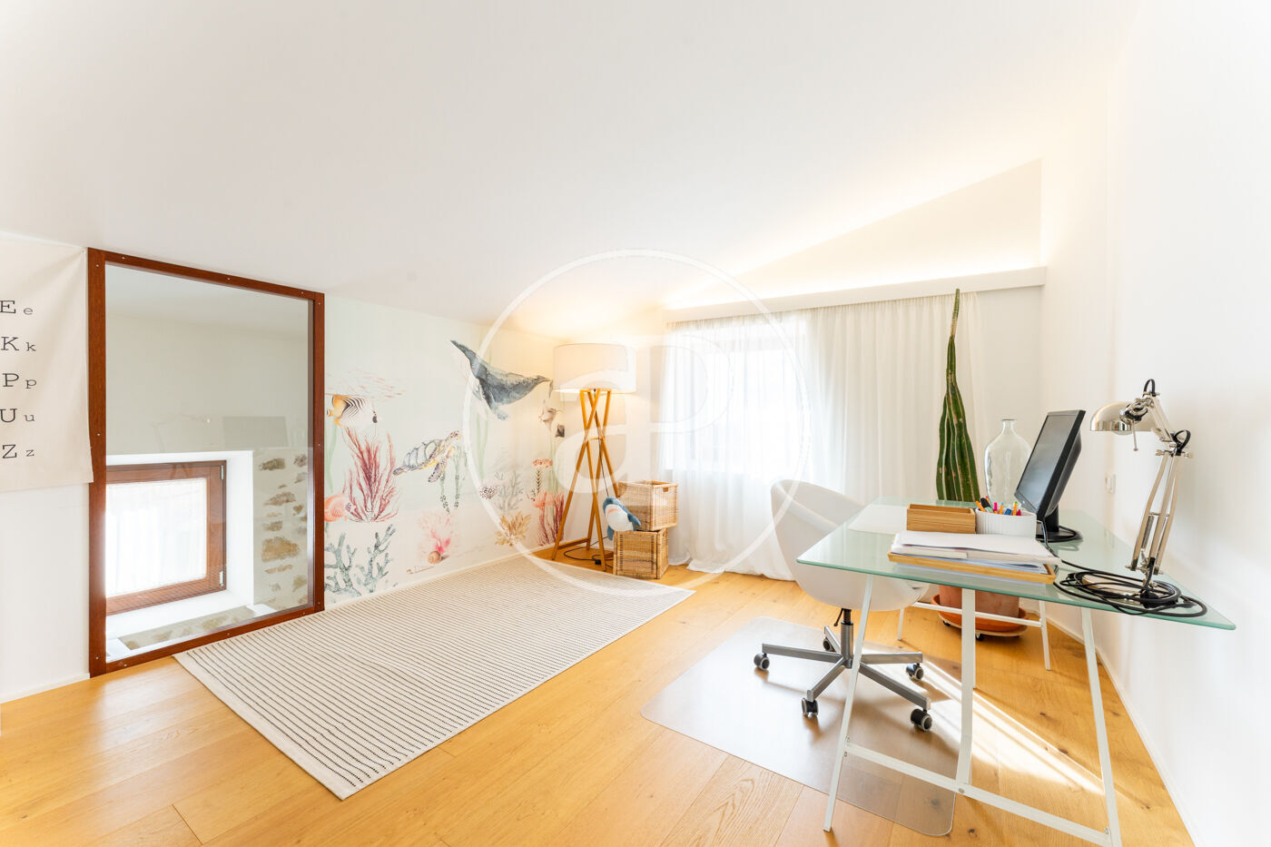 Cerca de los túneles de Vallvidriera a 10 minutos de Barcelona, encontramos esta espléndida adosada en el centro de Mirasol. Andando a un par de minutos encontrará la estación de Mirasol, el mercado, comercios y restauración, el colegio Catalunya, La Farga, el Casal de Mirasol y la futura piscina climatizada que terminará sus obras en menos de un año que os facilitará la vida creando un entorno ideal para la vida familiar. Los propietarios han invertido muchísimo tiempo y dinero en esta propiedad, otorgándole varios lujos muy poco comunes en este tipo de inmuebles. Comenzamos nuestra visita en esta casa de 273 mts² según catastro, tras atravesar el jardín. Solamente entrar, encontramos un recibidor con armarios hechos a medida, que nos conduce hacia los diferentes espacios comunes de esta casa, cocina comedor totalmente equipada, aseo de cortesía, salón comedor con chimenea a gas y una cristalera, también a medida, con puertas correderas de madera, cajones y la esquina acristalada. A pie de salón, está el jardín privado, con puerta directa a la comunidad con piscina y jardín donde disfrutar los veranos, que compartirá con tan sólo diez vecinos. En la primera planta, a la que se accede por una escalera con pared acristalada al salón, por lo cual la luz natural lo invade todo, llegamos a las dos habitaciones, el baño que comparten y la master suite, con vestidor y vistas al jardín. En la segunda planta, una habitación doble, con un salón privado, zona de trabajo, terraza y un baño completo con inesperado regalo de una sauna!! Bajando a la planta inferior, dos plazas de parking, un trastero, zona de lavandería con espacio de almacenaje y otra sorpresa más; una pequeña bodega con la temperatura  controlada. Todas las calidades de esta casa son premuim. Sistema de climatización frío calor, independiente en cada planta. Todos los muebles empotrados son de madera de sicomoro y mukari. Todas las aberturas con doble cristal y puente térmico. No dude en contactar con el equipo experto de aProperties Real Estate para la búsqueda de su nuevo hogar. Siempre cercanos, eficaces y profesionales en todo el proceso.