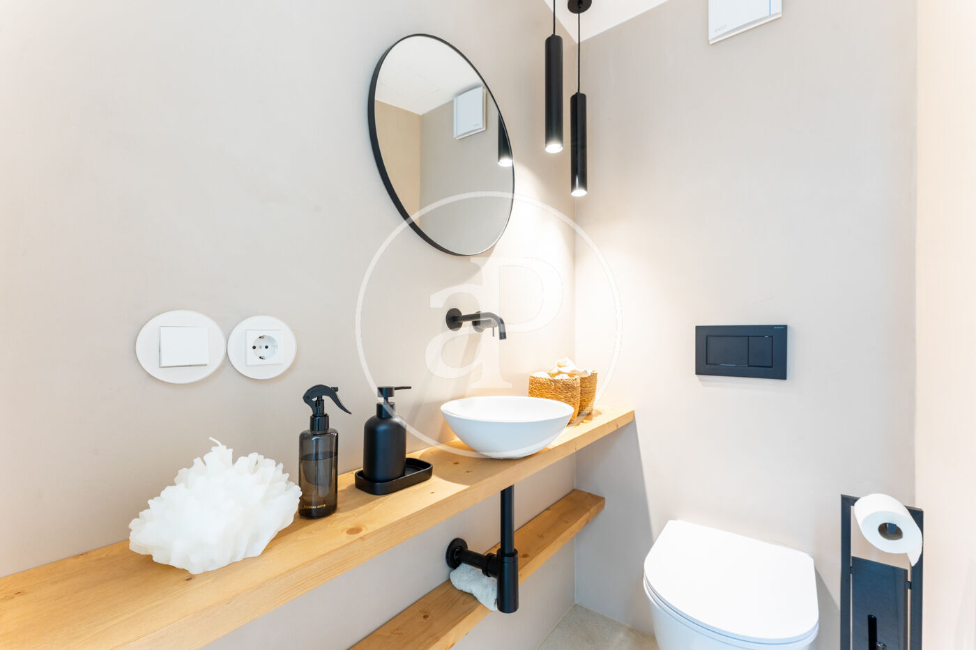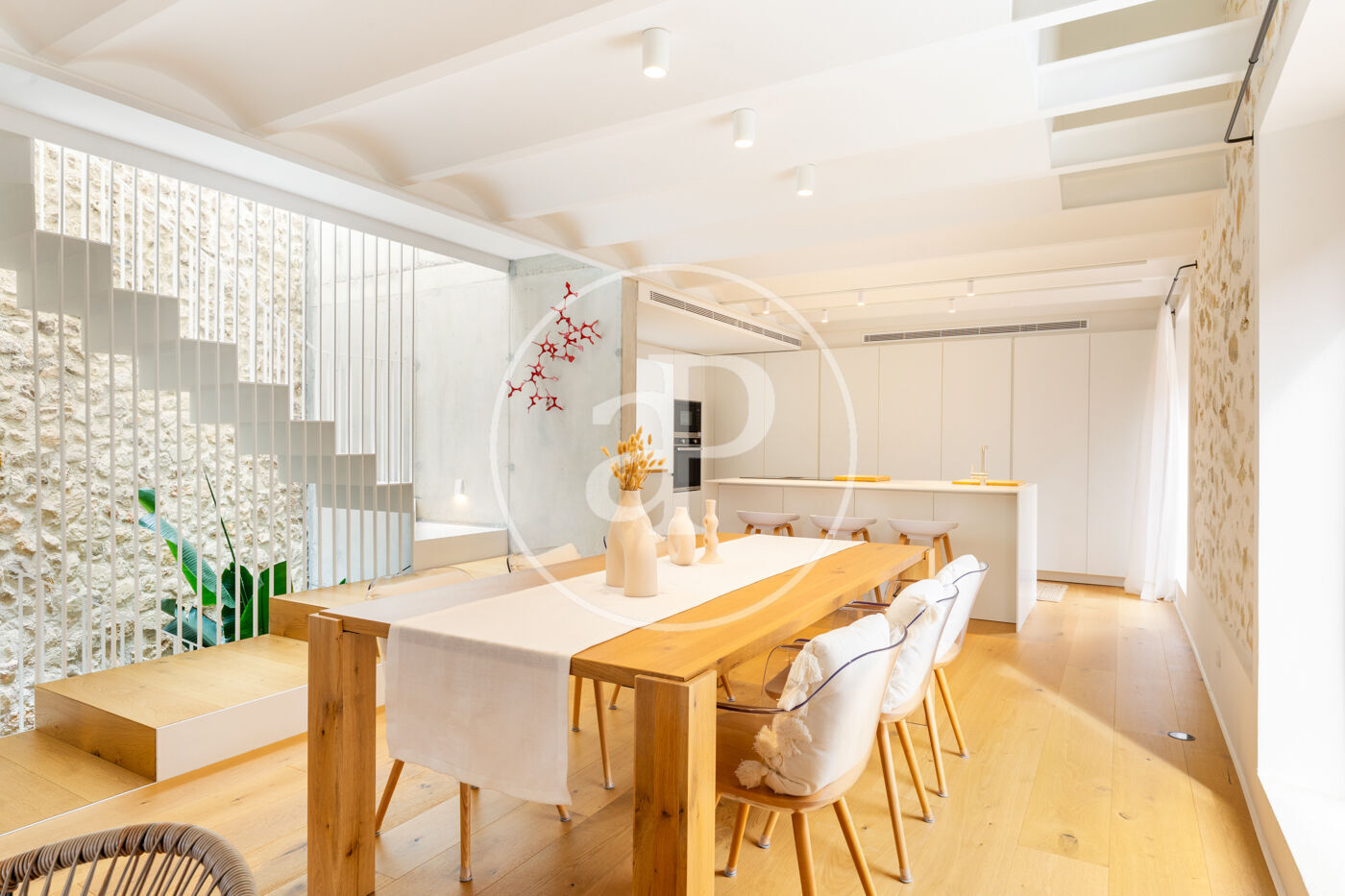 aProperties presenta esta espectacular vivienda que no te dejará indiferente por su impresionante combinación de estilos decorativos morunos modernos con toques clásicos, y su inmejorable ubicación en una de las mejores zonas del Cabañal, a escasos minutos del mar. Al entrar, serás recibido por una hermosa puerta y ventanas de madera restauradas que añaden un toque de calidez. El espacio diáfano te sorprenderá: una zona de comedor con una cocina abierta completamente integrada, equipada con electrodomésticos de alta gama, perfecta para los amantes de la gastronomía. Además, en este mismo ambiente, encontrarás un baño completo con un diseño atractivo, espacioso y práctico, que cuenta con una amplia ducha. Continuando, accederás a un peculiar salón donde dos cómodos sofás invitan a relajarte, mientras una pared-biblioteca, repleta de cultura, te inspirará a sumergirte en tus lecturas favoritas. La propiedad cuenta con dos habitaciones que dan a un encantador patio interior, accesible desde el salón, ideal para decorar con diferentes plantas, creando un ambiente de tranquilidad que transmitirá serenidad al hogar. Cada rincón de esta casa ha sido reformado con materiales de alta calidad y acabados de lujo, garantizando un hogar cómodo y elegante. También dispone de un aparato de aire acondicionado de frío y calor, así como ventiladores en todas las habitaciones. Ubicada en una de las mejores zonas del Cabañal, estarás rodeado de un ambiente familiar y cercano a comercios, transporte público y Valenbici. Y lo mejor de todo, ¡a solo unos minutos andando de la codiciada playa de Valencia! Además, esta vivienda cuenta con licencia turística, lo que la convierte en una excelente oportunidad de inversión en una zona de alta demanda. No dejes pasar esta oportunidad única. ¡Llámanos y estaremos encantados de ayudarte a concertar una visita para que descubras la casa de tus sueños!