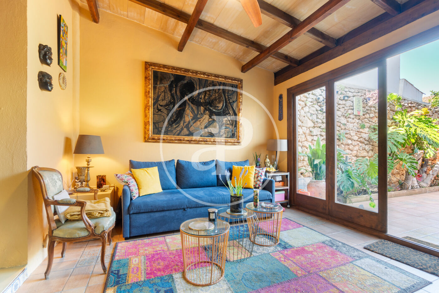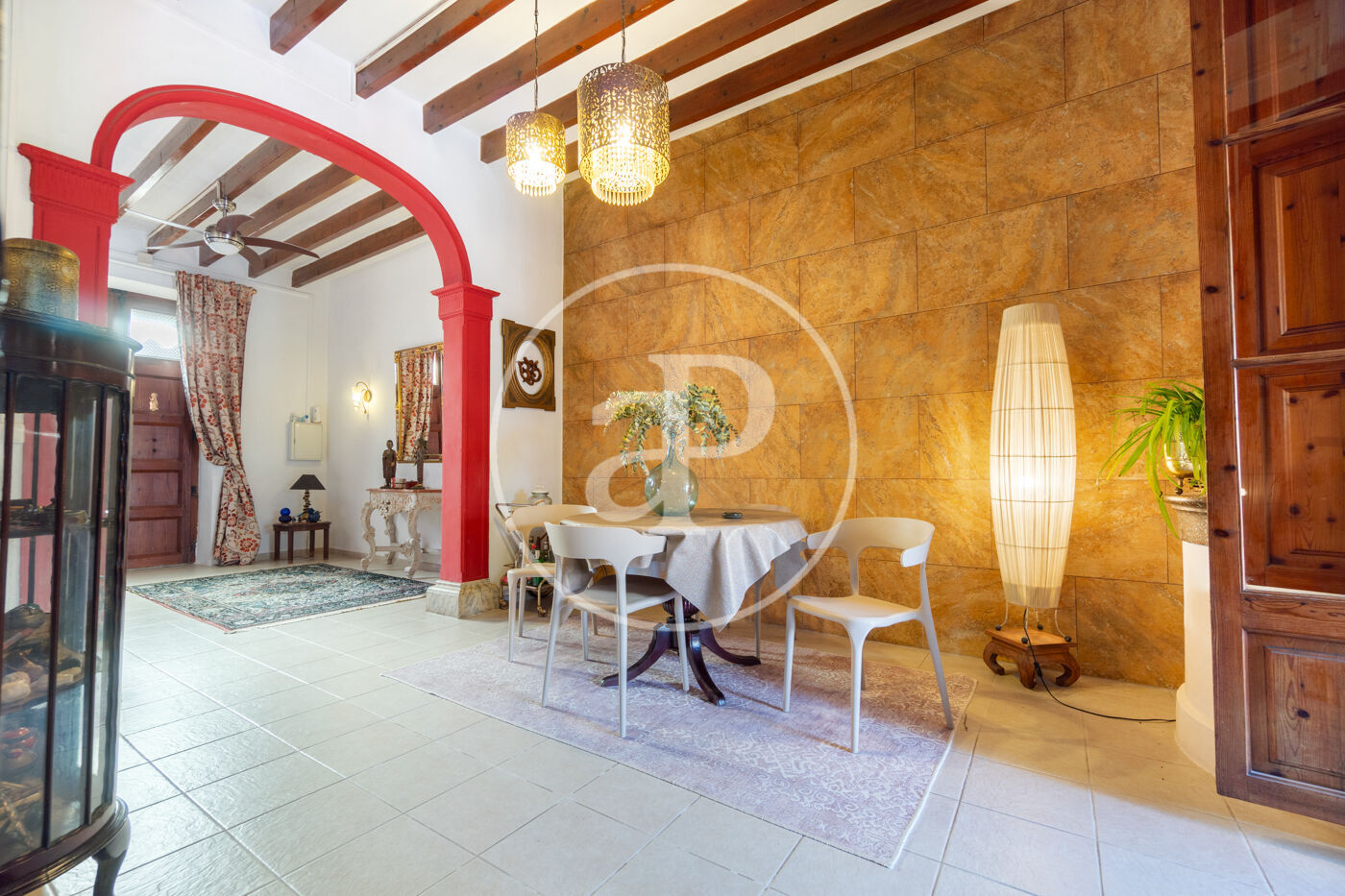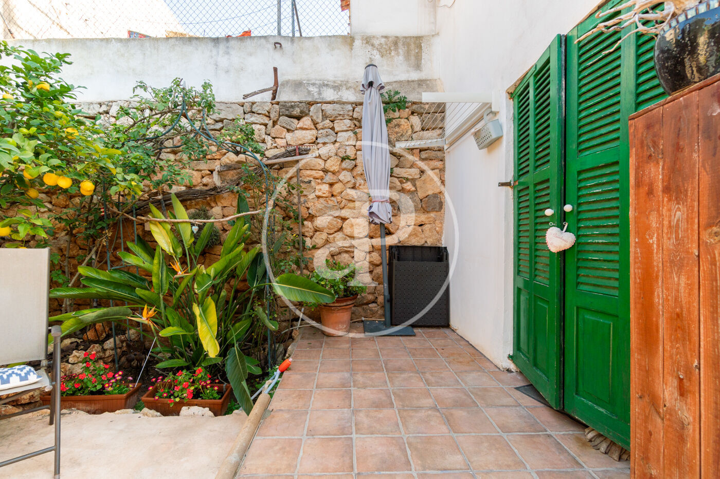 En la planta baja, te recibirá un acogedor salón con vigas de madera vistas y detalles arquitectónicos originales que se fusionan armoniosamente con la reforma dando un ttoque señorial a la propiedad. En esta misma planta, se encuentra una cocina moderna y un aseo. Un luminoso porche que da acceso directo al tradicional patio mallorquín, un espacio lleno de encanto con un horno de leña, un limonero y un olivo que aportan ese carácter único y mediterráneo.