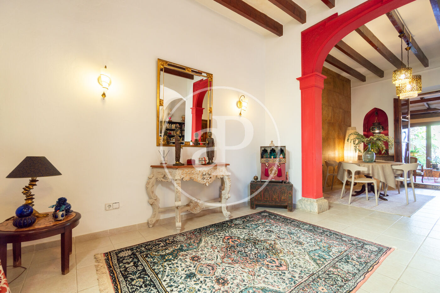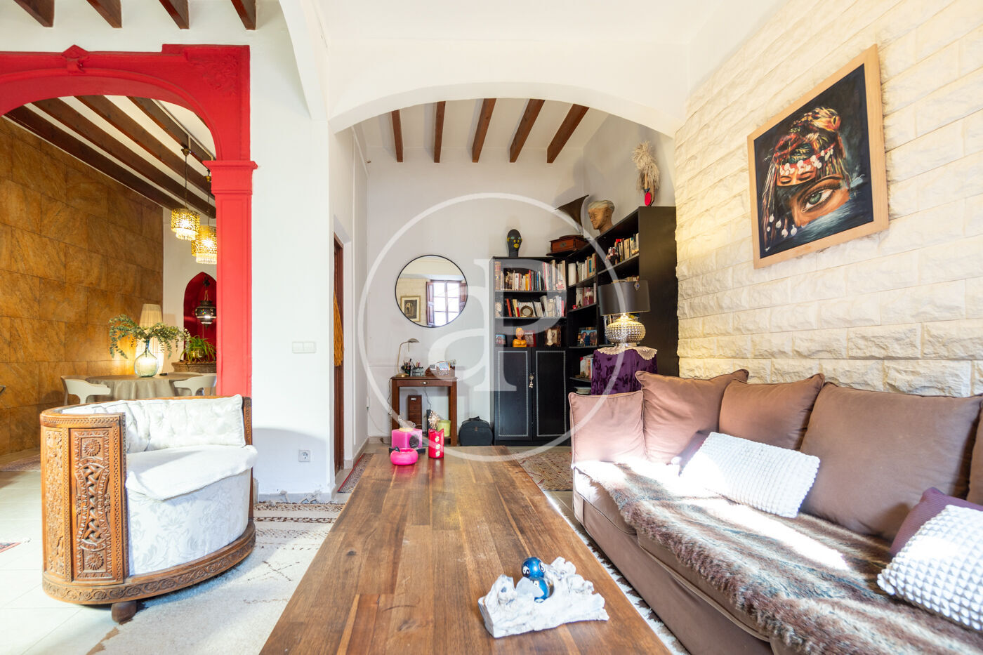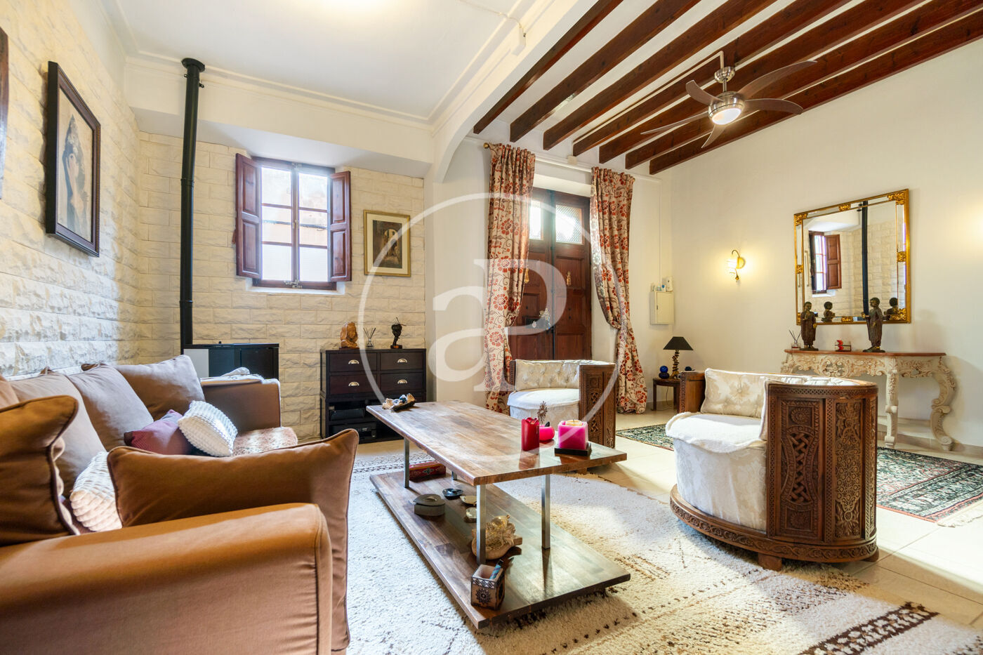 En la planta baja, te recibirá un acogedor salón con vigas de madera vistas y detalles arquitectónicos originales que se fusionan armoniosamente con la reforma dando un ttoque señorial a la propiedad. En esta misma planta, se encuentra una cocina moderna y un aseo. Un luminoso porche que da acceso directo al tradicional patio mallorquín, un espacio lleno de encanto con un horno de leña, un limonero y un olivo que aportan ese carácter único y mediterráneo.