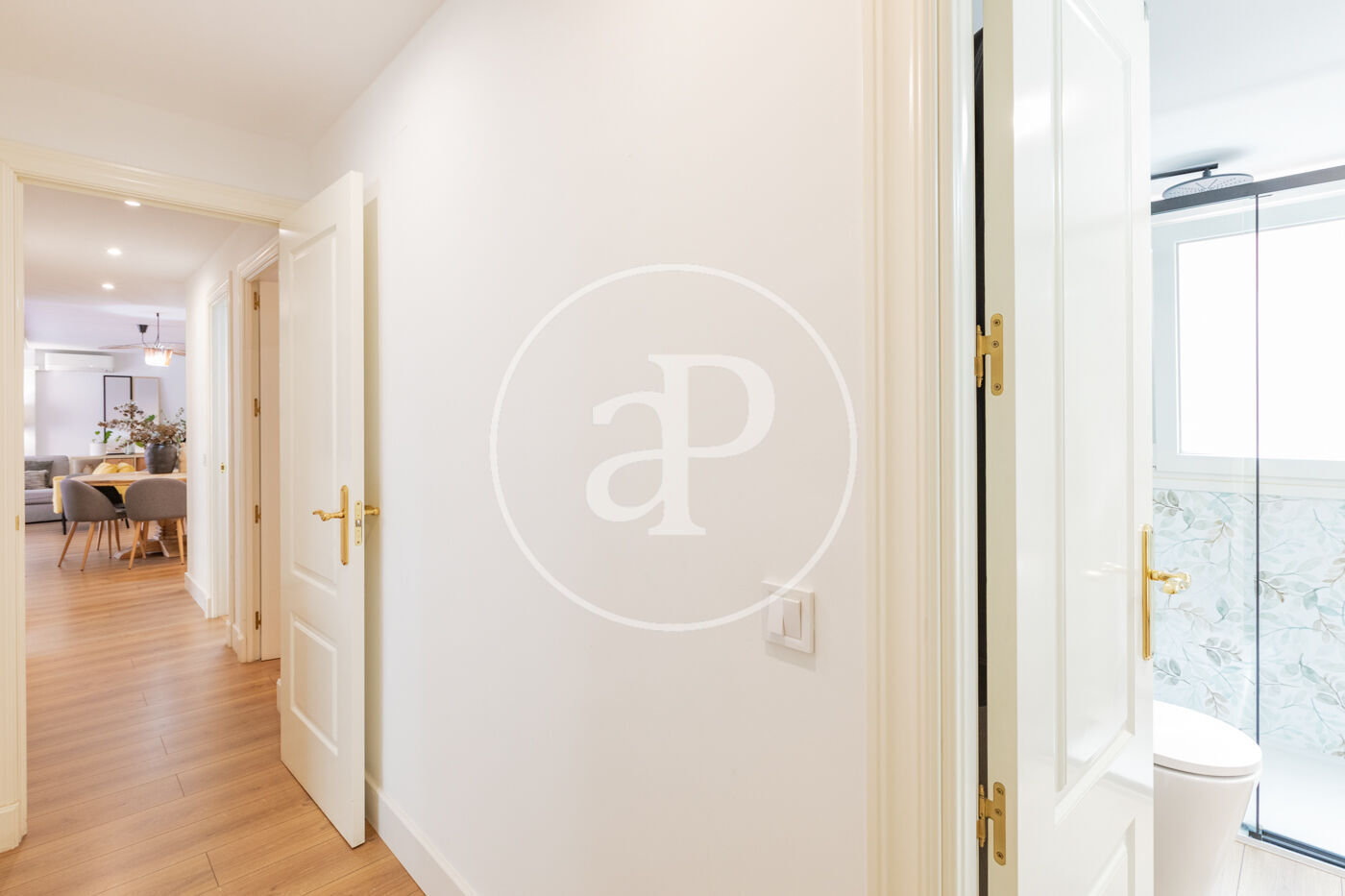 La reforma ha incluido la renovación completa de suelos, baños y cocina con una estética actual y elegante, la actualización total de fontanería y electricidad, la sustitución de carpinterías exteriores para mejorar el aislamiento térmico y acústico y la instalación de una puerta de entrada blindada. Incluye dos plazas de garaje de fácil acceso.