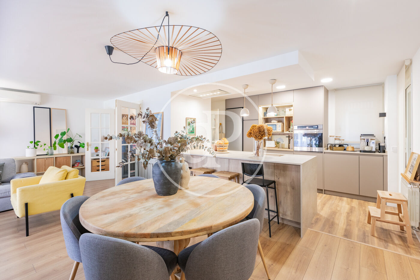 La propiedad destaca por su diseño contemporáneo, su cuidada reforma integral y una distribución pensada para ofrecer confort y funcionalidad en cada estancia. El amplio y luminoso salón-comedor, bañado por abundante luz natural, se abre a una agradable terraza con vistas a la urbanización, ideal para disfrutar del exterior durante todo el año. La cocina de diseño, equipada con electrodomésticos de alta gama y elegante península con encimera de inducción invisible, dispone además de terraza tendedero independiente.