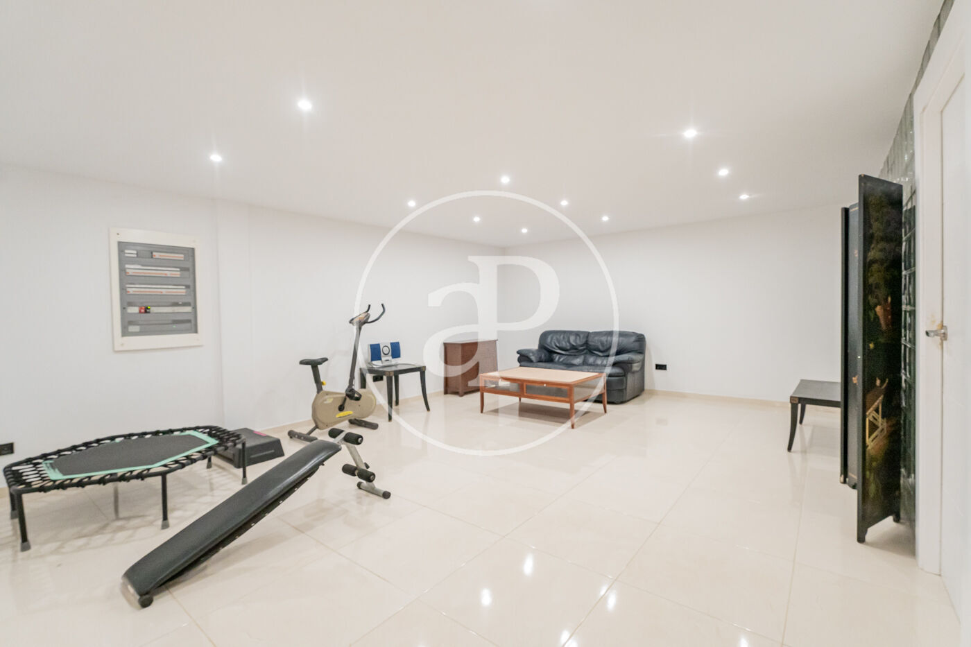 La planta semisótano, con excelente luz natural y ventilación, alberga un espacioso salón adicional, un dormitorio, un baño completo, zona de lavandería y el cuarto de instalaciones donde se ubica el sistema de aerotermia.