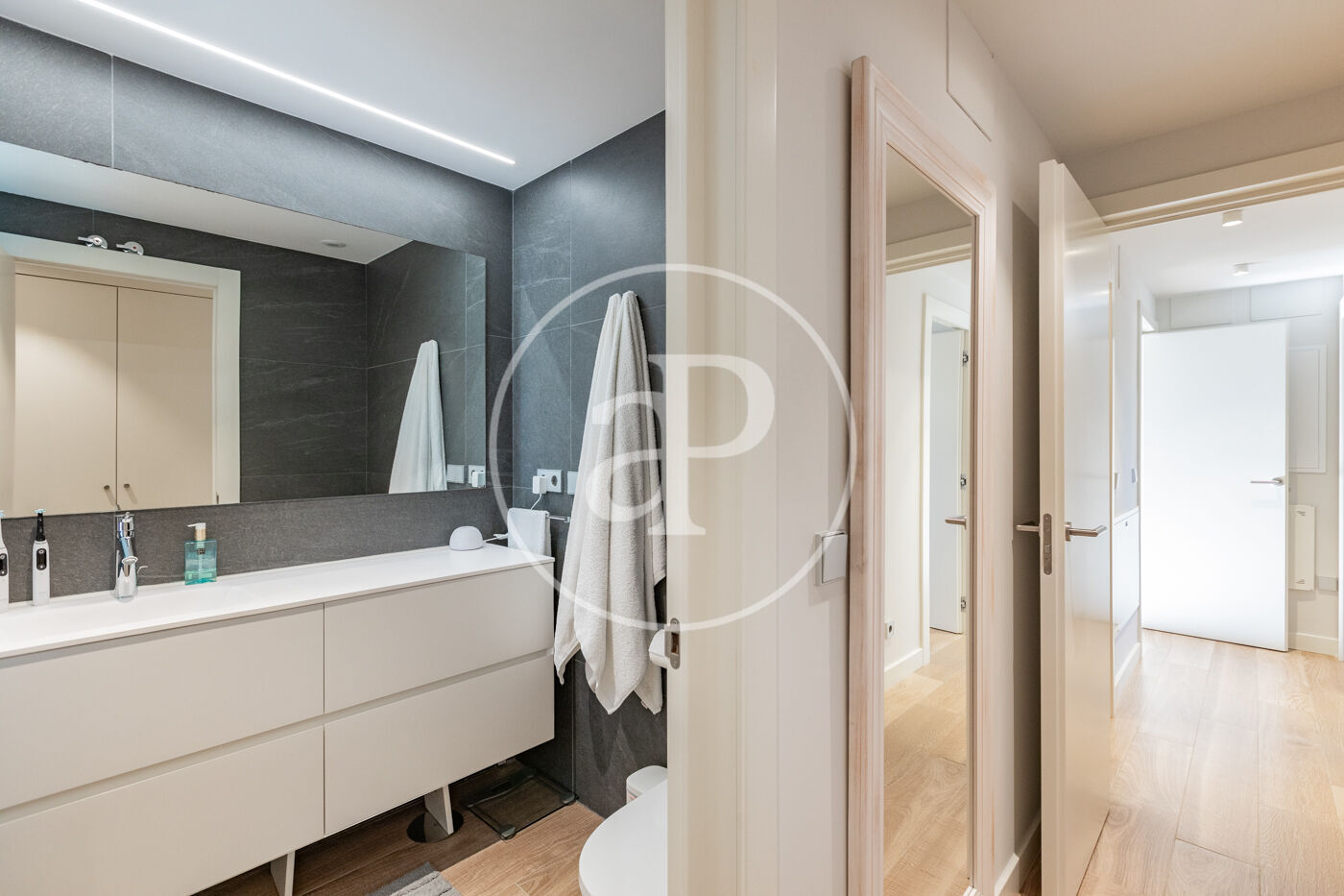 En la emblemática Rambla Cataluña encontramos este piso totalmente reformado con las mejores calidades y con una superficie de 227m2 distribuidos en 4 habitaciones, 3 baños y 1 aseo, siendo una de las habitaciones una máster suite con balcones de seis metros a patio de manzana tranquilo y soleado y dos suites con gran ventanal y balcón. Las otras dos habitaciones dobles son interiores. Las habitaciones cuentas con armarios empotrados La zona de día y noche están totalmente diferenciadas por un amplio recibidor con armarios empotrados y un pasillo típico de los pisos de L´Eixample. En la zona de día encontramos una amplia zona común que consta de cocina y comedor unidas y de mucha amplitud separadas por una gran isla de mármol y una segunda zona de salón con dos balcones a Rambla Cataluña y chimenea. La cocina está totalmente equipada con electrodomésticos Miele de alta gama integrados y mucho espacio para almacenaje. Todos los baños son de Porcelanosa, atemporales y con mucho estilo. En la reforma se han recuperado los suelos originales de noya y los techos artesanados. La propiedad cuenta con aire acondicionado frio/calor, placas solares (en el terrado) y lavadero. El edificio está en perfecto estado siendo uno de los más bonitos de Rambla Cataluña y cuenta con servicio de conserjería y ascensor. Si está buscando una vivienda lista para entrar a vivir con estilo y funcionalidad en una de las zonas más emblemáticas de la Ciudad Condal, no deje de visitar esta propiedad.