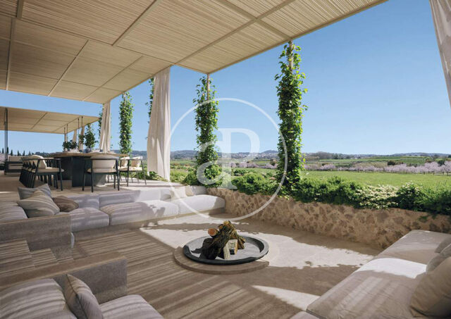 En un enclave exquisito con paisaje que emociona, nos trasladamos a la localidad de Algaida. La parcela de 222.557m², se econtrará rodeado de ricas tierras de cultivo, viñedos, cimbreantes campos de trigo y extensos olivares y almendros, todo ello en torno a este exclusivo diseño.