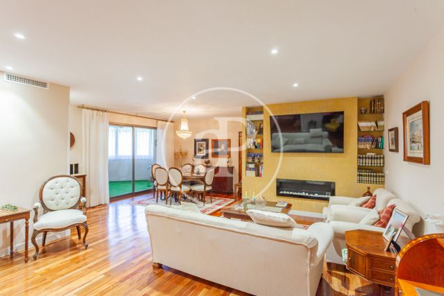 Magnífico Piso Amueblado en el Barrio de Galvany, Barcelona Ubicado en una zona tranquila y demandada de Barcelona, este espléndido piso de 145 m² ofrece un estilo de vida cómodo y elegante. Al ingresar, te recibe un amplio recibidor con acceso al salón-comedor con chimenea, que se abre a una pequeña terraza con vistas al parque, creando un ambiente perfecto para relajarse. La cocina, de diseño moderno y abierta al salón, cuenta con una puerta corredera de cristal y está equipada con electrodomésticos de alta gama, ideal para los amantes de la gastronomía. Desde la cocina y el recibidor, se accede a un aseo de cortesía y a una habitación que puede servir como despacho o habitación de servicio. En la zona de noche, un gran distribuidor actúa como sala de lectura o televisión, desde donde se accede a tres habitaciones dobles y exteriores. La habitación principal cuenta con baño en suite, mientras que las otras dos habitaciones, equipadas con camas individuales comparten un baño completo. La vivienda ha sido completamente reformada, con suelos de parqué que aportan calidez. Además, todas las persianas son eléctricas y el piso dispone de aire acondicionado por split en el salón y en el distribuidor de la zona de noche. La calefacción central está incluida en el precio, garantizando confort durante todo el año. La finca ofrece servicio de consejería por las mañanas y cuenta con una plaza de parking y espacio para motos, brindando comodidad y seguridad. ¡No pierdas la oportunidad de vivir en este maravilloso piso en Galvany!  * En cumplimiento de la Ley 12/2023 y la Llei 18/2007 informamos que:Índice de R.P.LL: 14,69 € / m2 Precio de referencia estatal 2.138,00 €