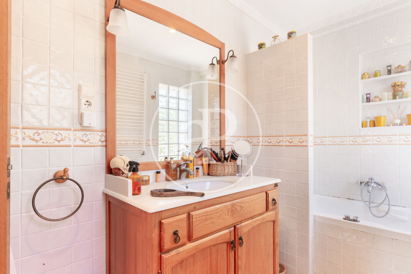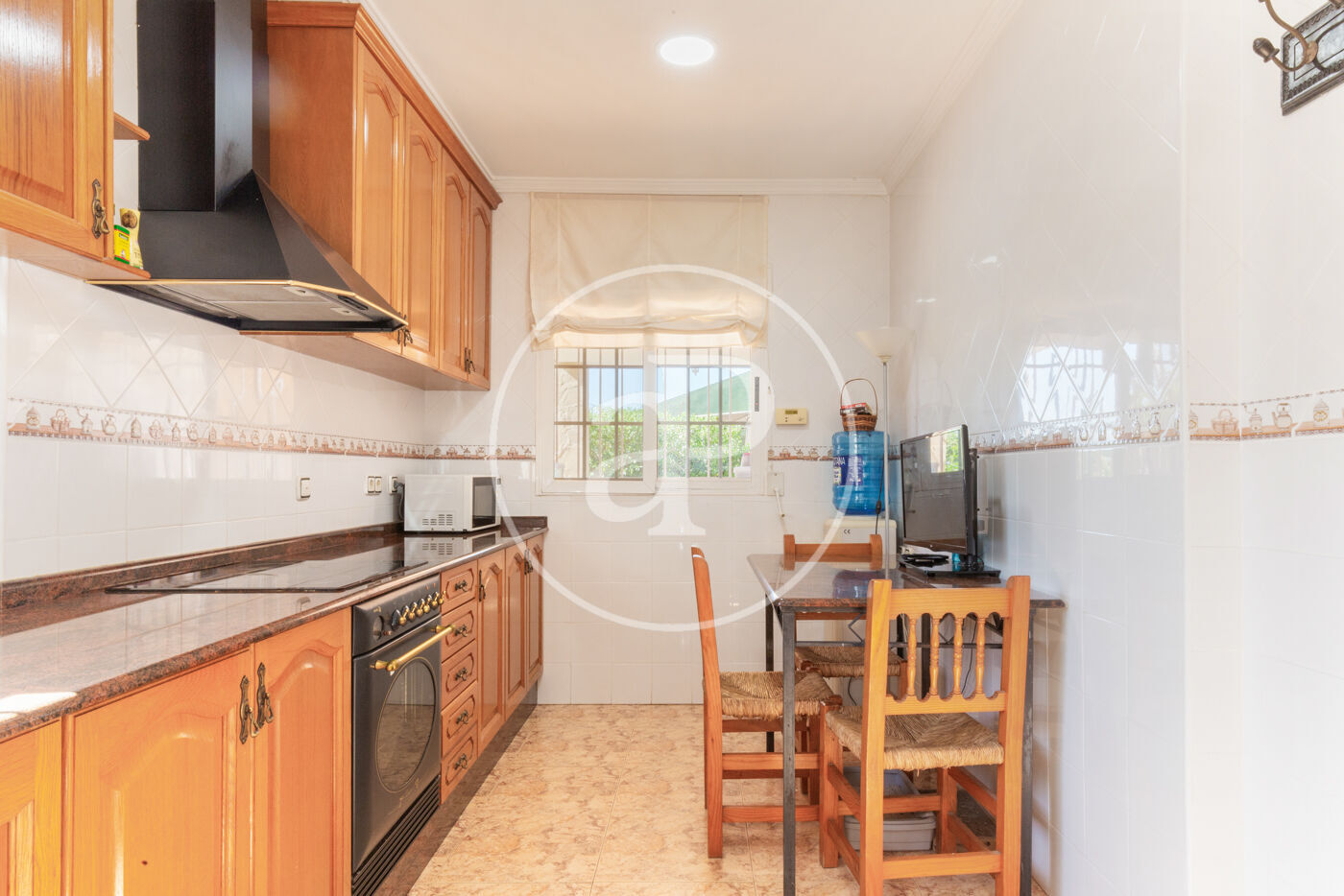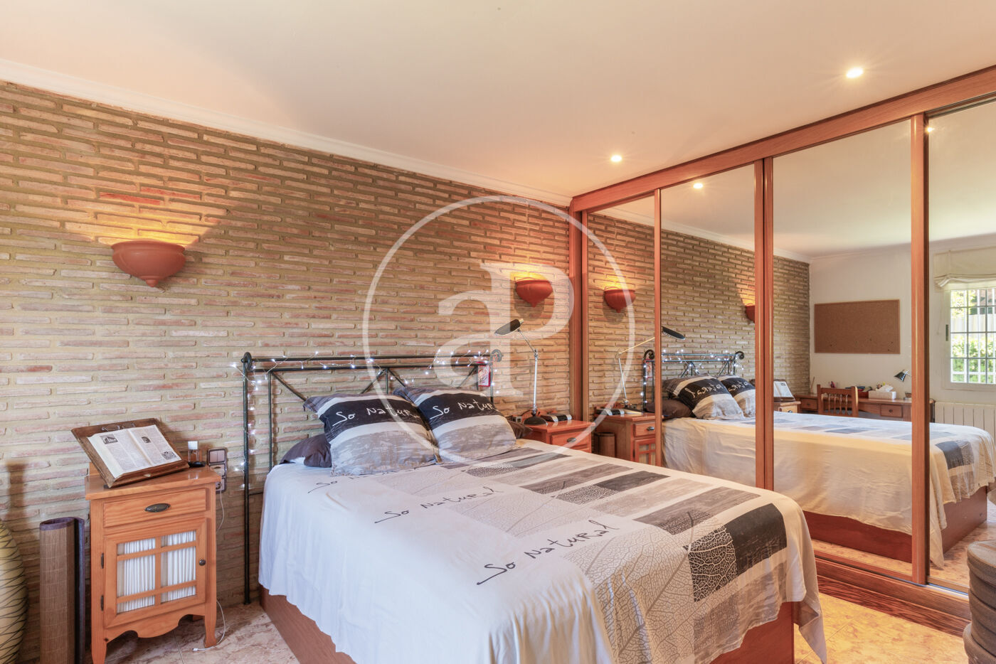 La propiedad, de 802 m2, es completamente moderna y luminosa, está formada por tres plantas, cada una de ellas con vistas panorámicas, comunicadas mediante una escalera interior, así mismo con ascensor y una planta adicional compuesta por el sótano.   La propiedad está cubierta en todo su perímetro por detectores de presencia y 12 cámaras de seguridad en circuito cerrado.  La vivienda consta de 5 habitaciones y 6 baños, espectacular piscina desbordante en cascada rodeada de un jardín con espléndidas vistas panorámicas, trastero, sauna y gimnasio. Además, también dispone de una zona privada de chill out y una pérgola multifunción. La cocina abierta, totalmente equipada y fabricada por Santos, está orientada a las panorámicas vistas que envuelven la vivienda.  La vivienda dispone además de suelo radiante, aerotermia y 24 placas solares, aire acondicionado, chimenea, sistema de riego automático. También posee 6 altavoces Bose, distribuidos por el jardín para escuchar música y celebrar fiestas en el exterior. Toda la carpintería de aluminio de puertas y ventanas es de la marca Schuco. En el sótano encontramos el parking en el que caben entre 5 y 8 coches y una sala de máquinas y trastero.  En la planta principal, completamente abierta al jardín, encontramos el salón, hall, baño para invitados y cocina totalmente equipada con todos los detalles y con vistas panorámicas. En la primera planta encontramos 4 habitaciones en suite, dos de ellas con acceso a una de terraza privada. La habitación principal, con un largo vestidor, consta de unos 70 m2. La última planta contiene dos habitaciones para cualquier uso, como oficina, comedor, biblioteca o gimnasio. Una preciosa terraza complementa este espacio.  La vivienda está perfectamente comunicada, a diez minutos de la línea de Ferrocarril y de todos los comercios y colegios para los más pequeños. Fantástica propiedad en la zona de Vallvidrera muy bien accesible y comunicada.