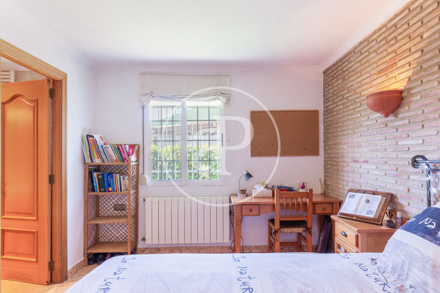 Zona residencial muy tranquila con vecinos viviendo todo el año, muy bien comunicada, con rápidos accesos y todos los servicios muy próximos, centros escolares privados/internacionales, supermercados y a 5 minutos andando de la parada de metro.