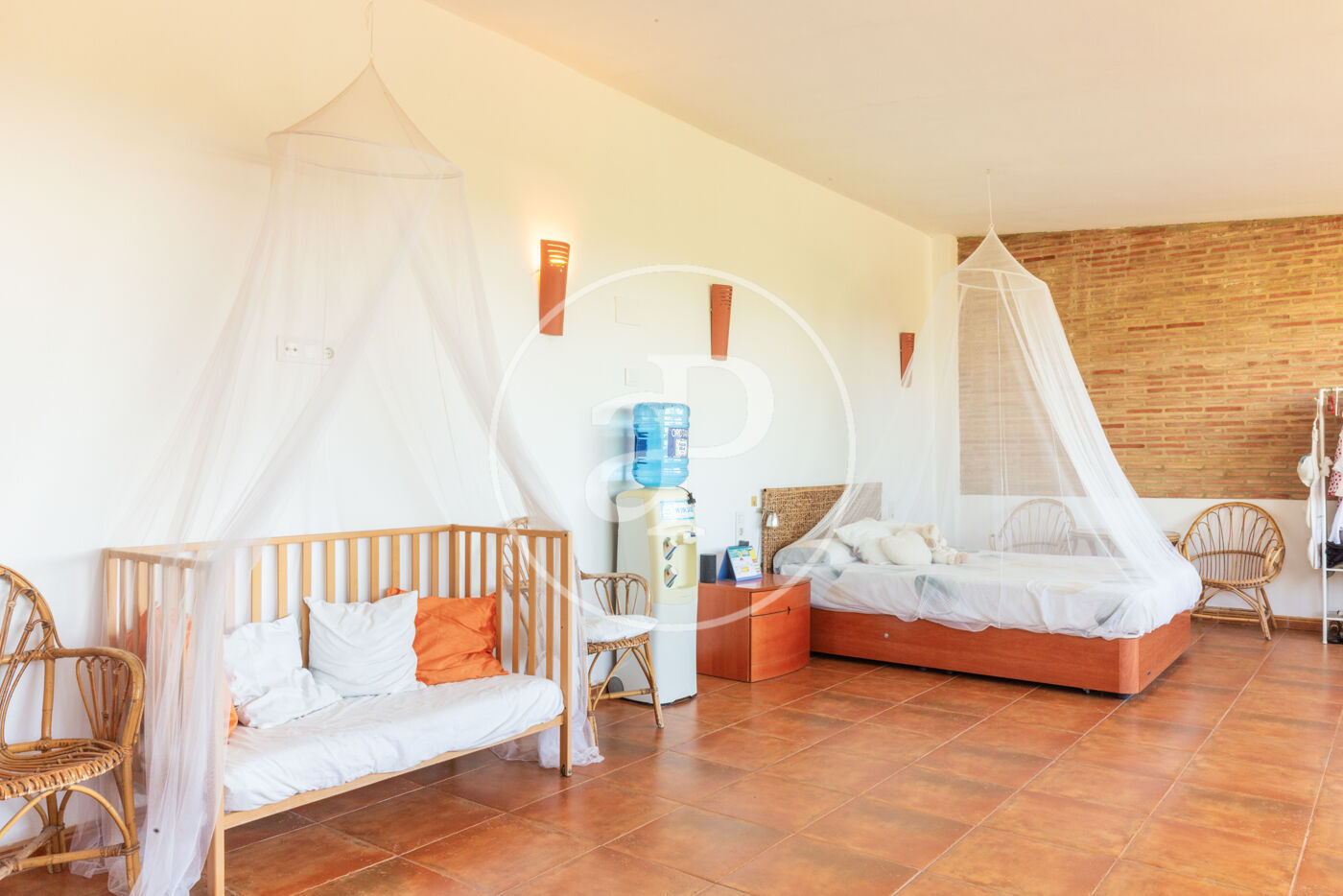 Garaje para dos vehículos y gran capacidad de almacenaje, Paellero, lavandería y baño completo en exterior.