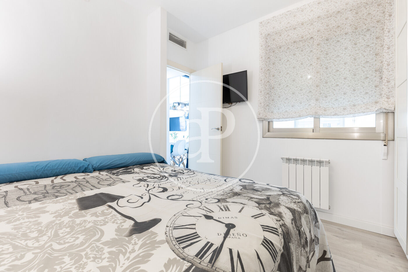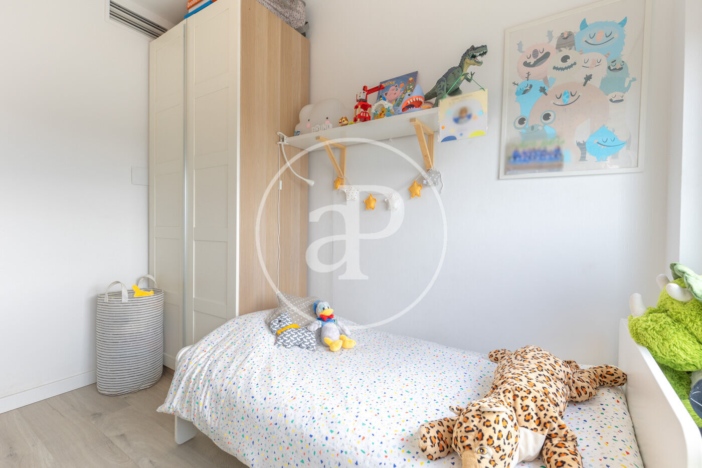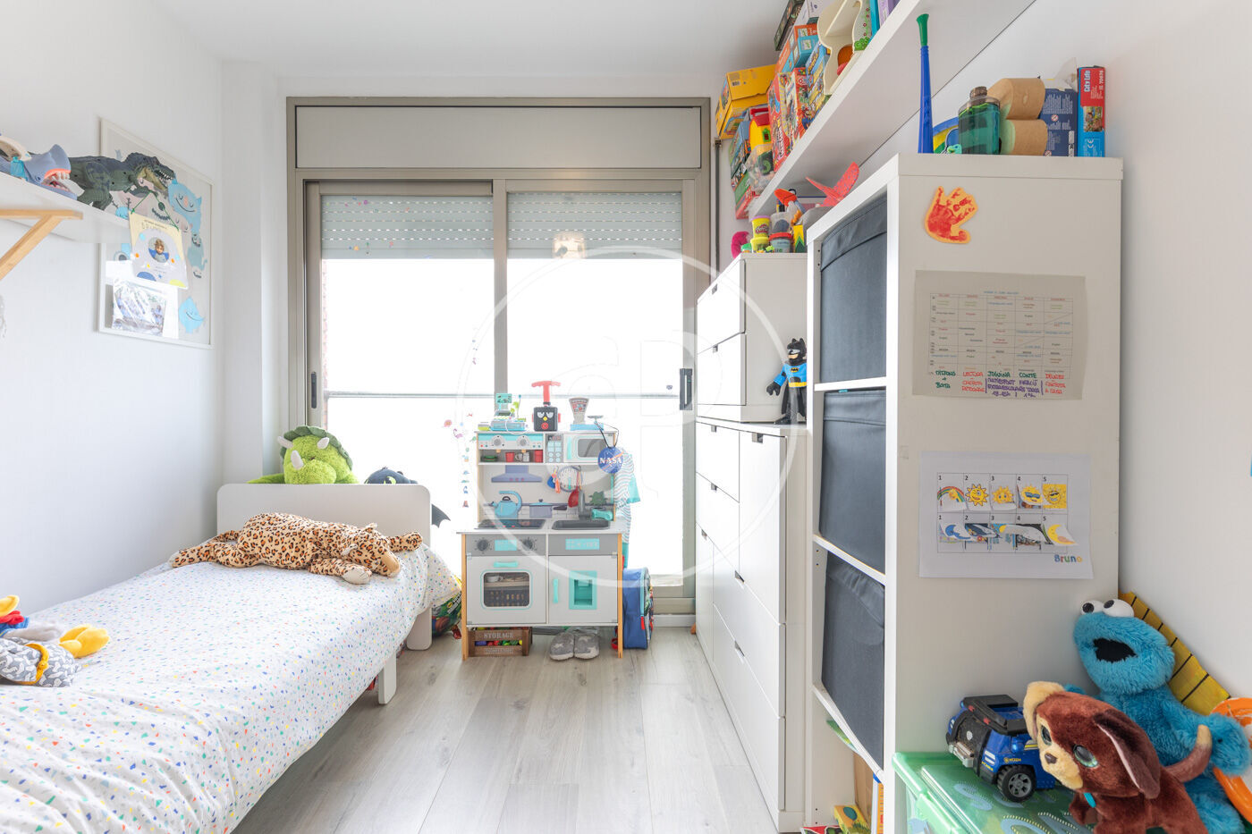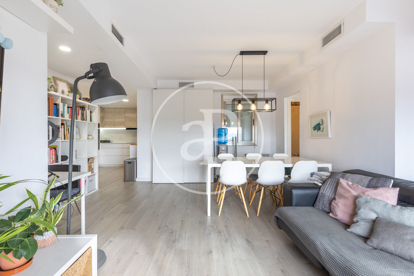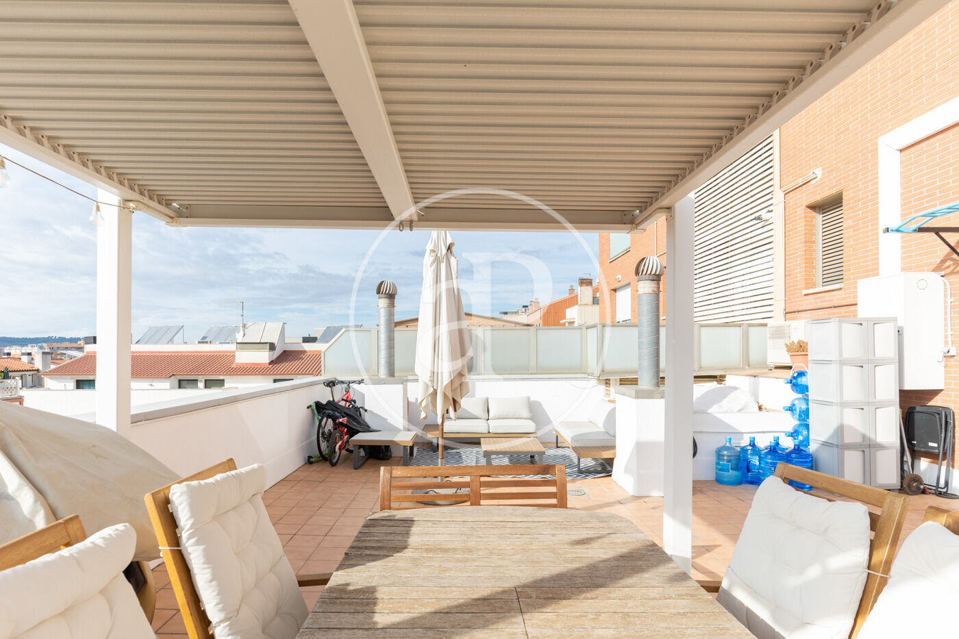 Se trata de una vivienda dividida en dos ambientes, en un lado tendríamos la zona de día que se compone de una cocina abierta con electrodomésticos Bosch y lavavajillas paneleado, dispone de un comedor muy acogedor. Desde el comedor podemos acceder a la joya de la vivienda, una terraza de 65m2 con orientación sur con vistas increíbles a Montserrat y al Tibidabo. Aprovechando el espacio de las escaleras de la terraza se ha puesto la zona de aguas (lavadero)