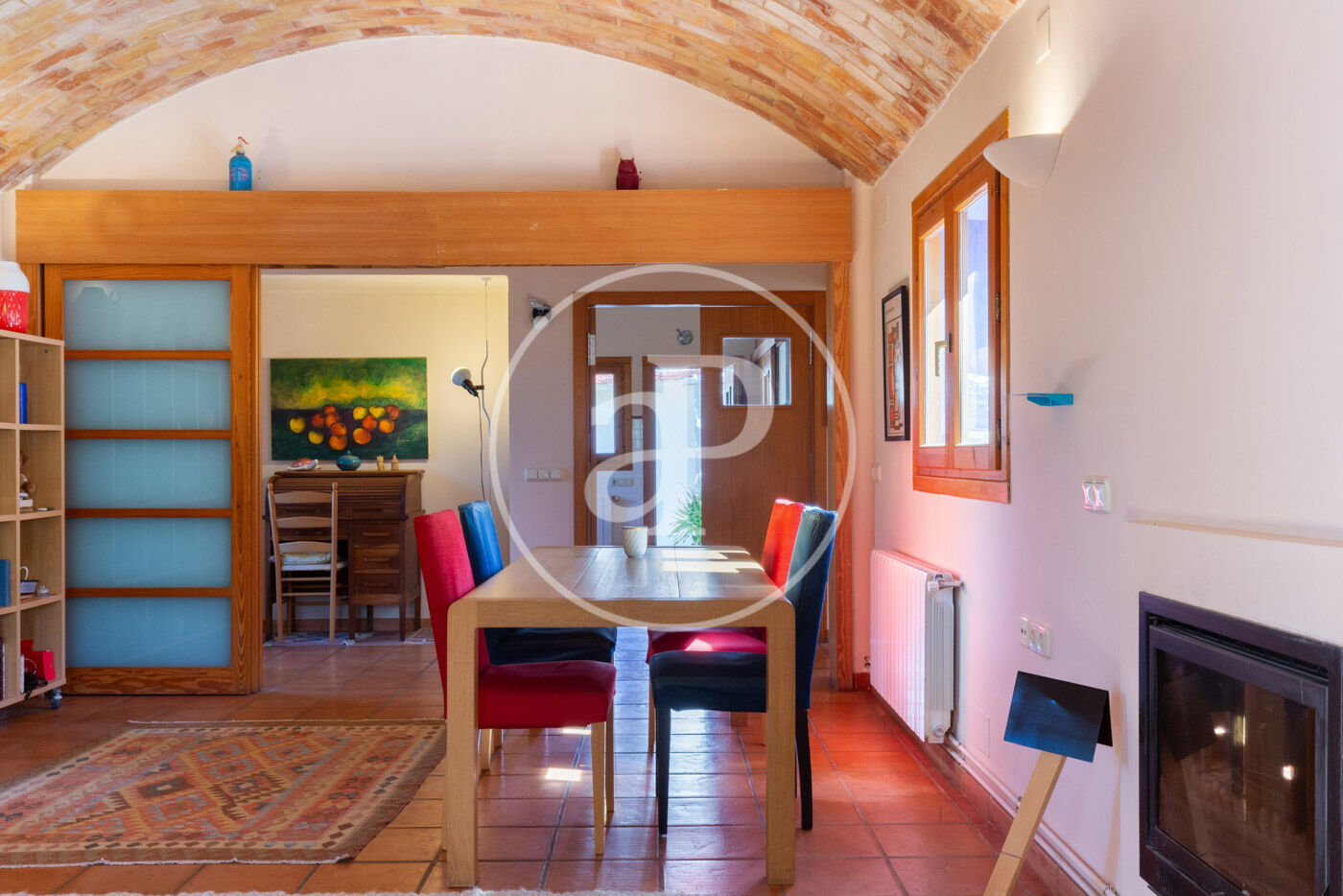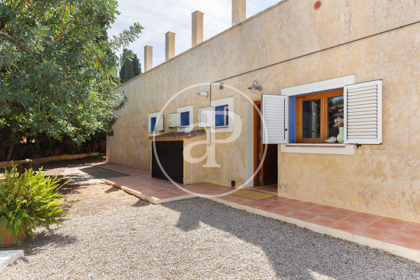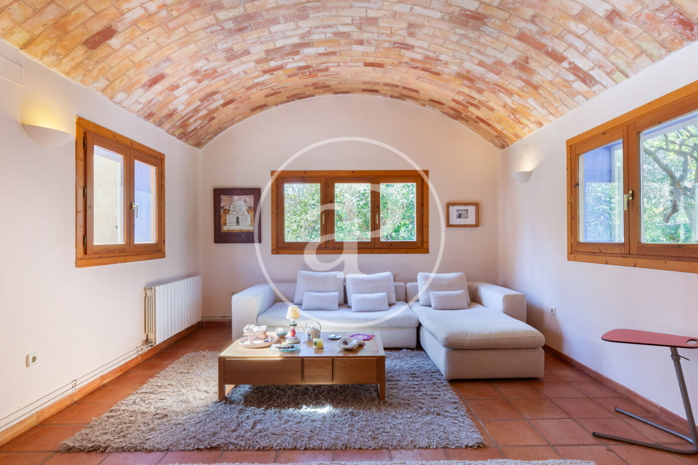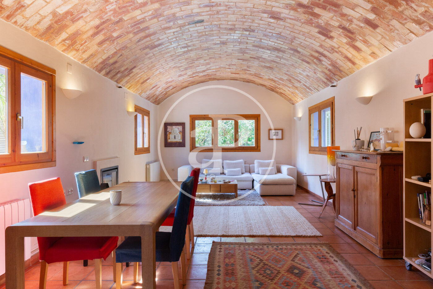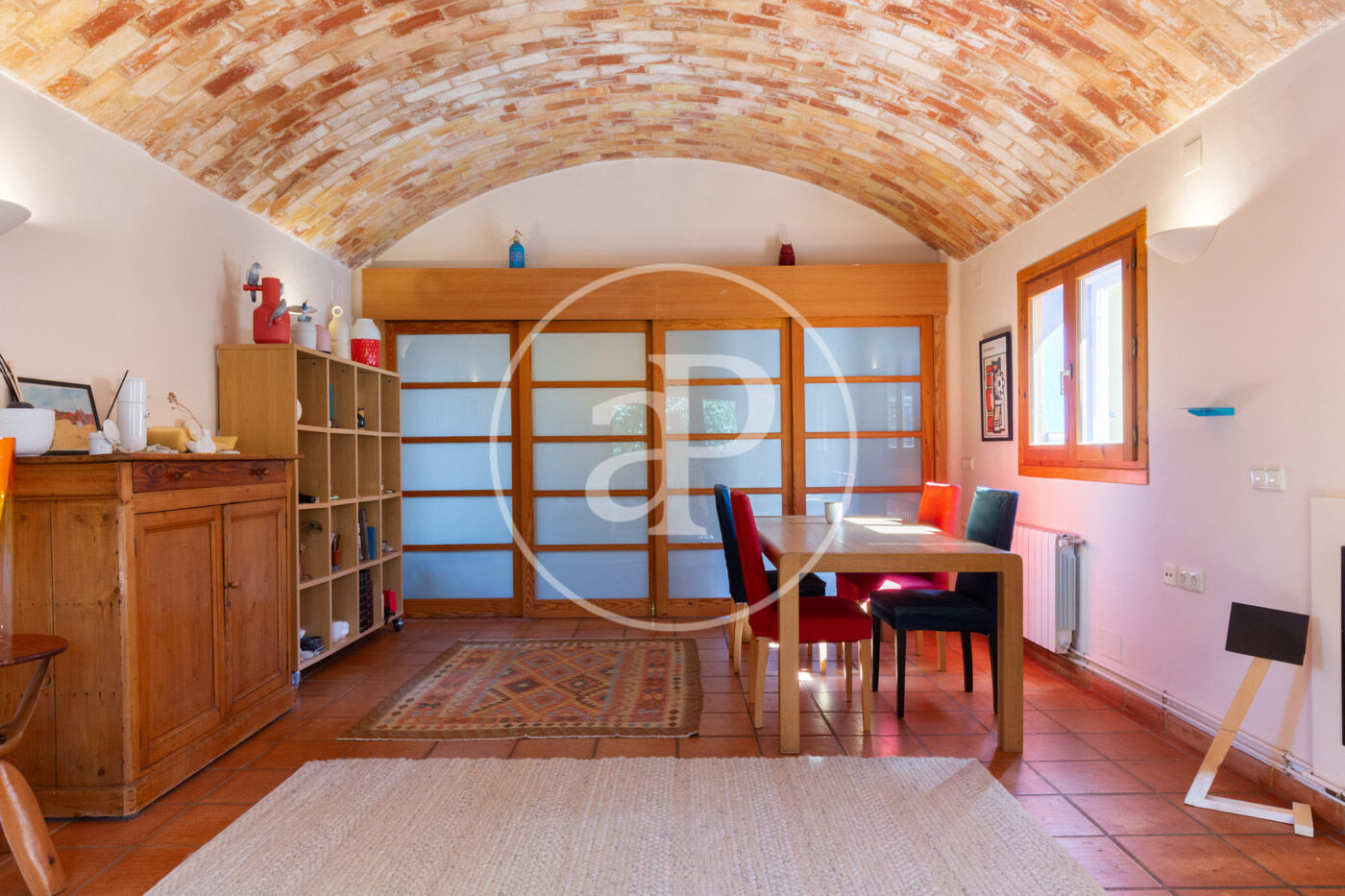 Se trata de una vivienda estilo mediterráneo, de diseño minimalista y con numerosos detalles arquitectónicos, en los que cabe resaltar sus techos abovedados de ladrillo caravista de cuatro metros de altura, vistas hacia el jardín, una chimenea de leña y unos acabados que hacen que sea única.