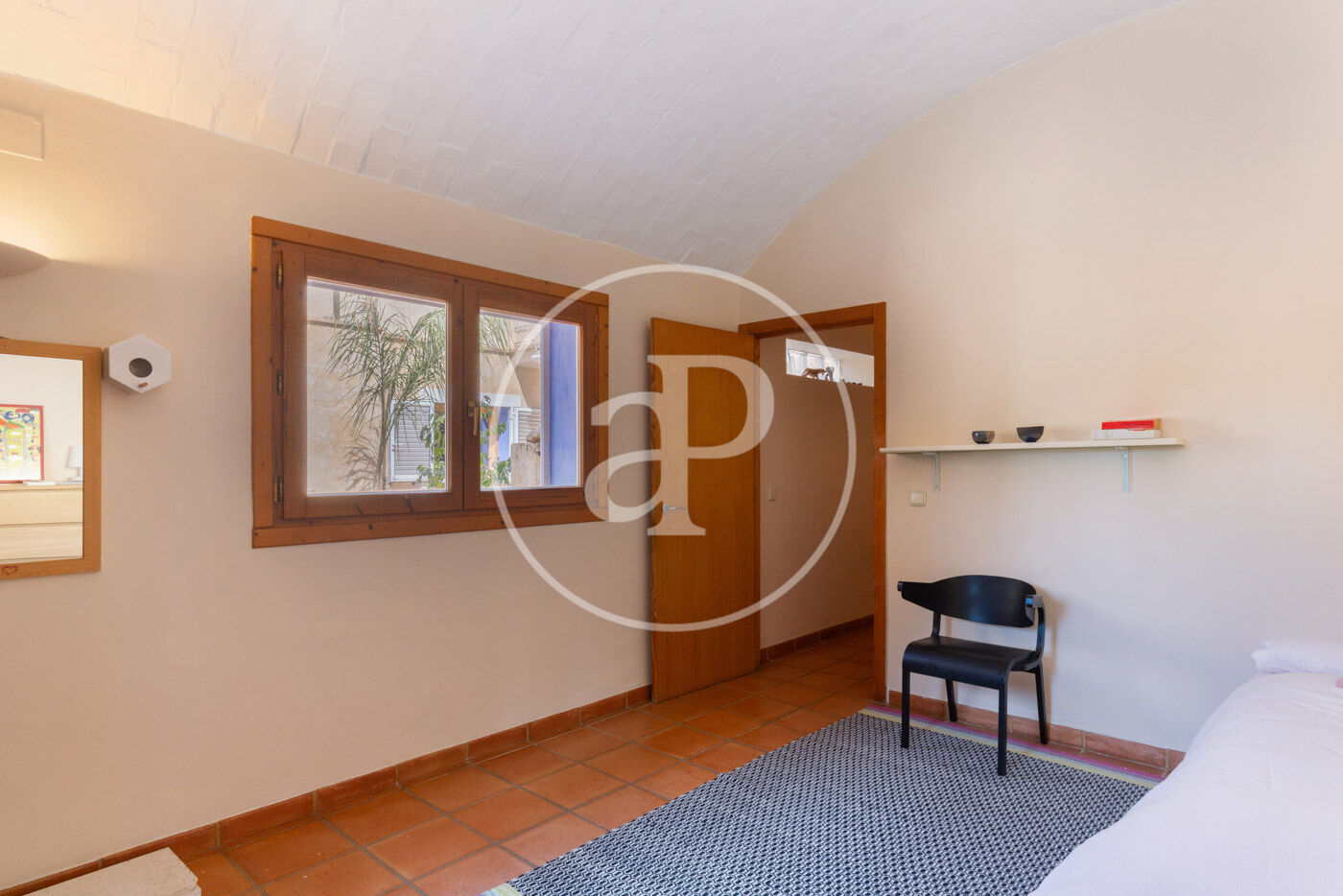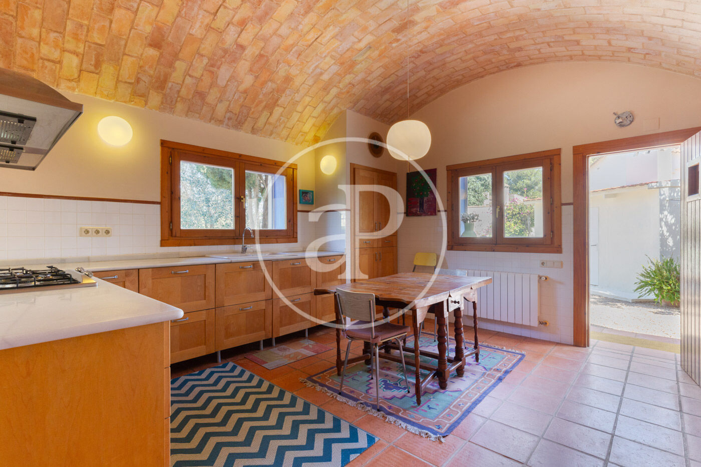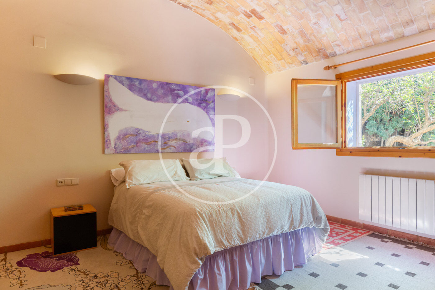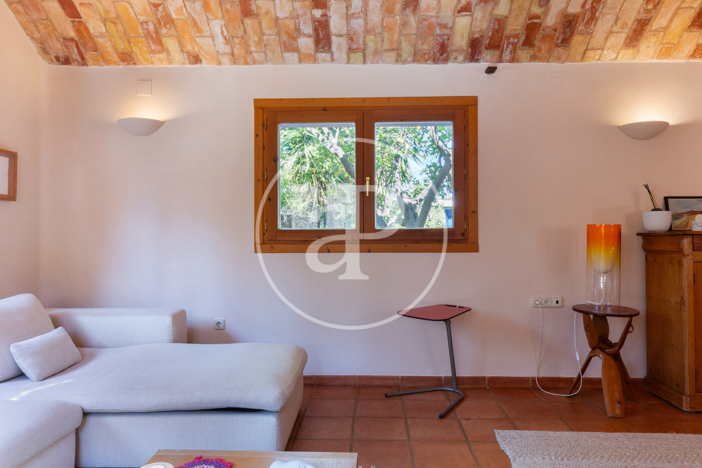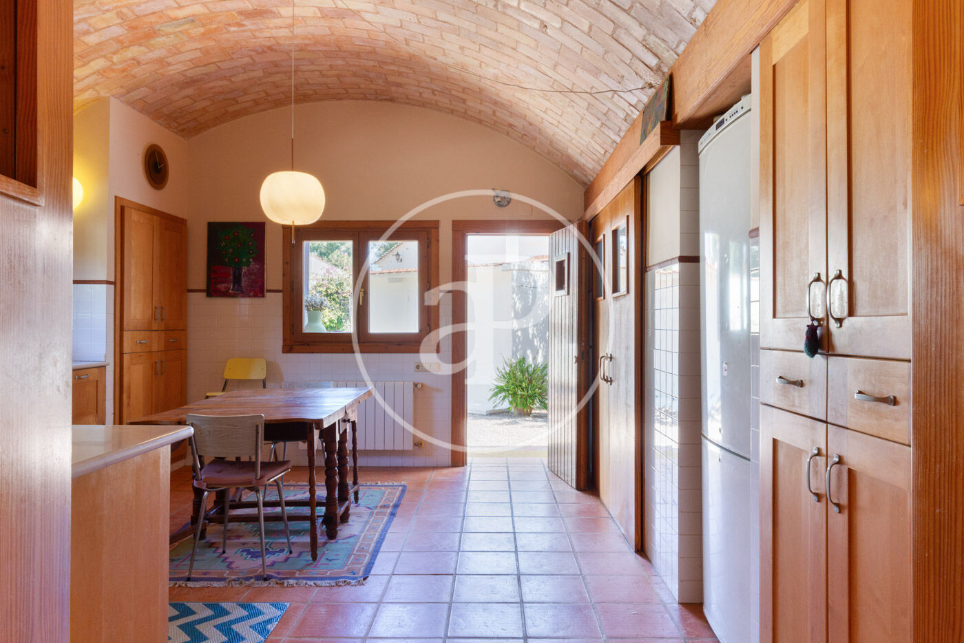Se trata de una vivienda estilo mediterráneo, de diseño minimalista y con numerosos detalles arquitectónicos, en los que cabe resaltar sus techos abovedados de ladrillo caravista de cuatro metros de altura, vistas hacia el jardín, una chimenea de leña y unos acabados que hacen que sea única.