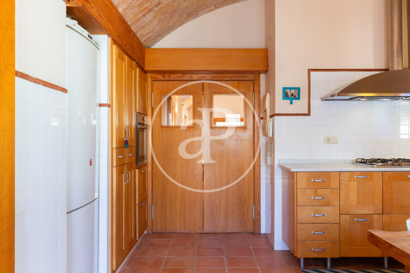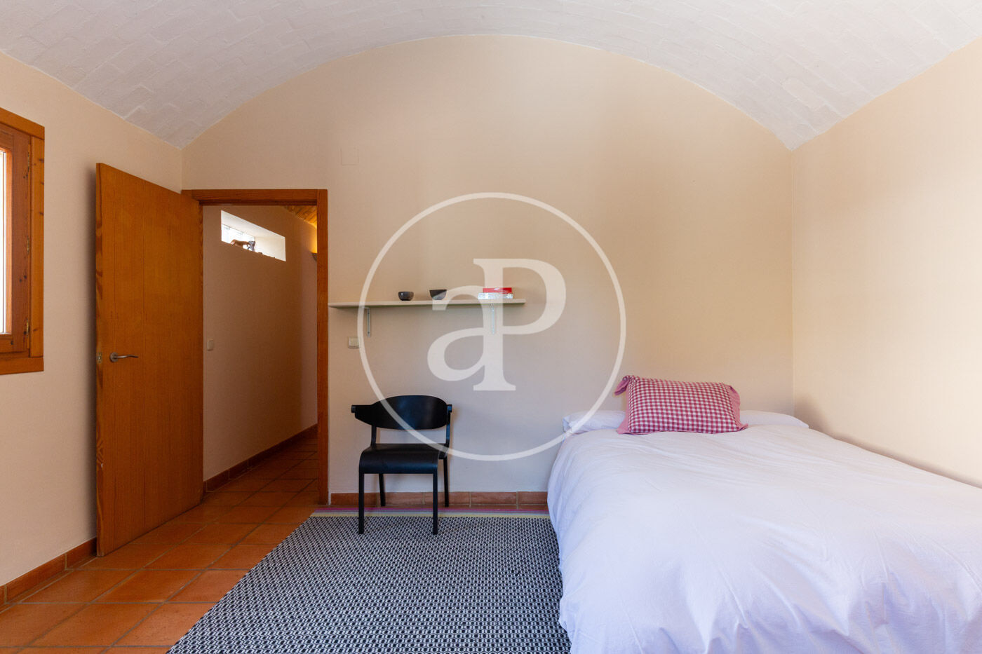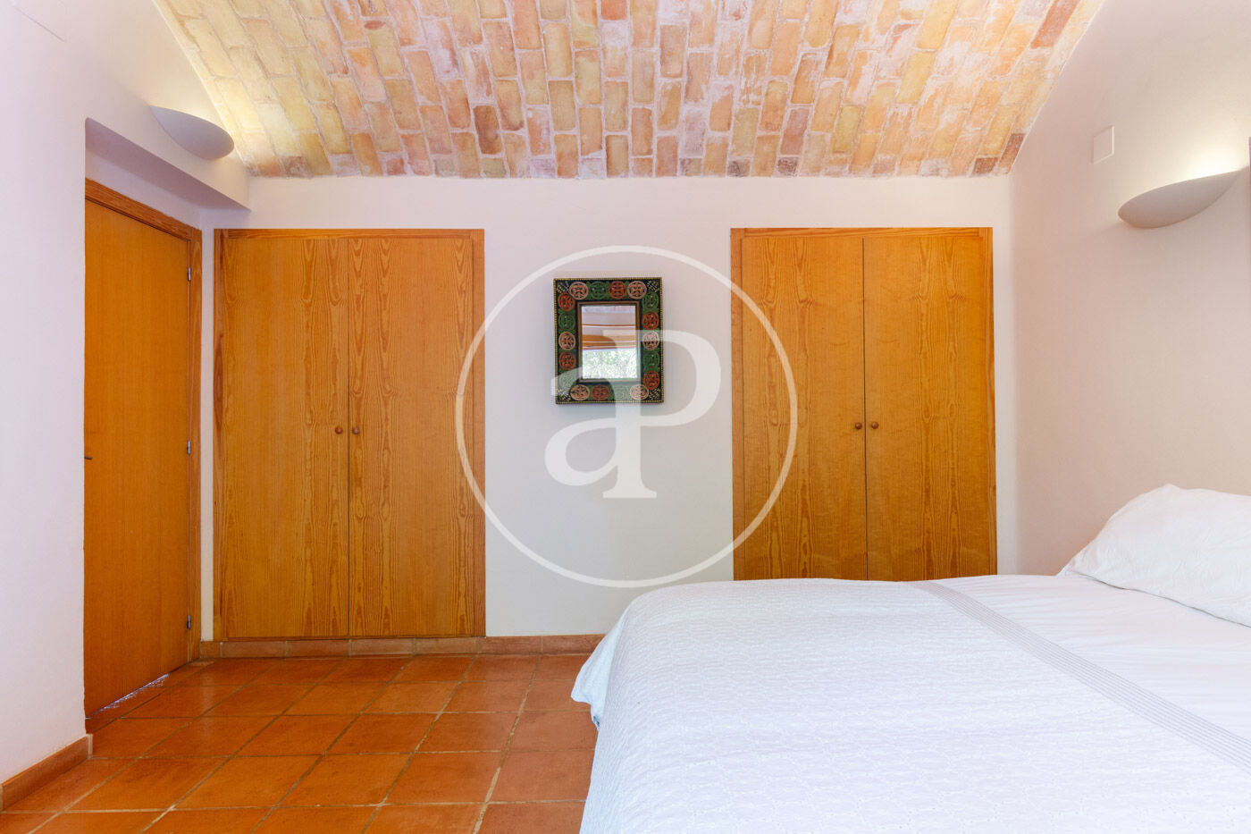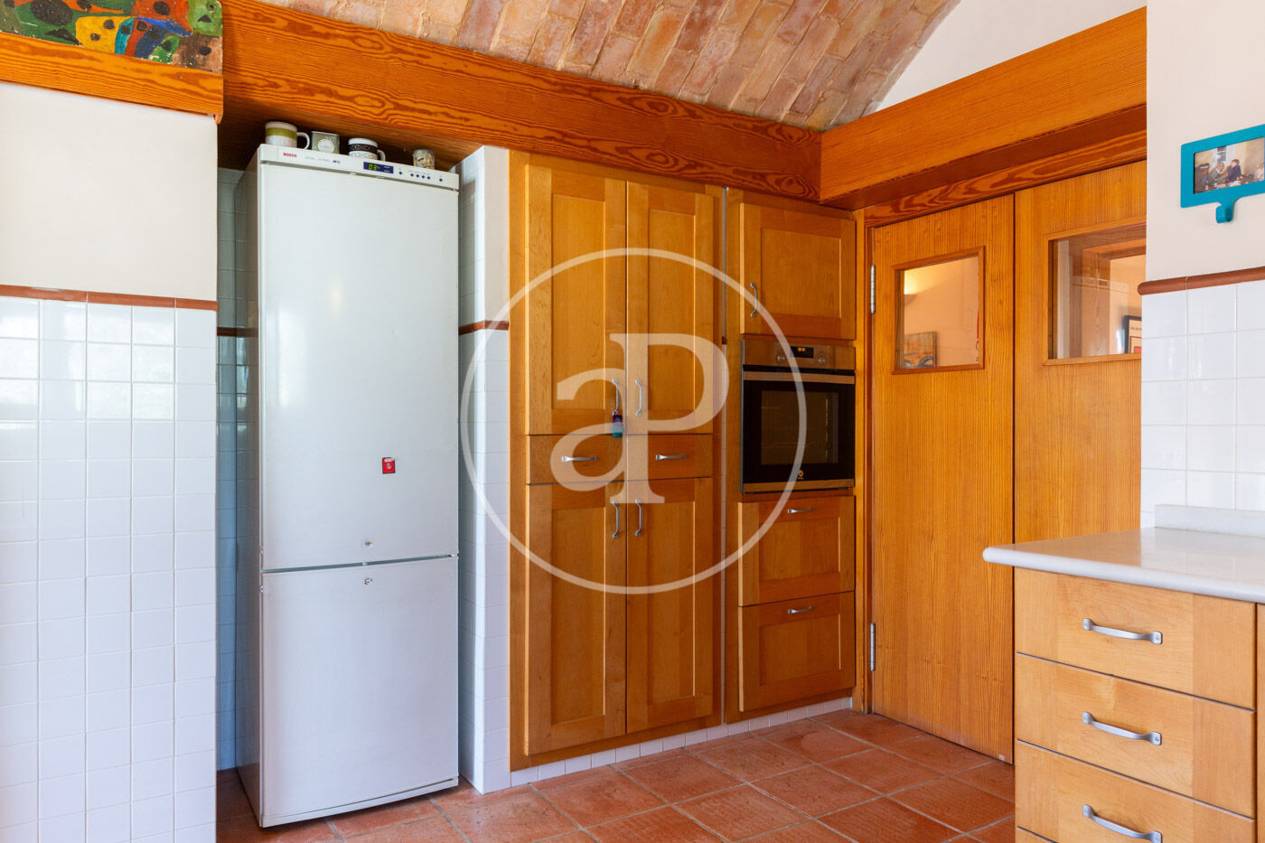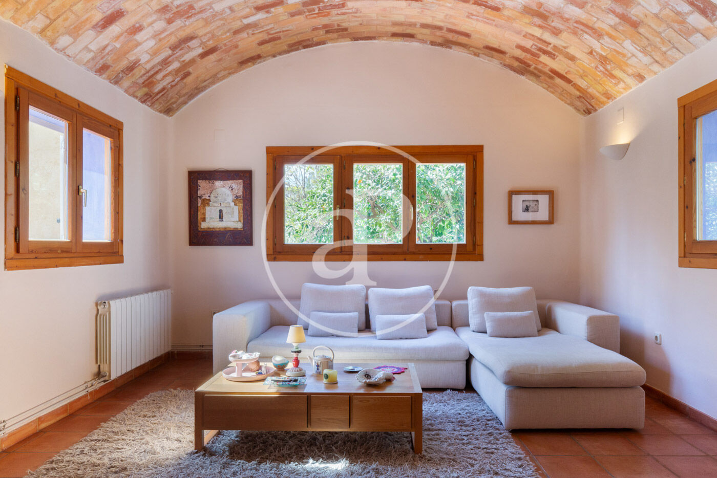 Se trata de una vivienda estilo mediterráneo, de diseño minimalista y con numerosos detalles arquitectónicos, en los que cabe resaltar sus techos abovedados de ladrillo caravista de cuatro metros de altura, vistas hacia el jardín, una chimenea de leña y unos acabados que hacen que sea única.