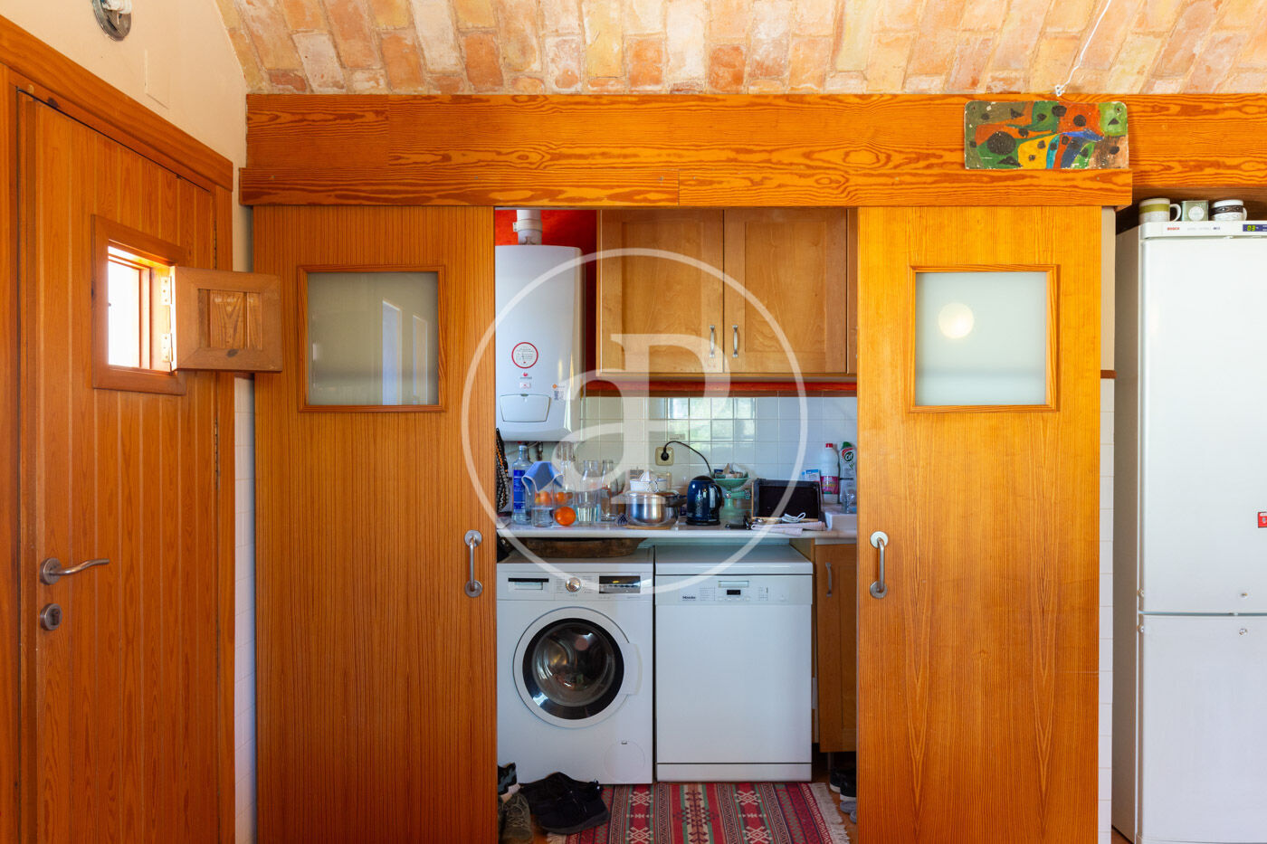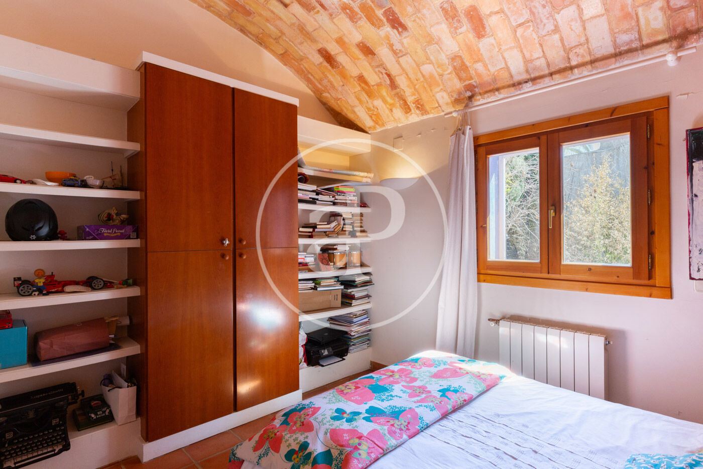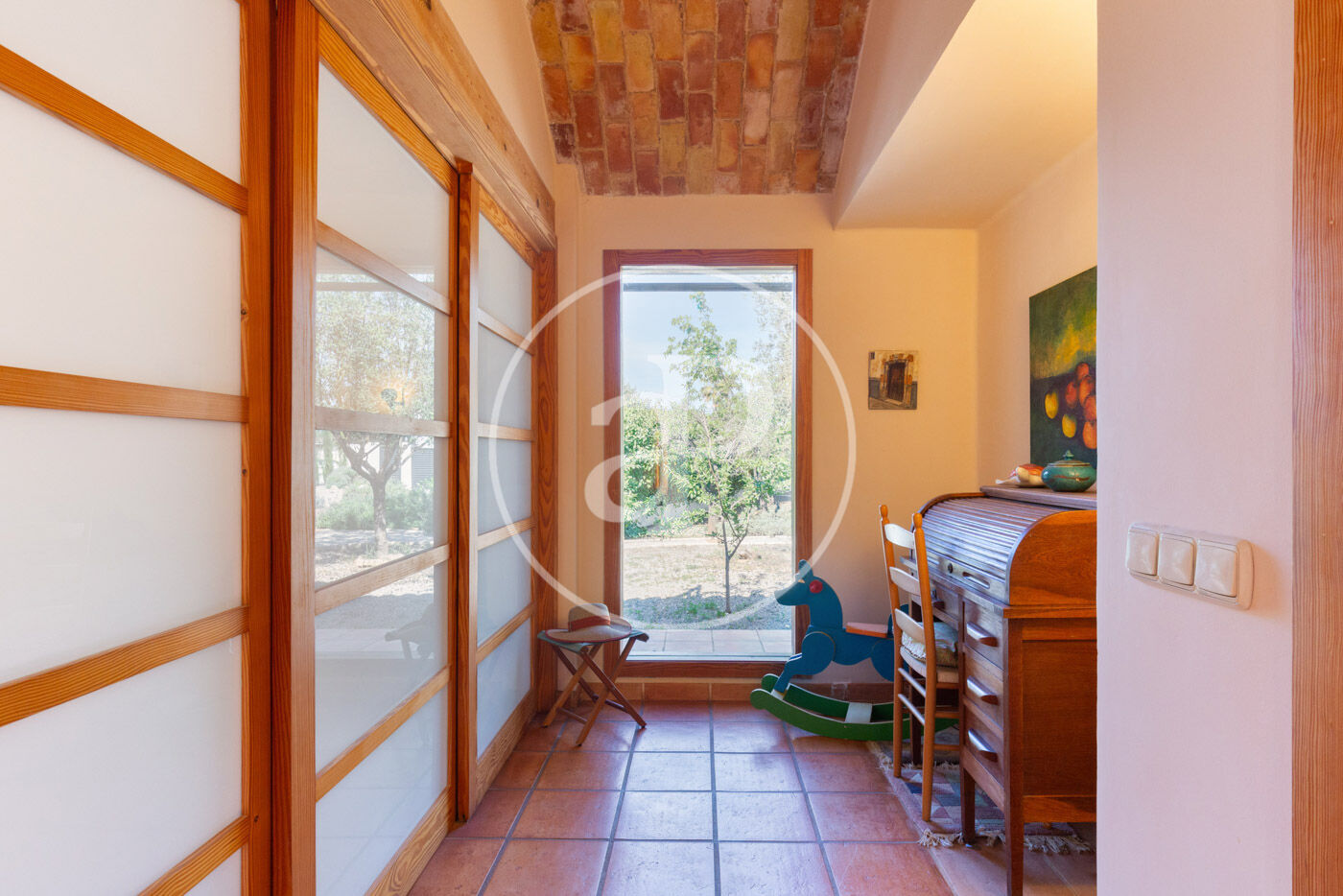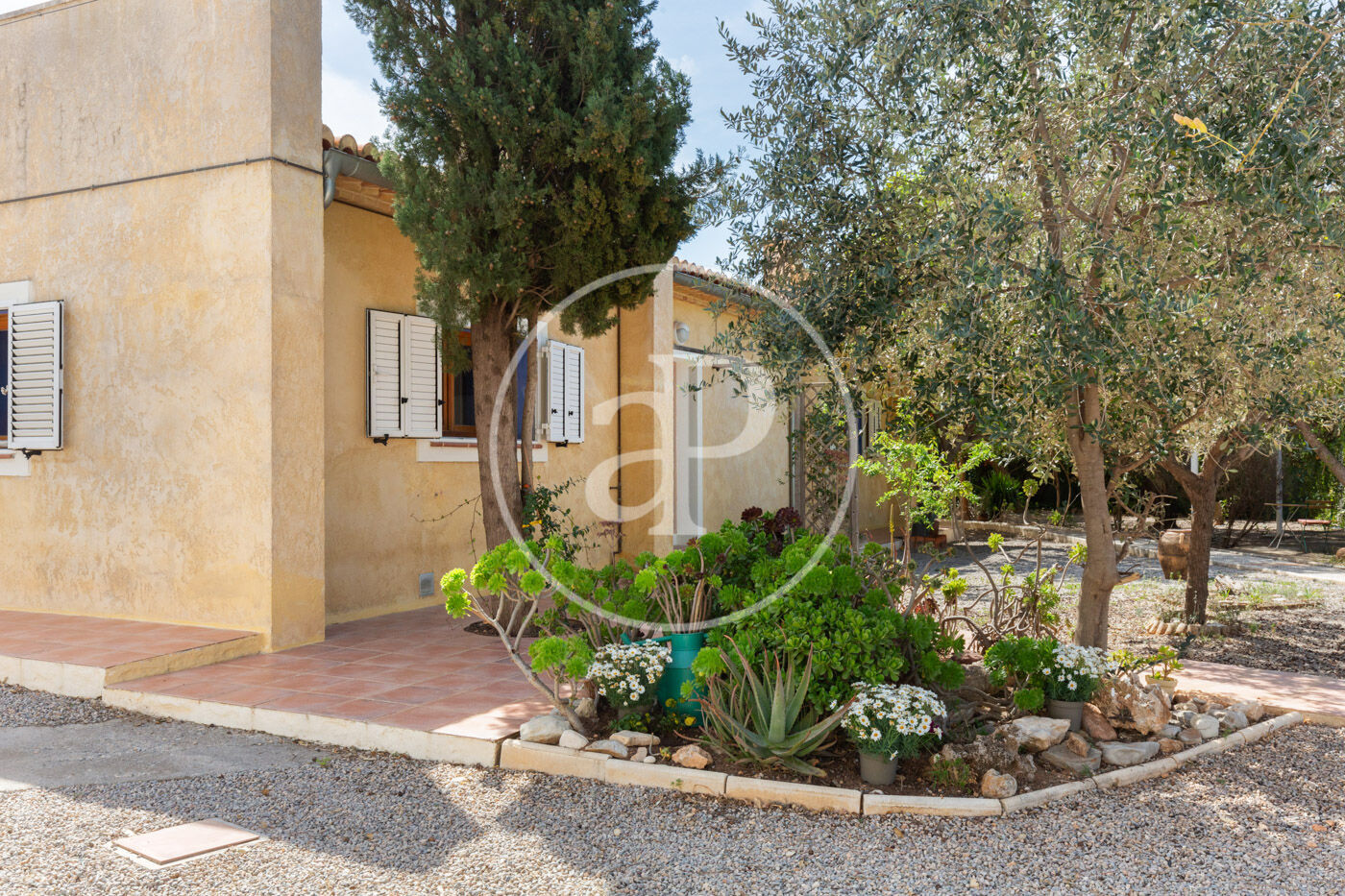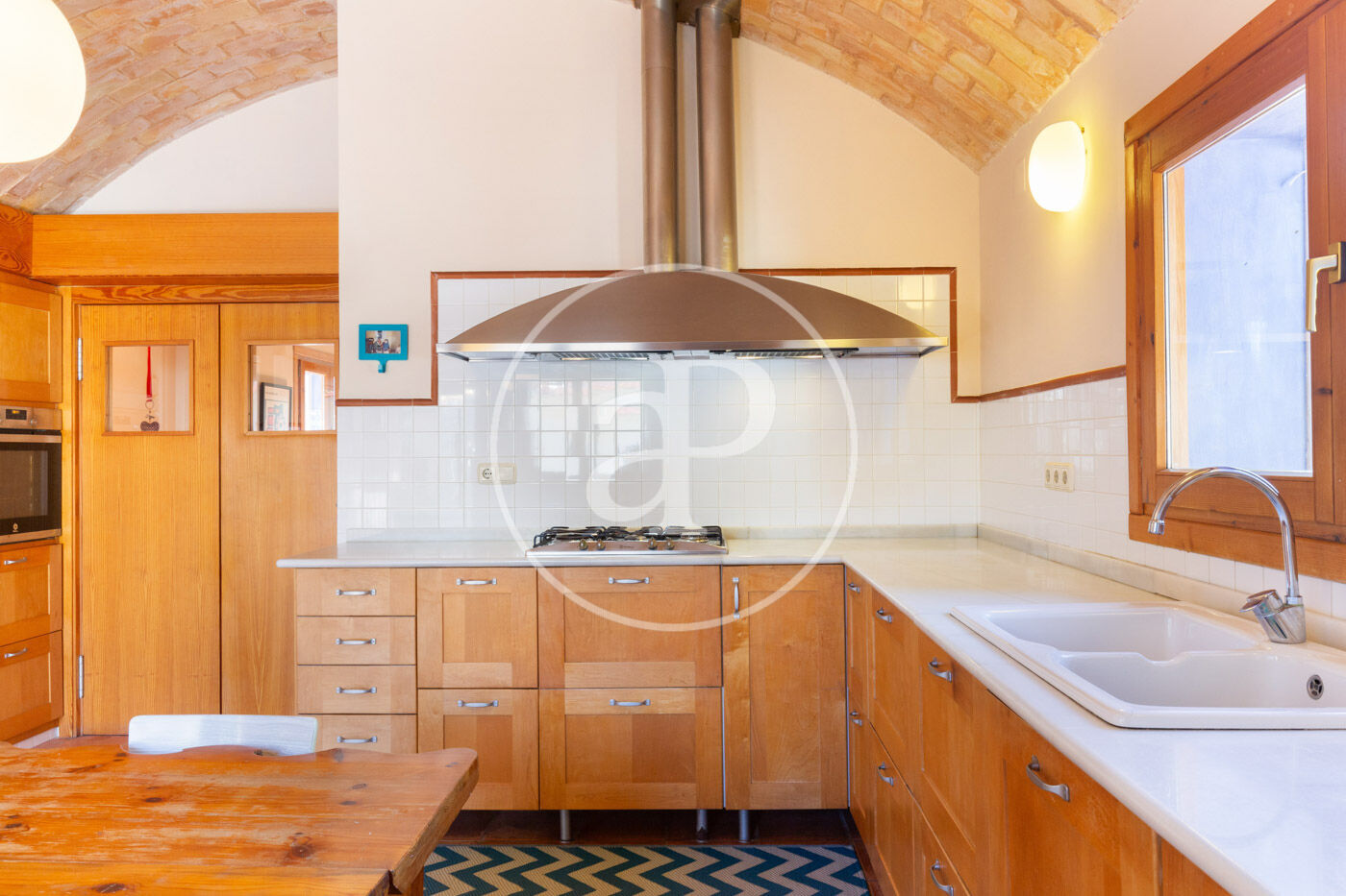 Se trata de una vivienda estilo mediterráneo, de diseño minimalista y con numerosos detalles arquitectónicos, en los que cabe resaltar sus techos abovedados de ladrillo caravista de cuatro metros de altura, vistas hacia el jardín, una chimenea de leña y unos acabados que hacen que sea única.