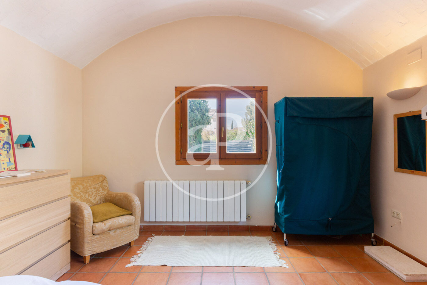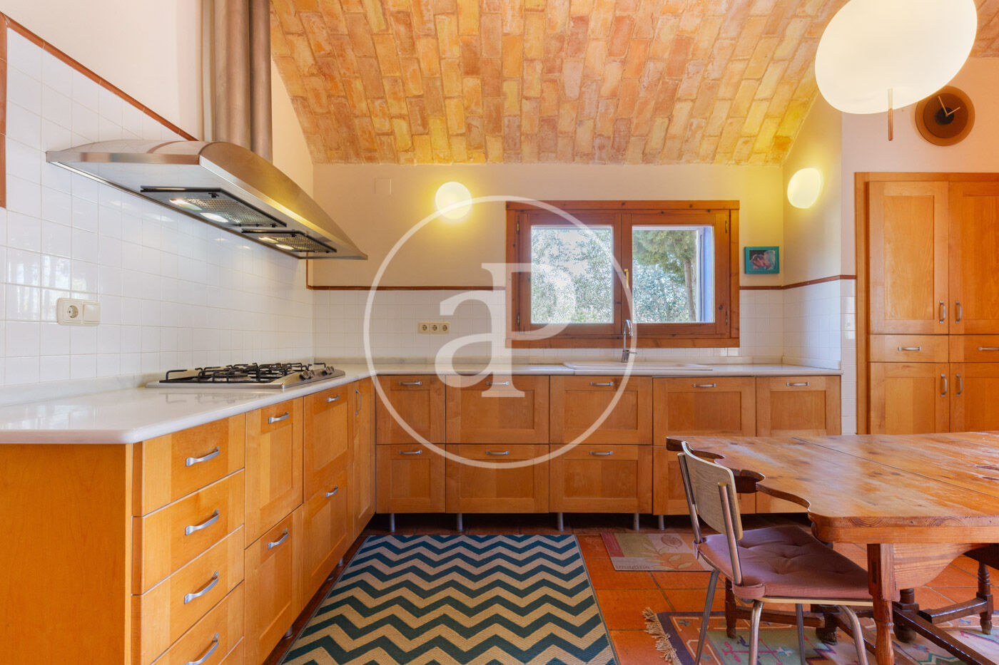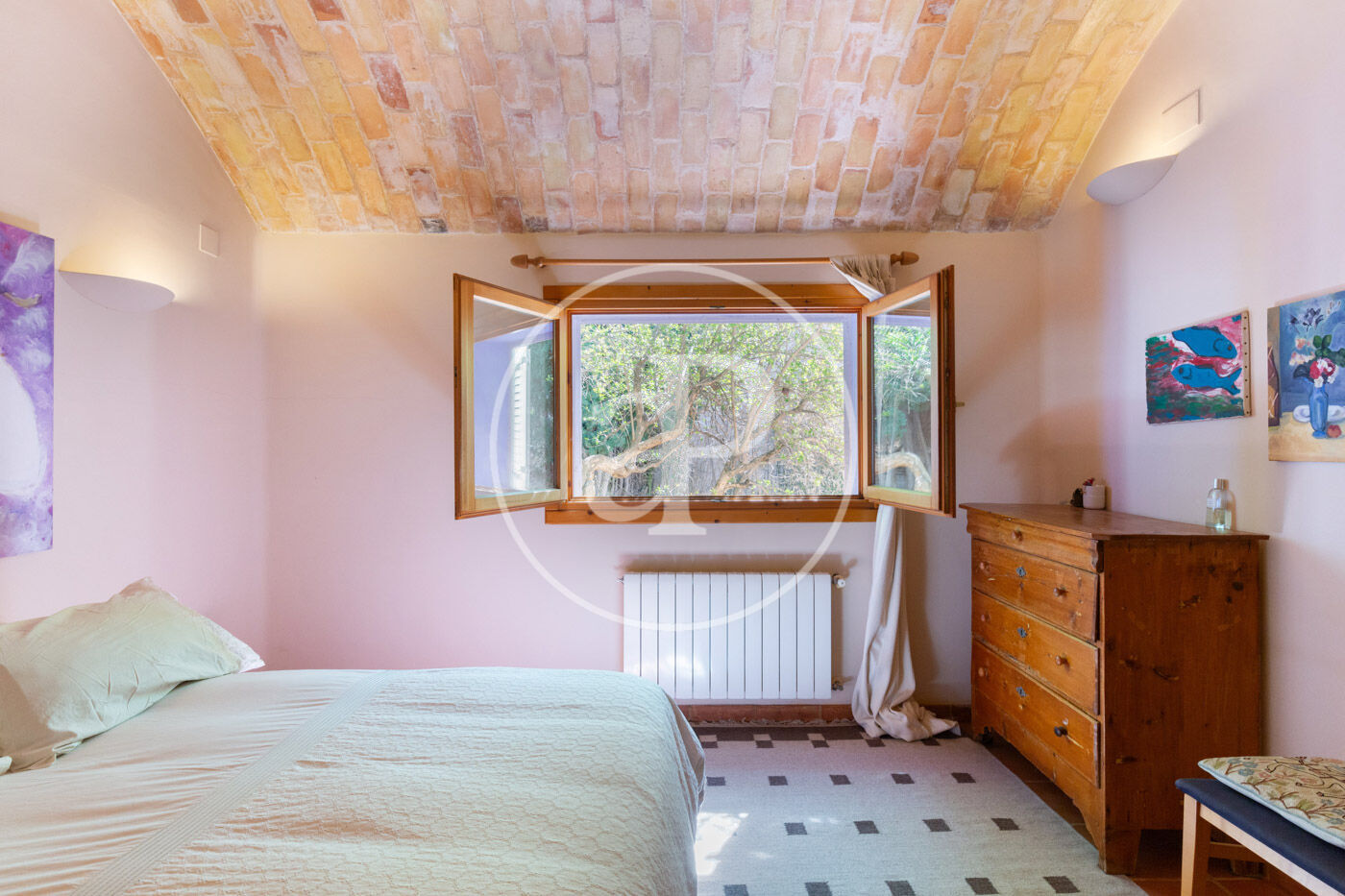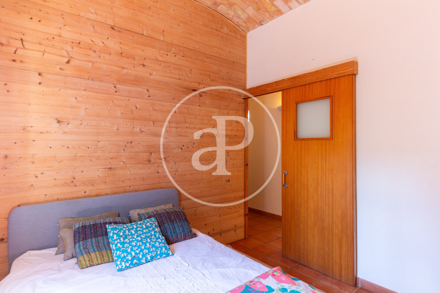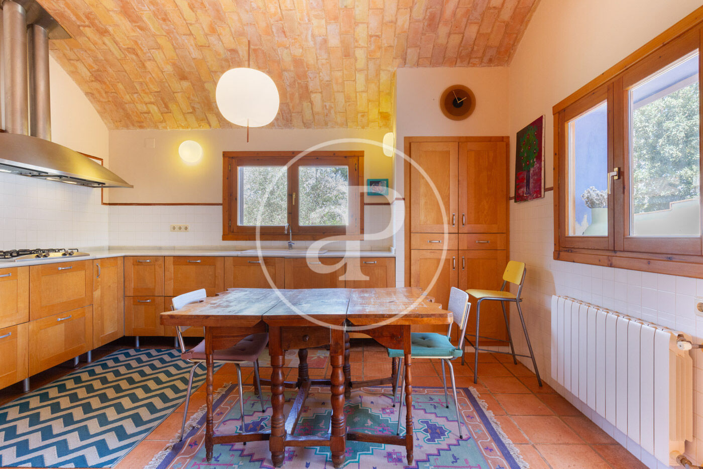 Se trata de una vivienda estilo mediterráneo, de diseño minimalista y con numerosos detalles arquitectónicos, en los que cabe resaltar sus techos abovedados de ladrillo caravista de cuatro metros de altura, vistas hacia el jardín, una chimenea de leña y unos acabados que hacen que sea única.