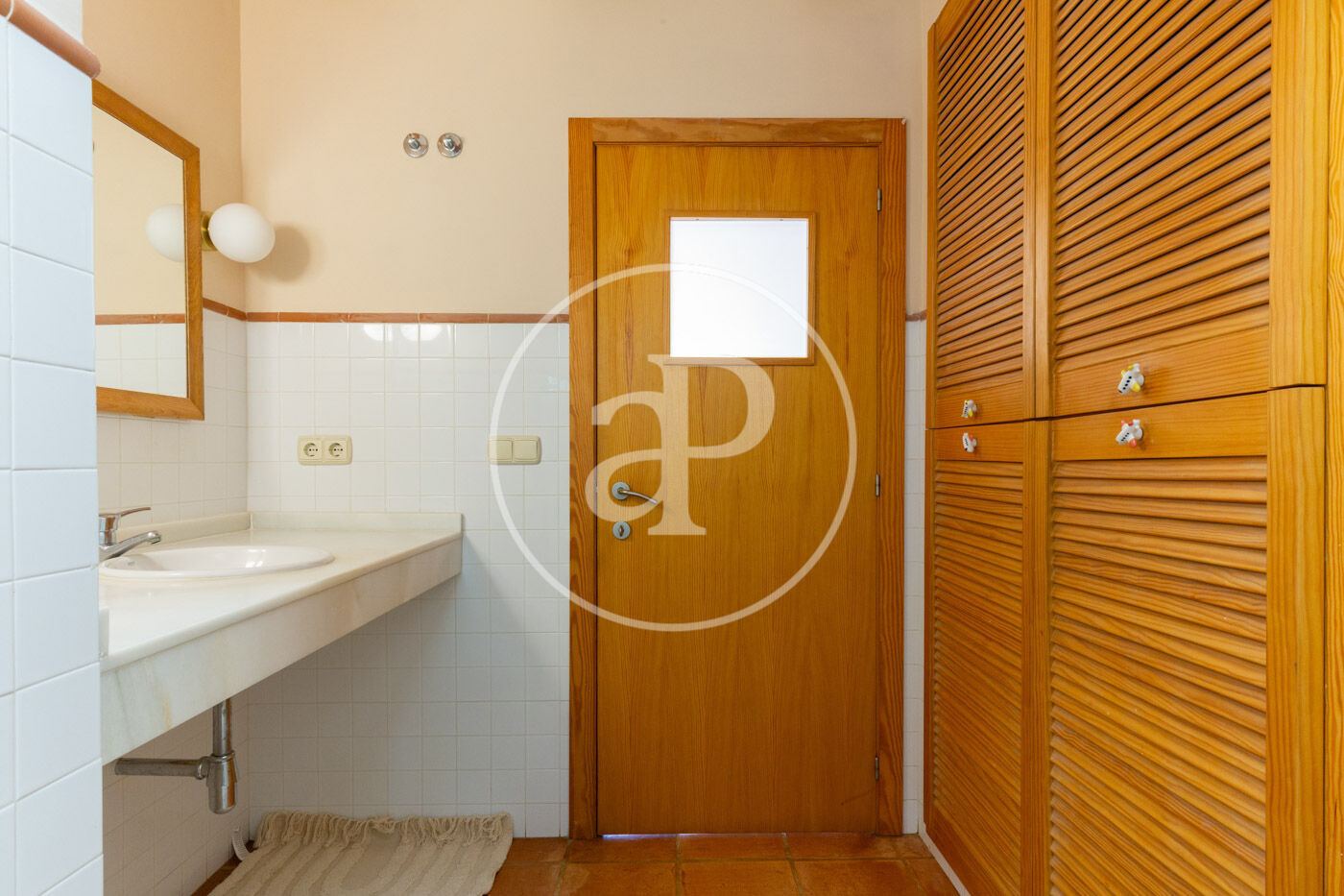 En resumen, una exclusiva vivienda en la zona de Montesano, en la tranquilidad de la naturaleza pero muy cercana a todos los servicios. La propiedad se encuentra a 5 minutos andando de los supermercados y a 5 minutos en coche del centro urbano de L' Eliana. A unos pocos kilómetros de la casa está el renombrado colegio internacional Home School International y un colegio público de educación primaria a 10 minutos andando. La salida a la autovía CV35 que le lleva a Valencia la tiene a 5 minutos.