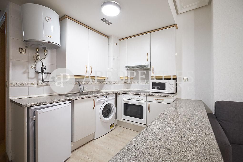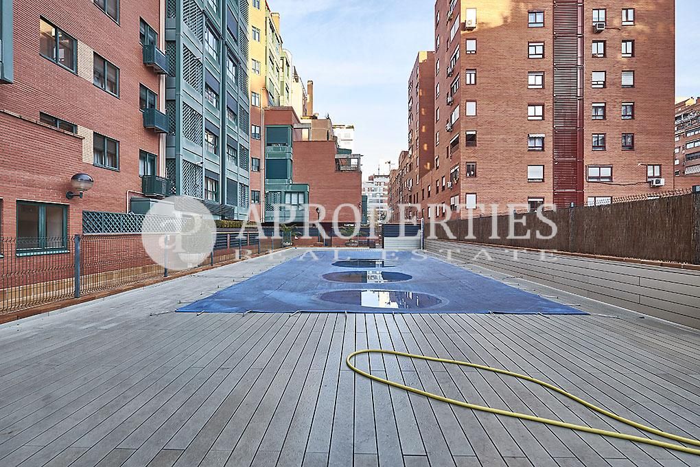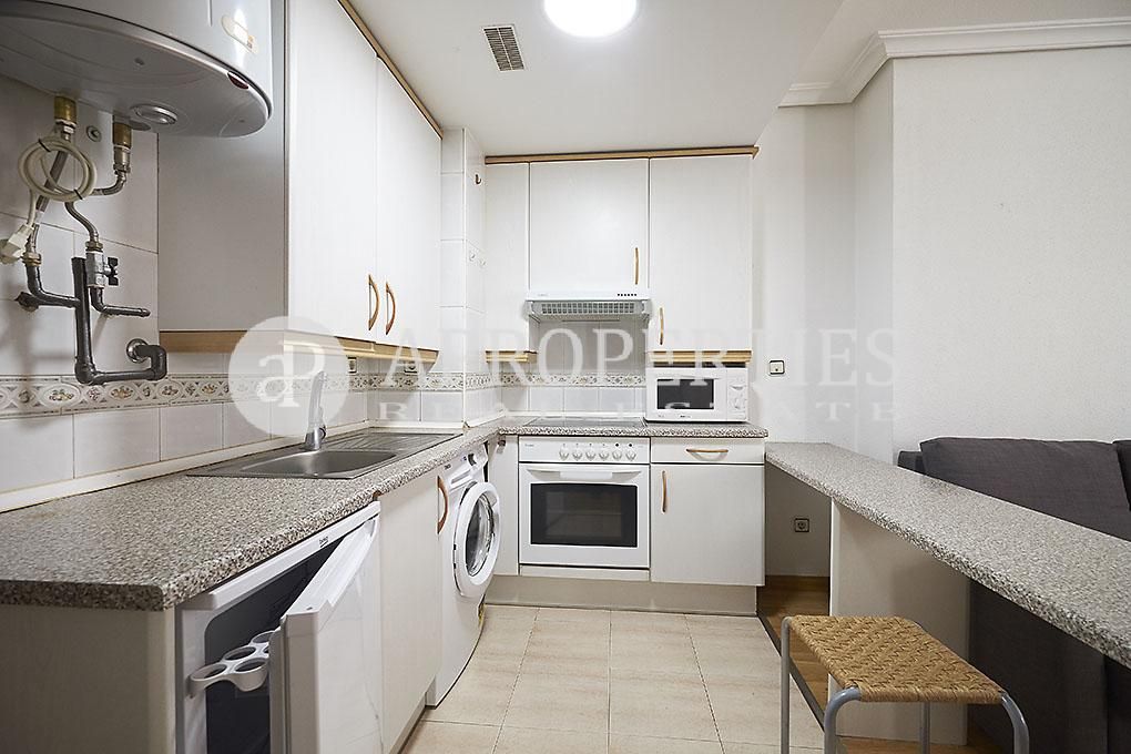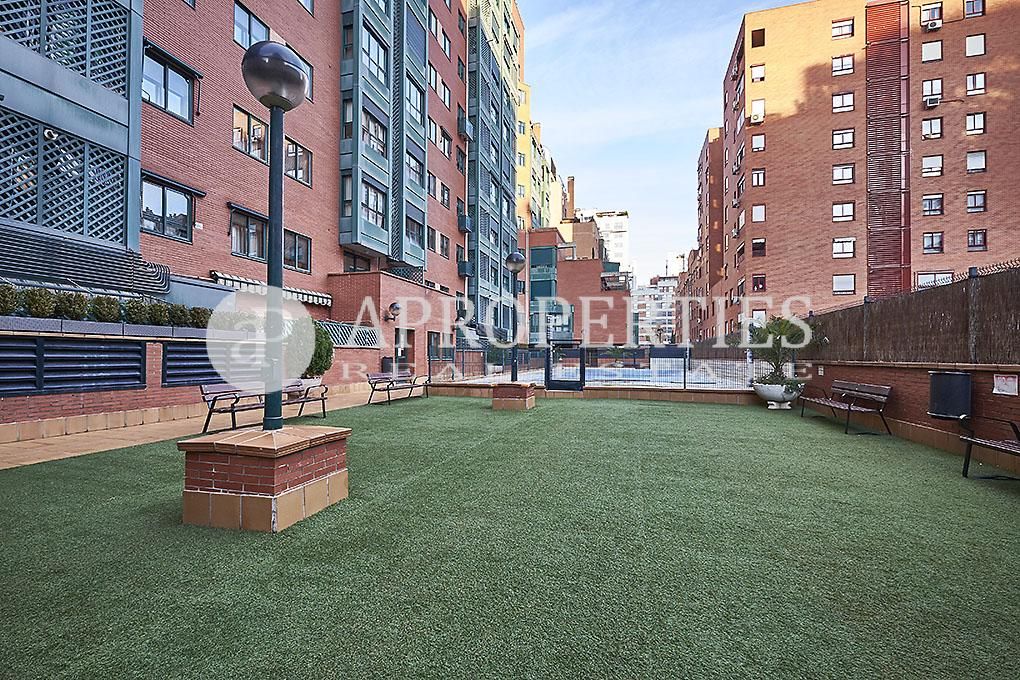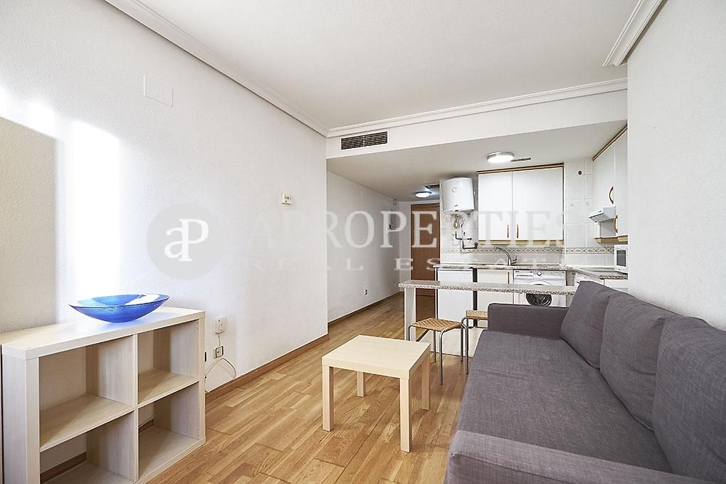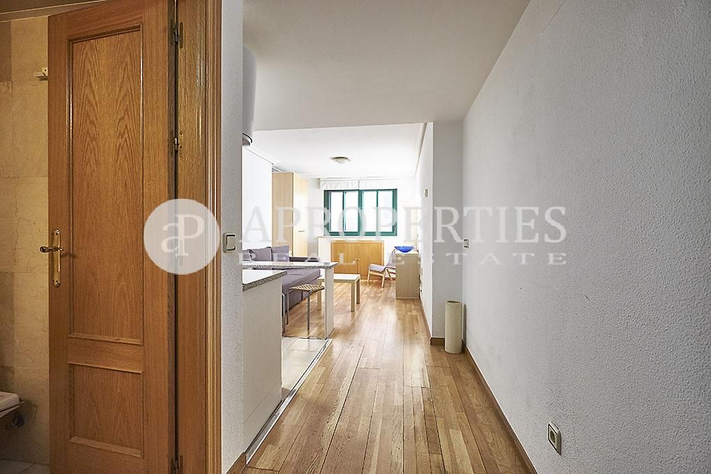 Bonito estudio con excelente ubicación, rodeado de los mejores servicios, hospitales, embajadas, colegios y perteneciente a una moderna urbanización privada. La vivienda se encuentra en una quinta planta con 41m² de superficie construida, distribuidos en una amplia estancia con mirador, una cocina americana equipada y un cuarto de baño completo con bañera hidromasaje. Dispone de aire acondicionado frio-calor. Incluye además un trastero muy amplio. La urbanización dispone de piscina, zonas ajardinadas, portero físico, video-portero y vigilancia 24h. Muy bien comunicado, próximo al metro de Avenida de la Paz y con fácil acceso a la M-30. Los gastos de comunidad son de 47 €/mes y el IBI es de 235 € aproximadamente. Posibilidad de alquilar o adquirir plaza de garaje en la misma finca.