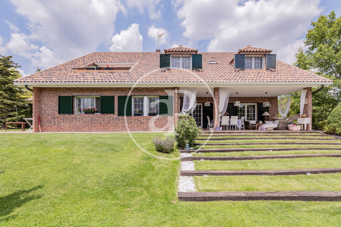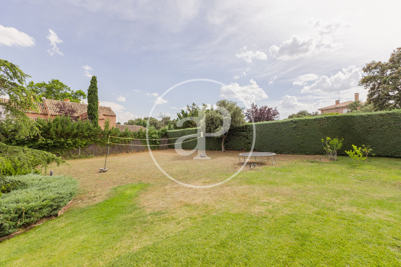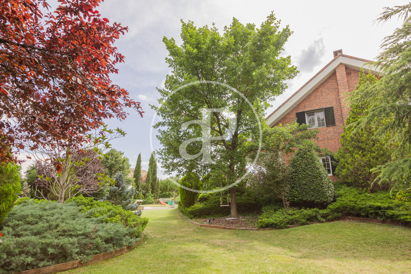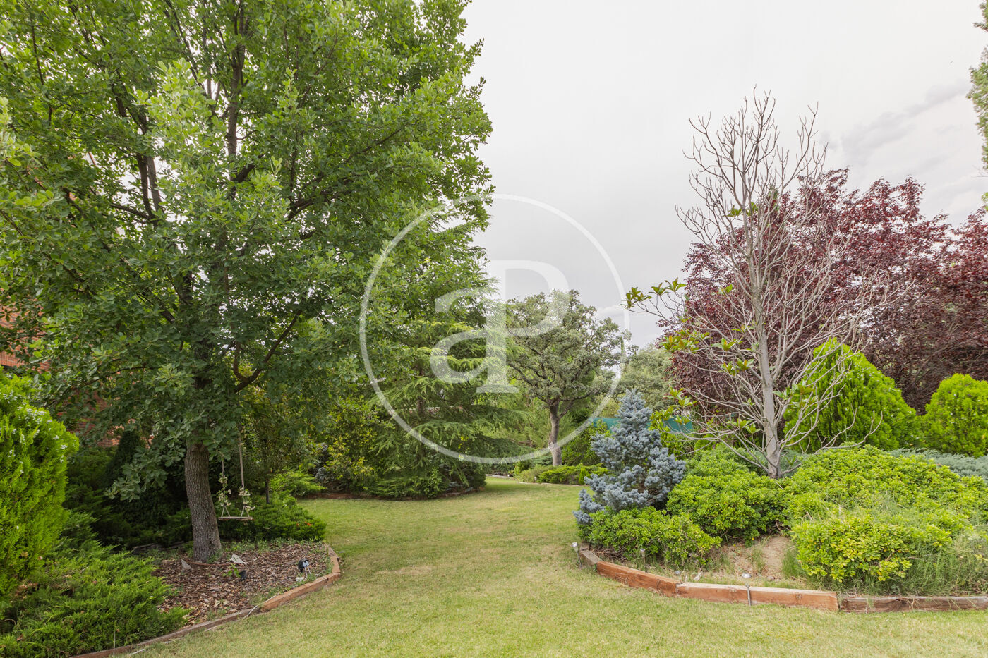 Enclavada en una tranquilla calle de la urbanización, la parcela plana y de más de 4.000 m², goza de gran intimidad. El jardín destaca por su frondosidad y rincones acogedores. Sobre él se alza un hórreo cántabro, de más de trescientos años de antigüedad. Integrado en el jardín, descubrimos un apartamento de 60 m² que goza de total independencia, ideal como espacio de servicio o zona de invitados. En el jardín también encontramos una piscina, zona de barbacoa y huerto.