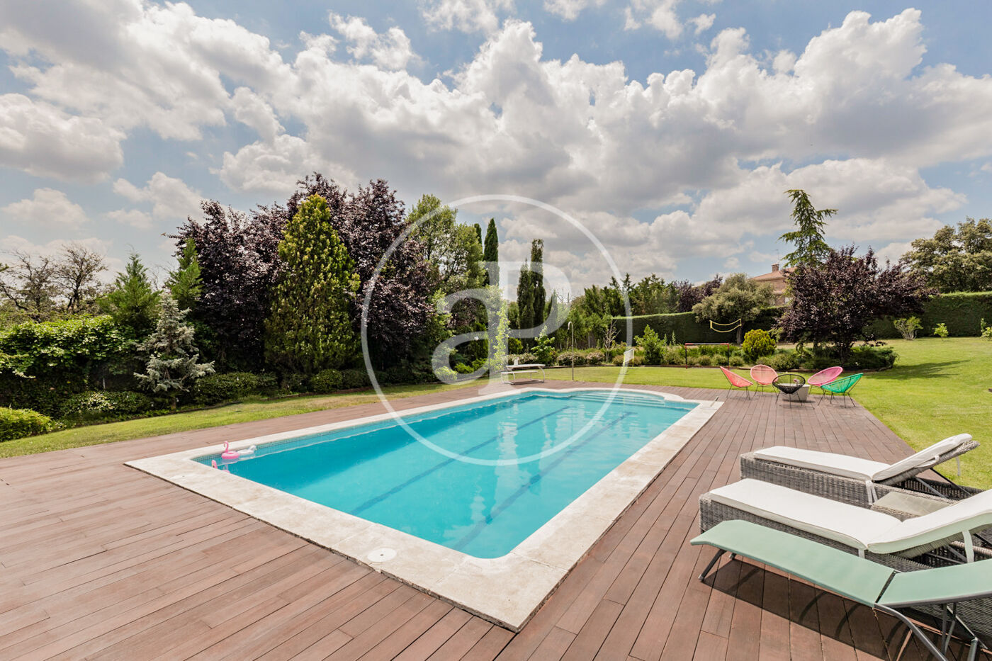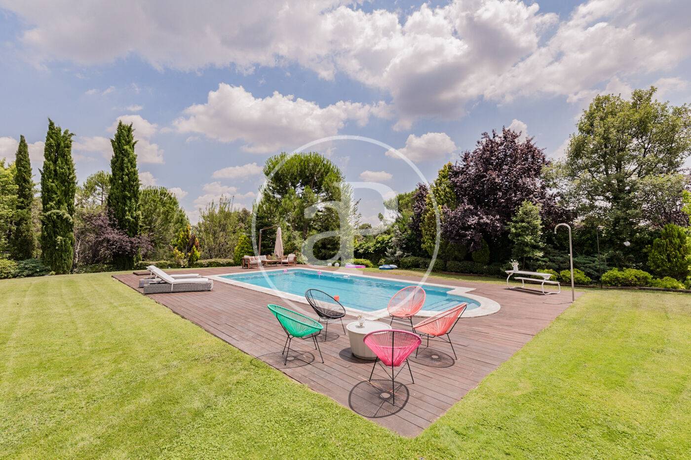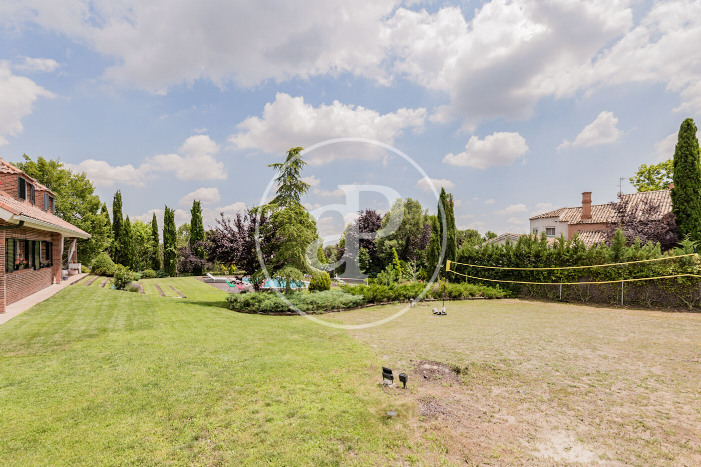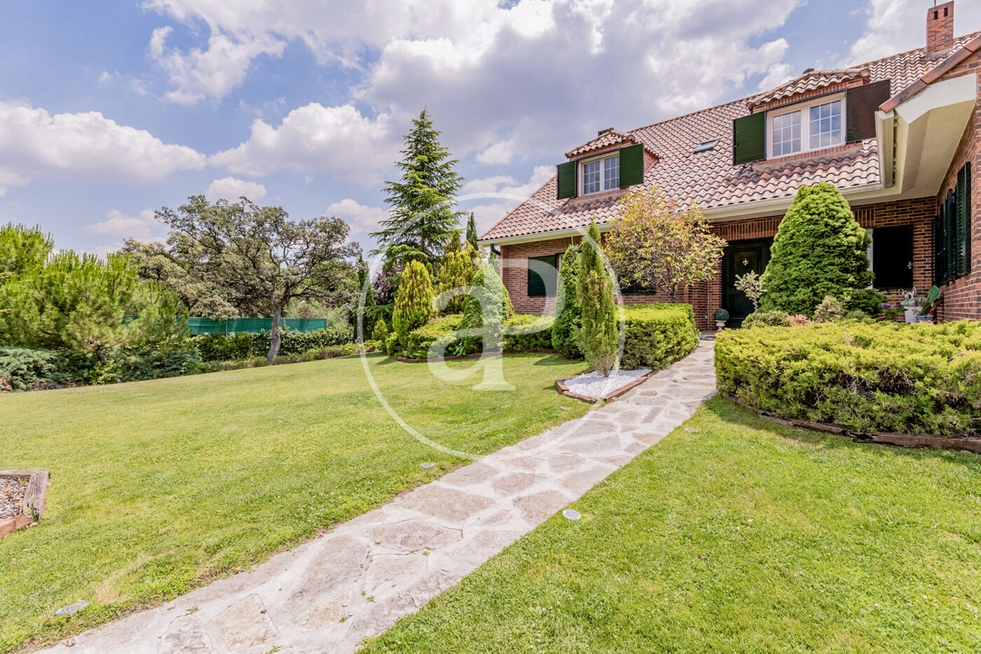 Enclavada en una tranquilla calle de la urbanización, la parcela plana y de más de 4.000 m², goza de gran intimidad. El jardín destaca por su frondosidad y rincones acogedores. Sobre él se alza un hórreo cántabro, de más de trescientos años de antigüedad. Integrado en el jardín, descubrimos un apartamento de 60 m² que goza de total independencia, ideal como espacio de servicio o zona de invitados. En el jardín también encontramos una piscina, zona de barbacoa y huerto.