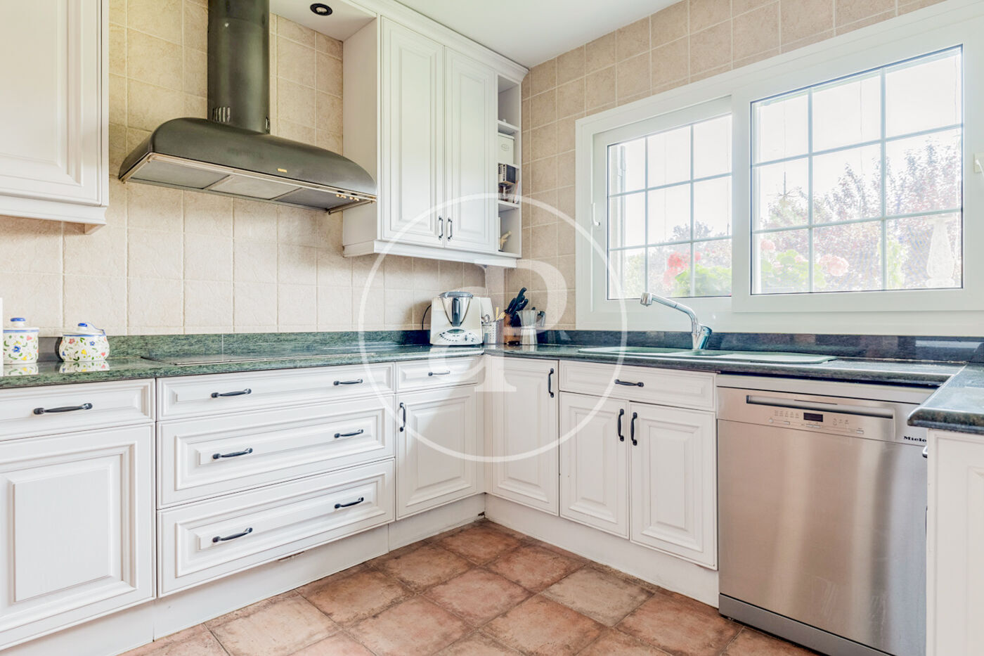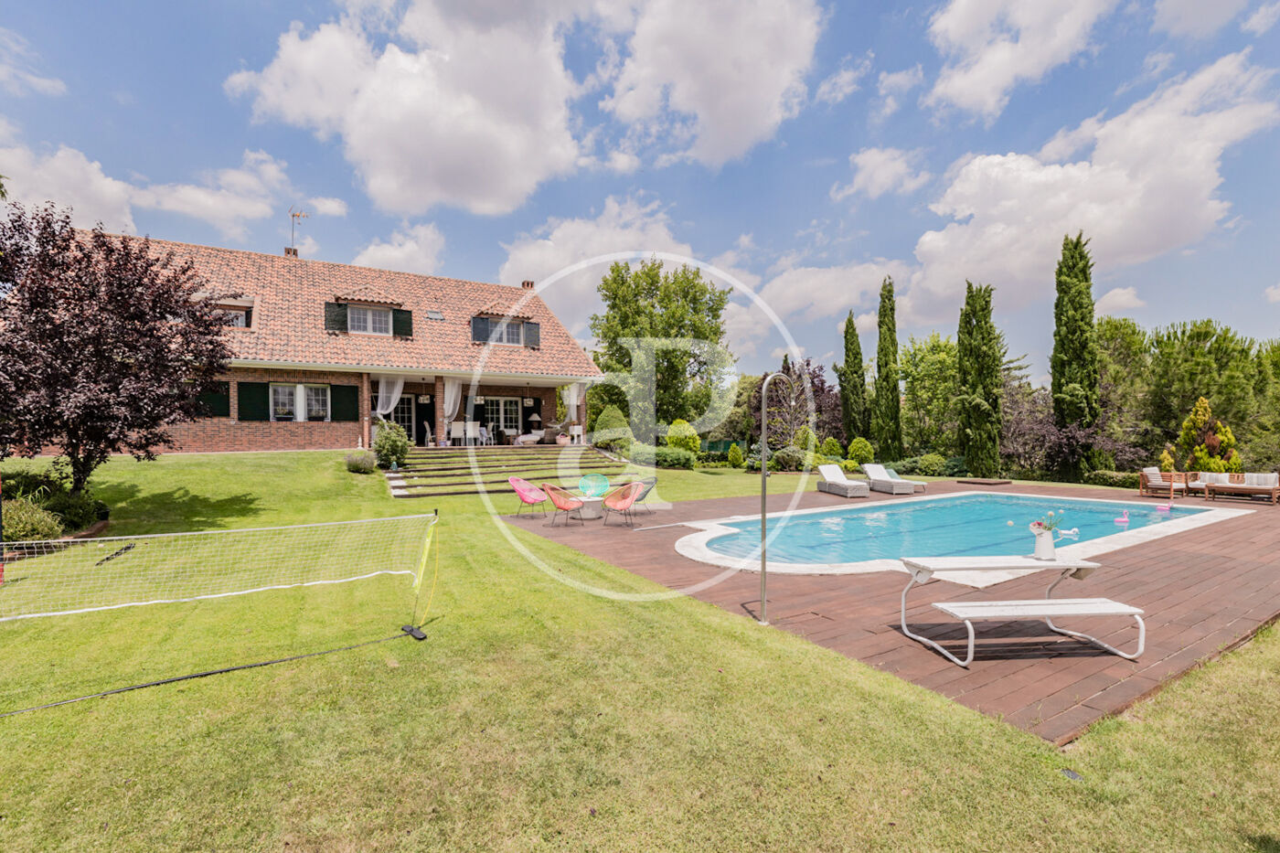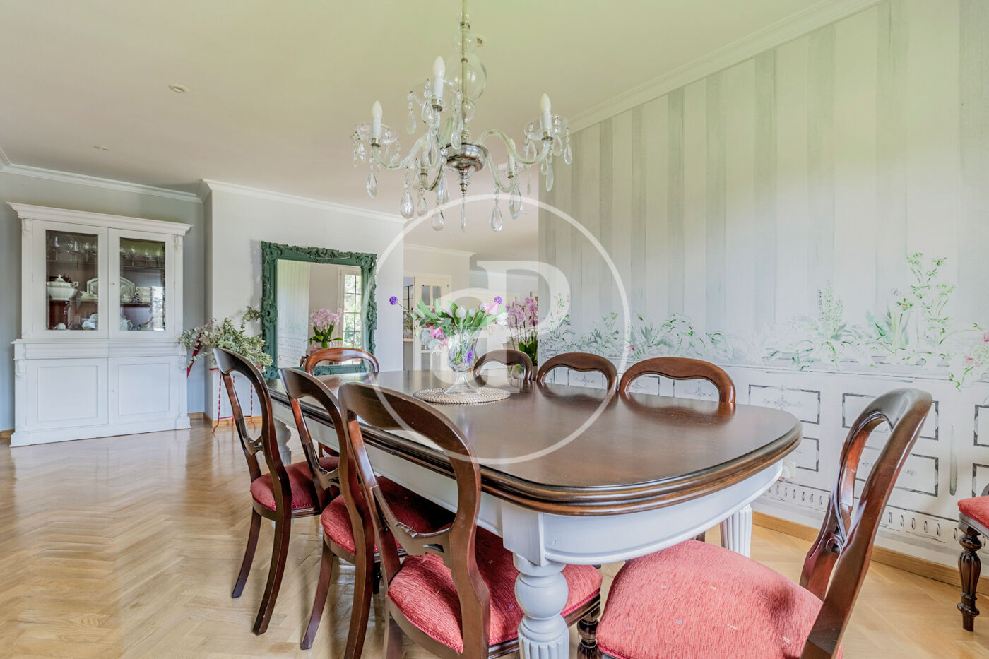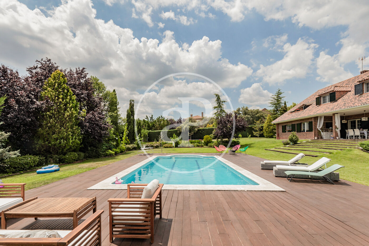Enclavada en una tranquilla calle de la urbanización, la parcela plana y de más de 4.000 m², goza de gran intimidad. El jardín destaca por su frondosidad y rincones acogedores. Sobre él se alza un hórreo cántabro, de más de trescientos años de antigüedad. Integrado en el jardín, descubrimos un apartamento de 60 m² que goza de total independencia, ideal como espacio de servicio o zona de invitados. En el jardín también encontramos una piscina, zona de barbacoa y huerto.