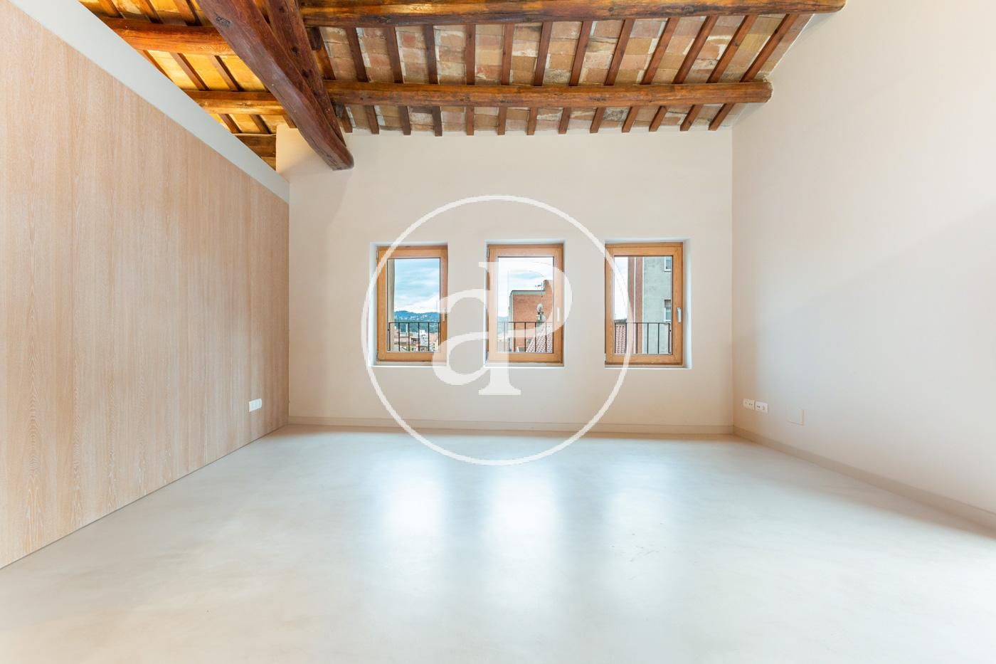 Magnífico ático totalmente rehabilitado de 106 m2 con terraza de 23 m2 con orientación sur. Reformado tipo loft a estrenar en edificio del siglo XV en pleno centro de Sant Cugat, cercano a infinitud de rincones y espacios de la ciudad.