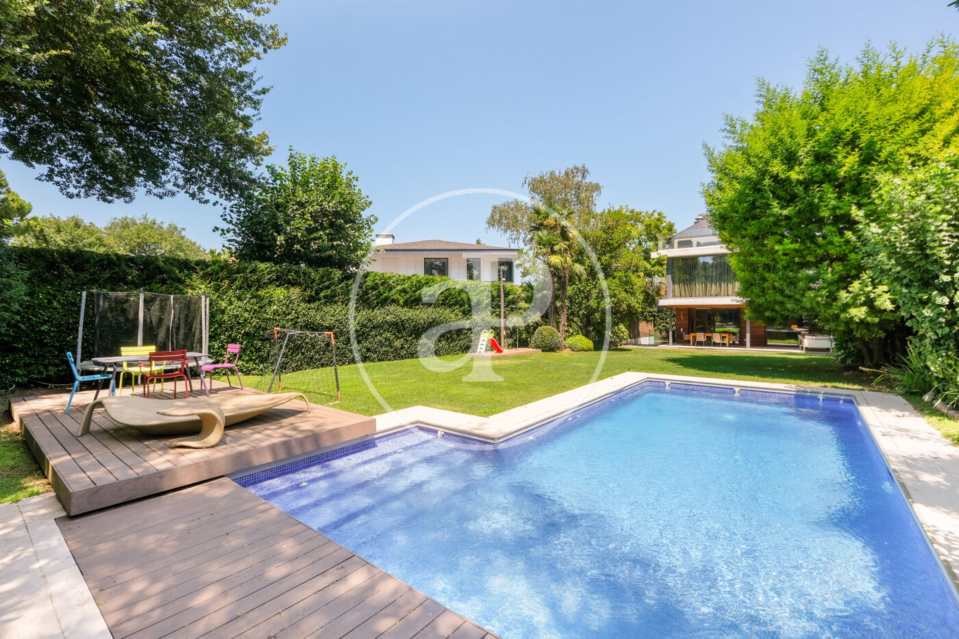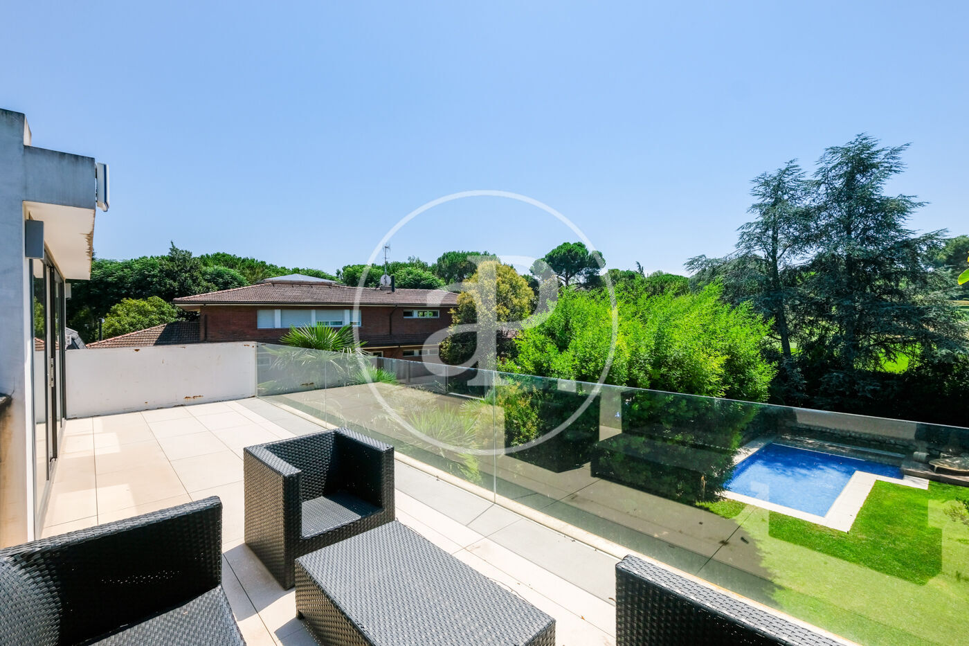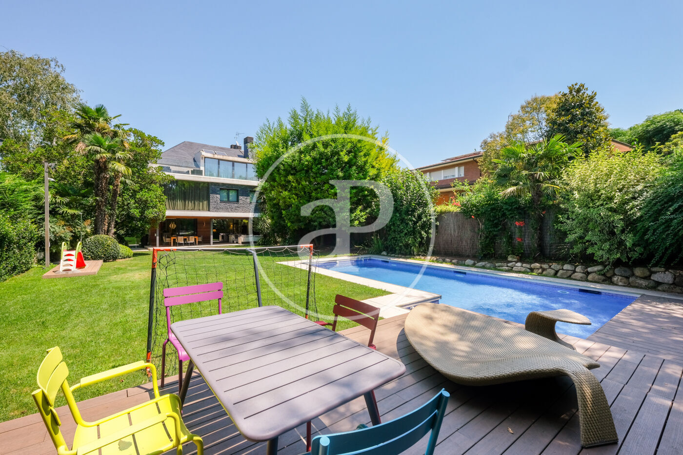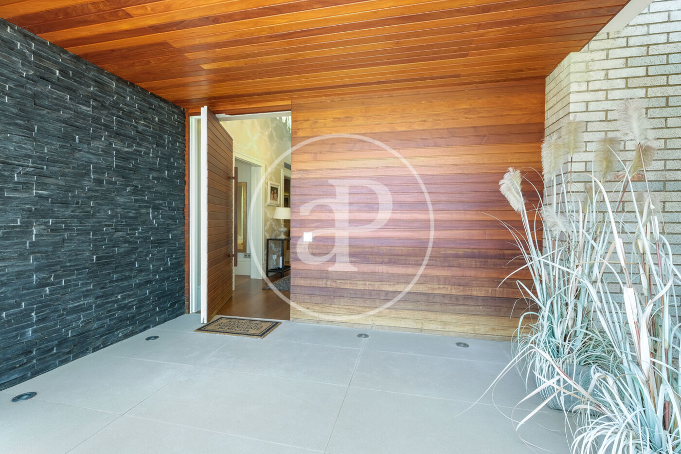 Diseño, lujo y exclusividad, son los mejores adjetivos que describen a esta espectacular villa de 590 m2 construidos, reformada íntegramente por un prestigioso arquitecto, cuidando el más mínimo detalle en toda la vivienda. Cuenta con una parcela amplia y ajardinada de 845 m2, frente al Golf de Sant Cugat, con inmejorable ubicación en la zona residencial más exclusiva y tranquila de Sant Cugat, L’Eixample, al lado de paradas de autobús, a menos de 10 minutos andando de la estación de tren "FGC Sant Cugat Centre" y del centro de la ciudad y todo tipo de servicios y a tan sólo 15 minutos en coche de la zona alta de Barcelona.