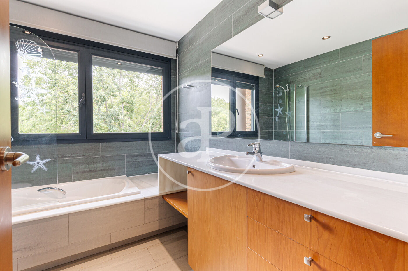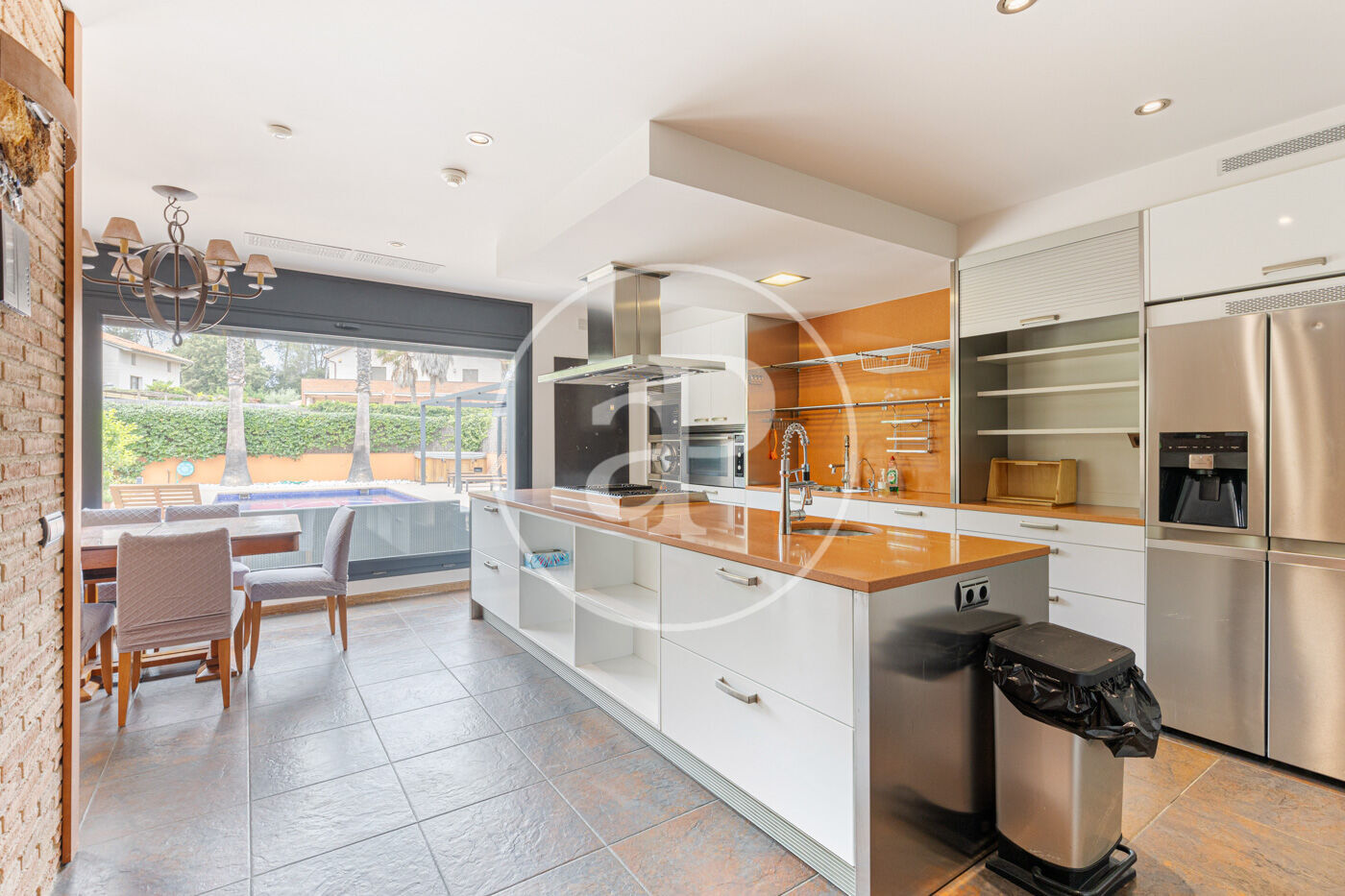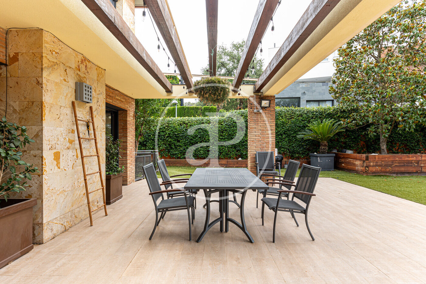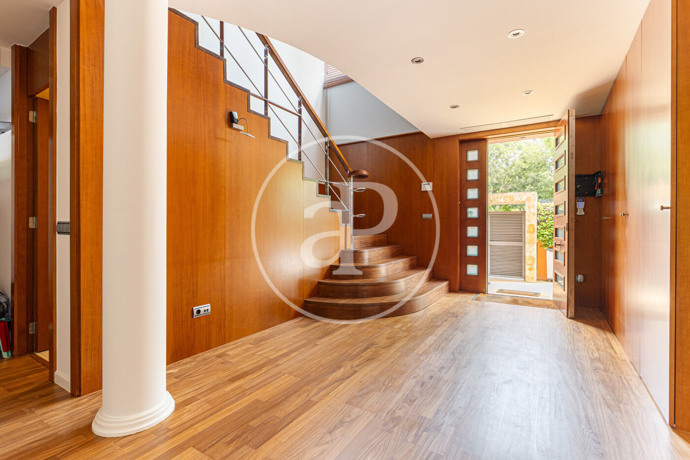 En una exclusiva zona de Can Trabal, se alza esta magnífica casa unifamiliar sobre un terreno de 918m² con 612m² construidos. Situada en la zona de Can Trabal/Golf de Sant Cugat, Can Vilallonga y en plena naturaleza (Golf, hípica y tenis). Zona muy tranquila al lado del parque de Collserola y a pocos minutos de la estación de los Ferrocarriles y del comercio. A tan solo 20 minutos de Barcelona.