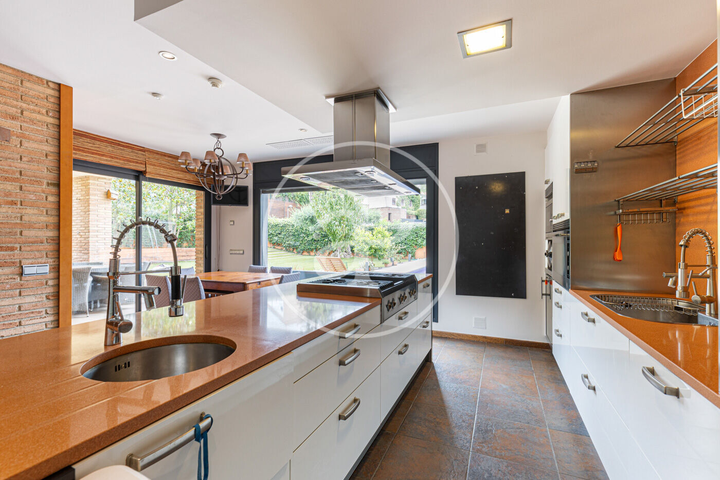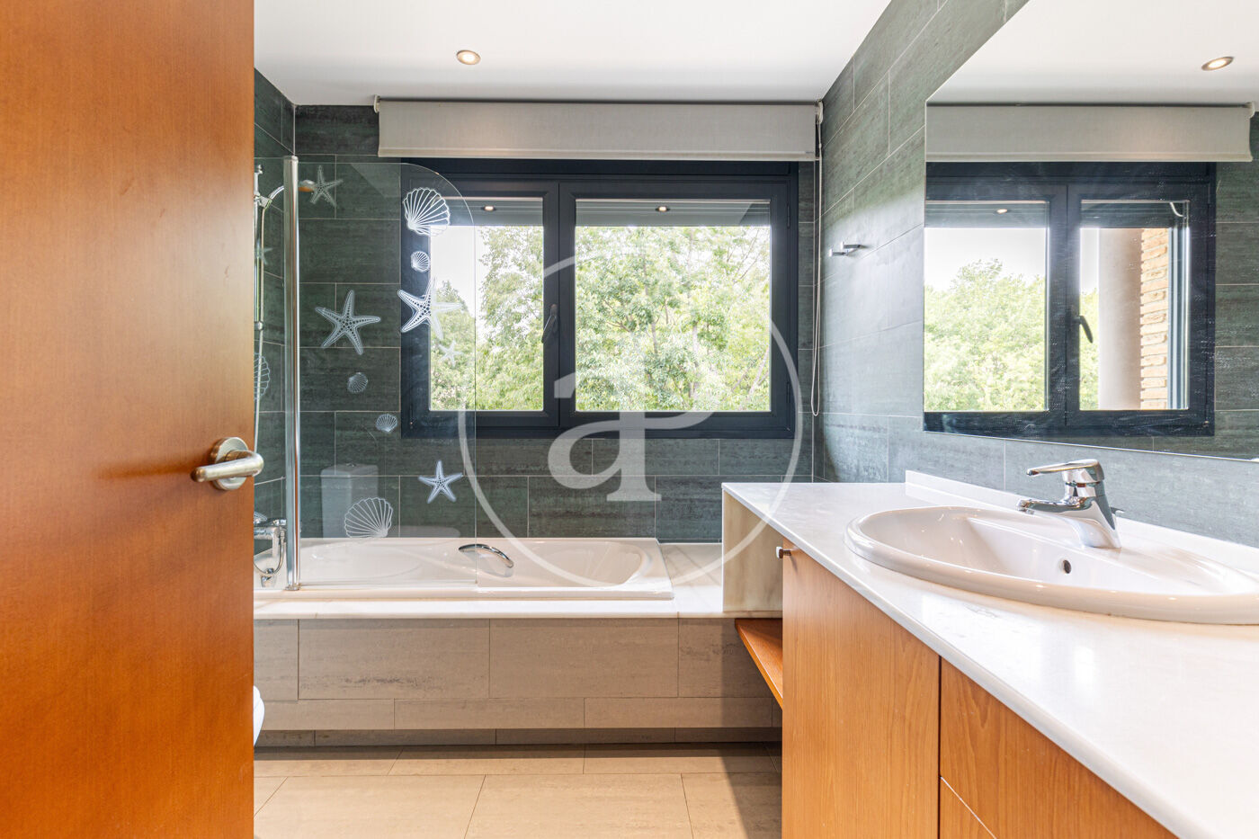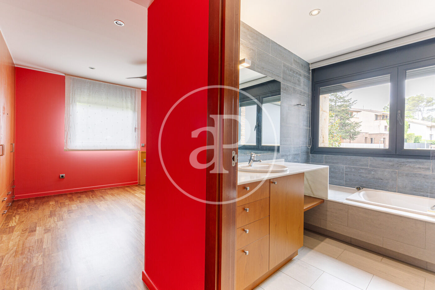 En una exclusiva zona de Can Trabal, se alza esta magnífica casa unifamiliar sobre un terreno de 918m² con 612m² construidos. Situada en la zona de Can Trabal/Golf de Sant Cugat, Can Vilallonga y en plena naturaleza (Golf, hípica y tenis). Zona muy tranquila al lado del parque de Collserola y a pocos minutos de la estación de los Ferrocarriles y del comercio. A tan solo 20 minutos de Barcelona.