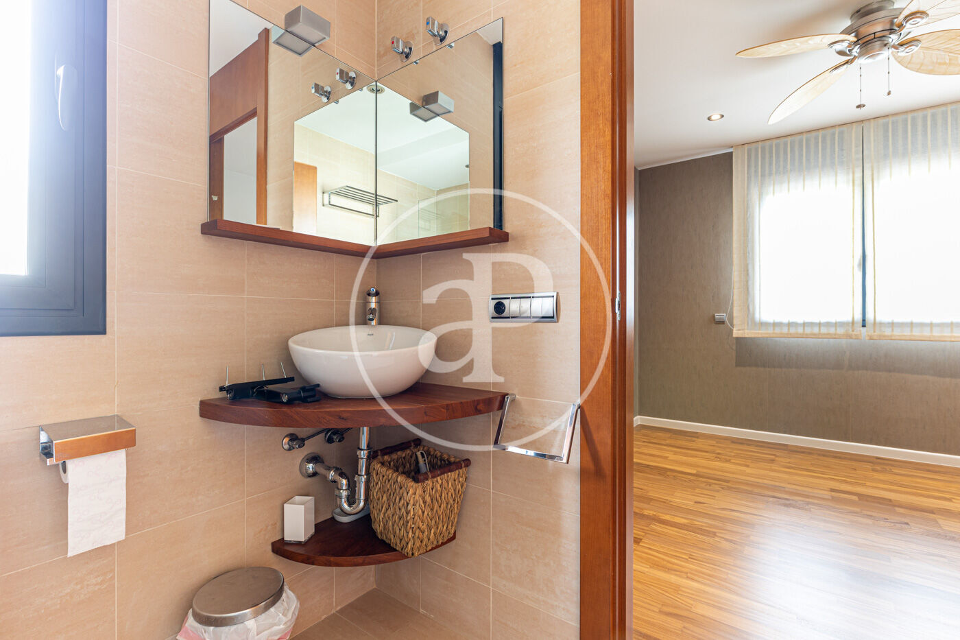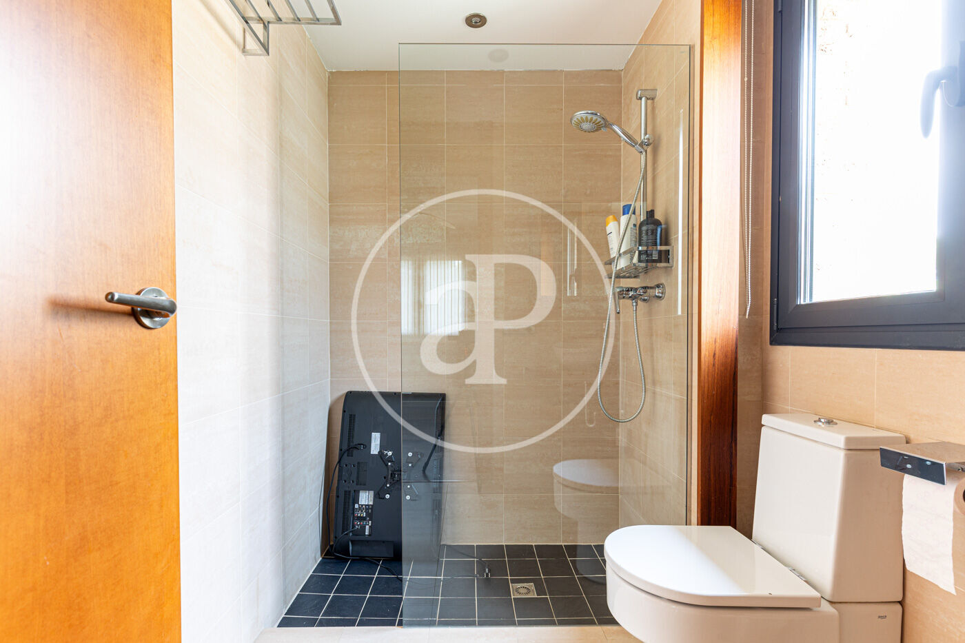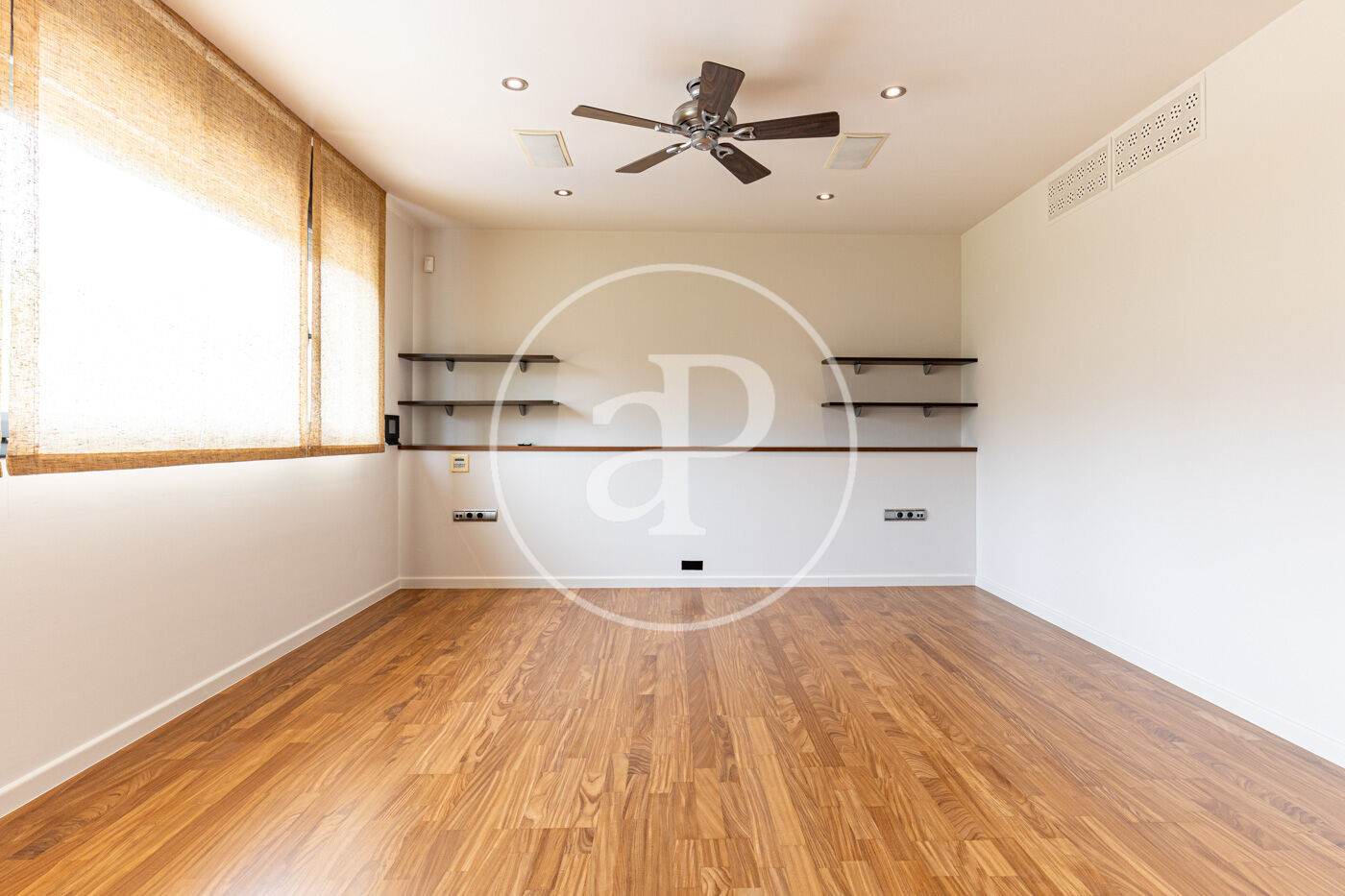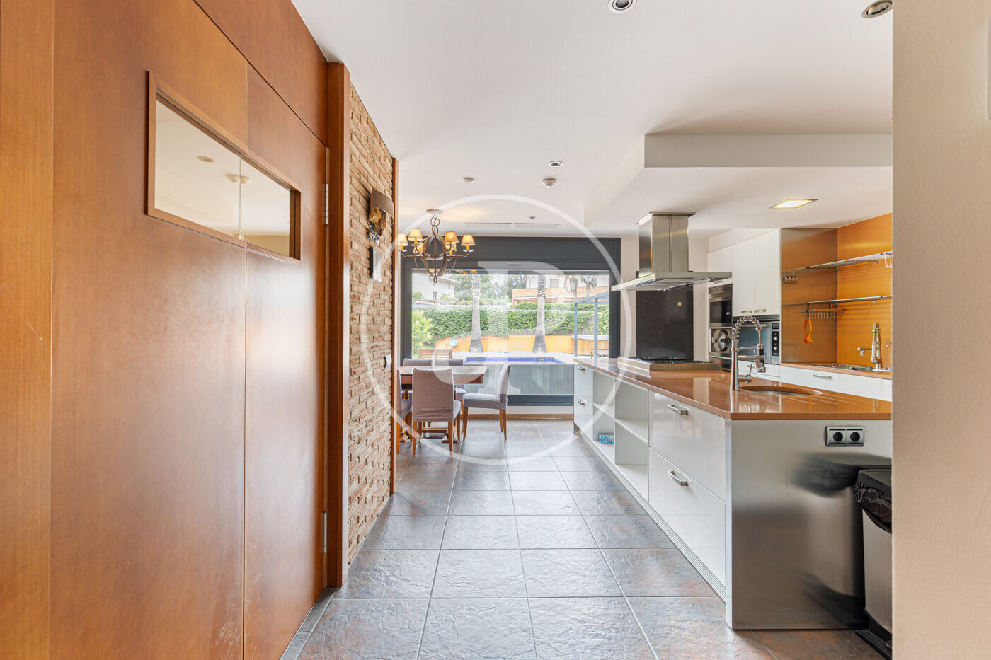 En una exclusiva zona de Can Trabal, se alza esta magnífica casa unifamiliar sobre un terreno de 918m² con 612m² construidos. Situada en la zona de Can Trabal/Golf de Sant Cugat, Can Vilallonga y en plena naturaleza (Golf, hípica y tenis). Zona muy tranquila al lado del parque de Collserola y a pocos minutos de la estación de los Ferrocarriles y del comercio. A tan solo 20 minutos de Barcelona.