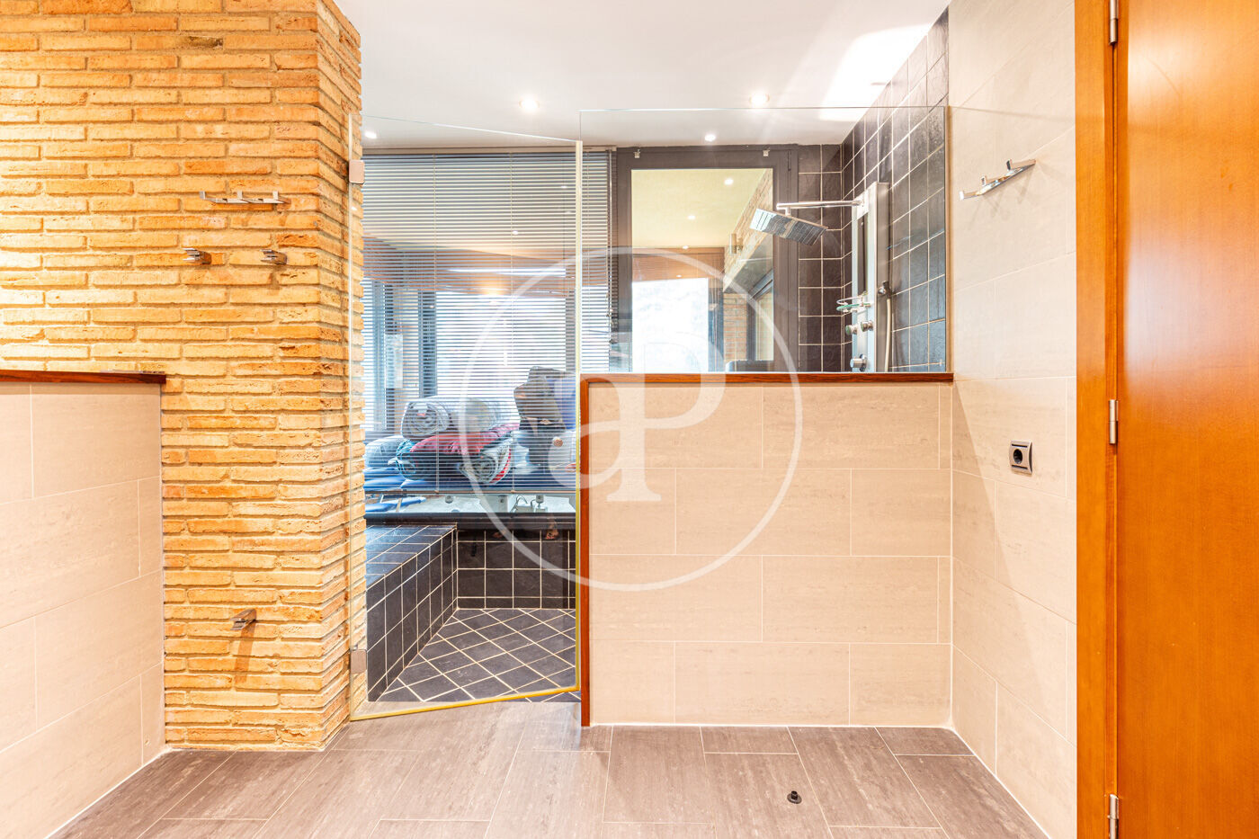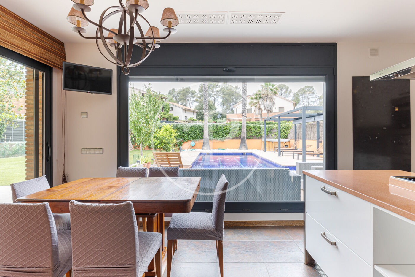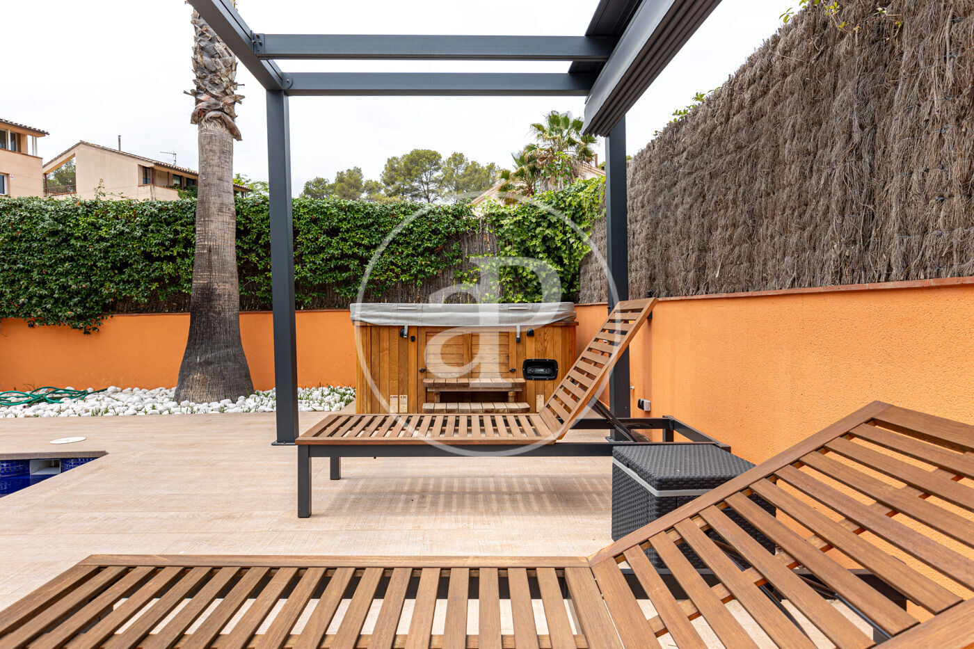 La propiedad está en un estado perfecto de conservación, con una zona exterior muy completa, espacio ajardinado con piscina de agua salina, zona chill out, jacuzzi y zona barbacoa con pérgola y toldos demóticos totalmente nuevos.