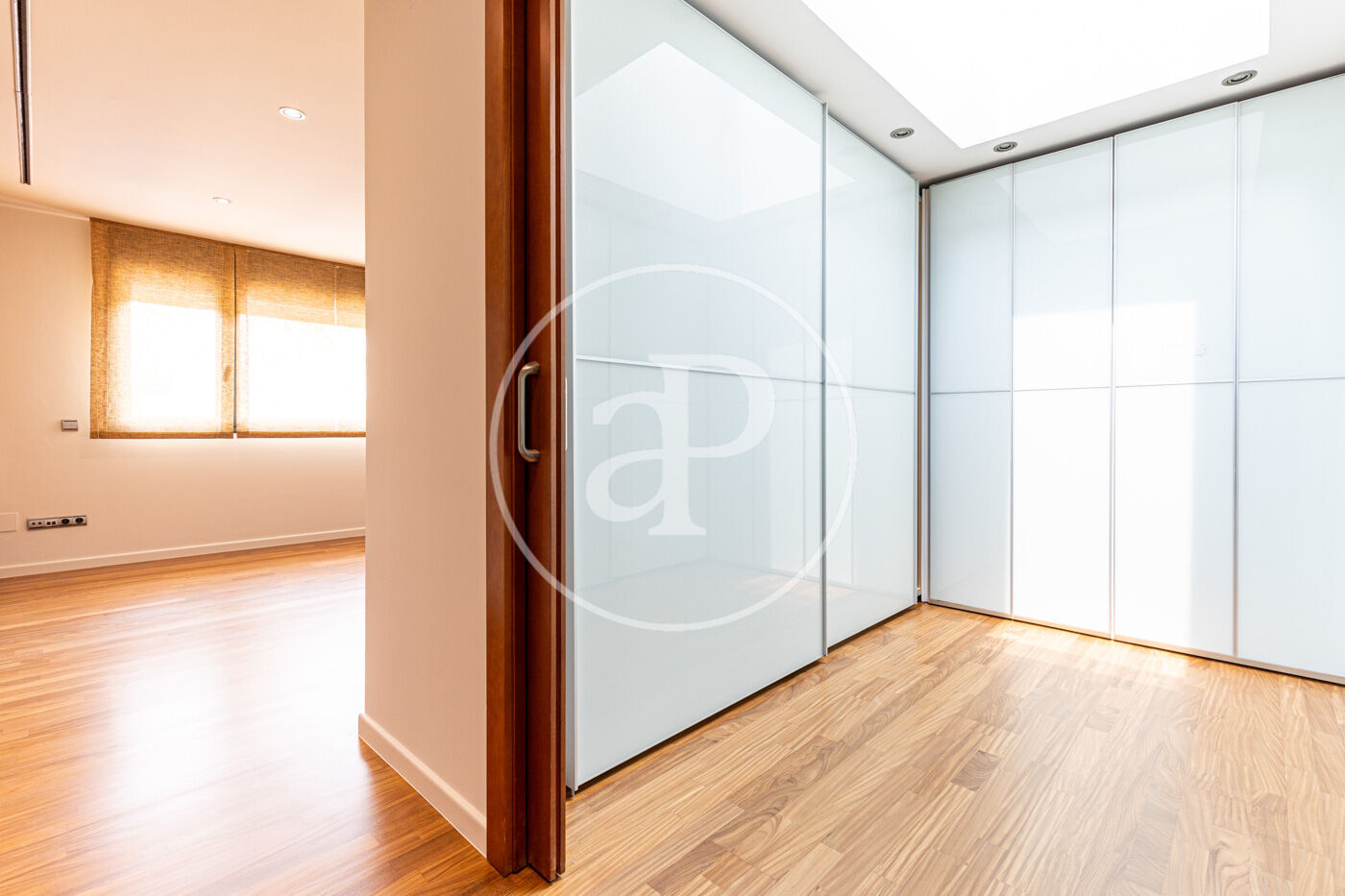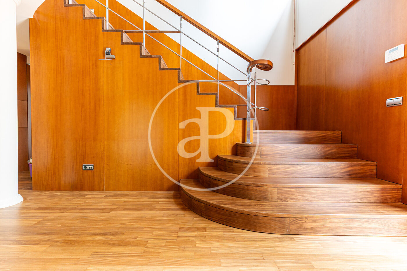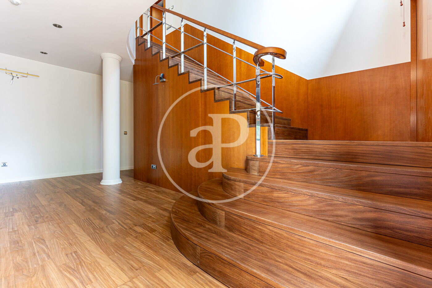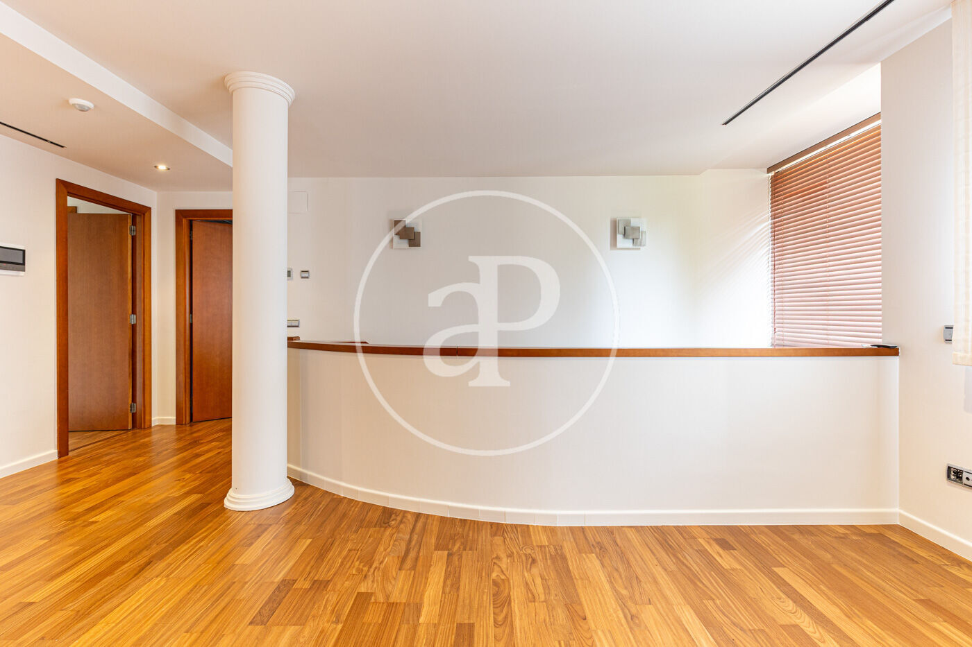 En la planta superior se desarrolla la zona de noche, compuesta por 4 habitaciones suites, todas exteriores y con armarios empotrados. La master suite principal con baño completo, vestidor y un pequeño gimnasio. Todas las habitaciones se conectan directamente por un espacio común o segundo salón.
