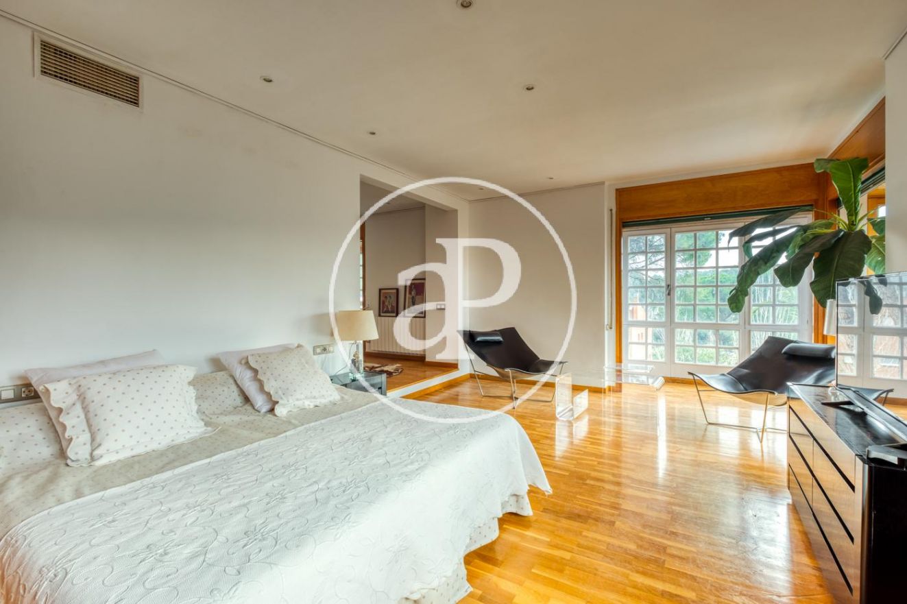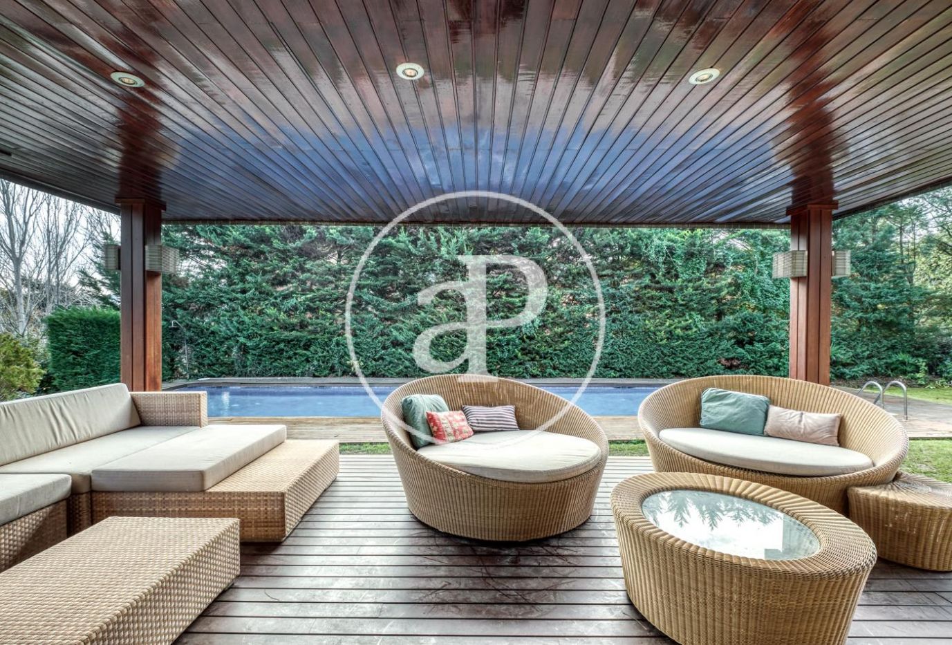 aProperties les presenta esta bonita propiedad que está ubicada en La urbanización Los Monasterios y está considerada como una de las mejores urbanizaciones de Valencia. Localizada a sólo 20 minutos en coche de la capital, es una opción perfecta para disfrutar de la bellísima sierra Calderona y del Mediterráneo con sus amplias playas de bandera azul. Centro urbano próximos como Puzol, brinda de todo tipo de servicios como colegios, centros médicos, tiendas, supermercados y gasolineras. La zona incluye algunos de los mejores colegios internacionales de Valencia, así como exclusivos clubes deportivos. El aeropuerto se encuentra a 20-25 minutos de distancia, la estación del metro a 10 minutos y tren a corta distancia a 5 minutos. Esta maravillosa vivienda de 614m2 está asentada sobre una parcela de 1810m2. Tiene un estilo contemporáneo y está dividida en tres plantas. Entramos a la vivienda y nos encontramos con un gran salón con chimenea en planta baja, separado en tres ambientes muy bien distribuidos. A su izquierda conecta con la cocina independiente totalmente equipada que tiene salida a una de las terrazas que hace de comedor en las épocas de verano. A su derecha una amplia habitación que actualmente se utiliza de despacho. Toda esta planta tiene unos amplios ventanales y por los que podemos acceder a la terraza y a la zona de barbacoa. Subimos a la primera planta y nos encontramos con 5 habitaciones, una de ellas en suite, y dos baños completos. Desde la planta baja accedemos al sótano y se sitúa la zona de juegos, la lavandería, el garaje y un servicio. Si quiere realizar una visita póngase en contacto con nosotros, estaremos encantados de atenderle.