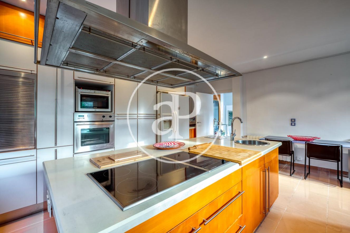 aProperties Real Estate les presenta en EXCLUSIVA esta magnífica propiedad que hoy les presentamos: Diseño, lujo y exclusividad, son los mejores adjetivos que describen a este espectacular ático dúplex a estrenar de 245 m2 con terraza privada única en su zona, reformado íntegramente cuidando el más mínimo detalle en toda la vivienda. Situado en una zona privilegiada de Sant Cugat, cuenta con una espaciosa y cómoda zona comunitaria con consejería, bonita e íntima piscina con zona ajardinada, pista de pádel y zona infantil. Ubicado en el prestigioso barrio de l'Eixample a 6 minutos andando de la estación de FFCC Sant Cugat y próximo de todo tipo de servicios, comercios, gimnasios, restaurantes y conexión directa por autobús con infinitud de puntos de interés. La vivienda se distribuye en 2 plantas, en la planta baja encontramos un espacioso salón comedor que gracias a sus grandes ventanales nos permite salir al espacio exterior con una privacidad única. Encontramos además una amplia cocina office de las mejores calidades, totalmente equipada con electrodomésticos más exclusivos de las marcas PREMIUM del mercado, zona de lavandería independiente y baño completo. Siguiendo nuestro recorrido encontramos 4 habitaciones dobles, todas ellas exteriores, dos de ellas en formato suite. Gracias a unas bonitas escaleras desde el vestíbulo accedemos a dos majestuosas habitaciones muy espaciosas con vistas panorámicas a la ciudad de Sant Cugat y montaña, así como espacio de vestidor y almacenaje, así como un baño completo. La vivienda dispone de 2 plazas de aparcamiento en la misma finca. ACABADOS DE CALIDAD: suelos de parqué, calefacción individual a gas por radiadores, aire acondicionado por conductos (bomba de frío y calor), carpintería exterior con doble cristal de la máxima calidad, carpintería interior de madera lacada en blanco, consejería, y muchos más. UBICACIÓN: Ubicada en una zona privilegiada y exclusiva de l'Eixample, cuenta con excelentes comunicaciones con las principales carreteras con acceso inmejorables a Barcelona y alrededores. La zona de l'Eixample destaca por sus zonas residenciales tranquilas y caracterizadas por su proximidad a infinitud de servicios, comercios y servicios médicos a escasos minutos. No dude en contactar con el equipo experto de aProperties Real Estate para la búsqueda de su nuevo hogar, siempre eficaces, cercanos y profesionales.