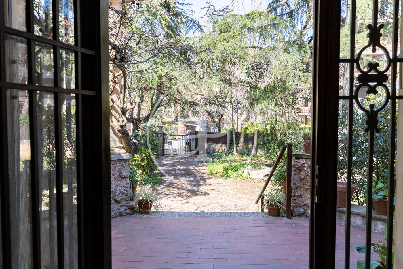 La valla que rodea el jardín y la casa está construida con pilastras rematadas con una moldura en escocia. En el jardín destacan dos cedros catalogados, de las variedades del Atlas y del Himalaya.