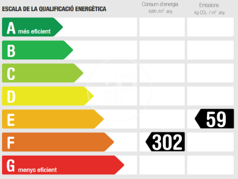 Más eficiente Menos eficie Calificación energética Consumo energía Kw h/m² año Emisiones Co/m² año 302.00 59.00