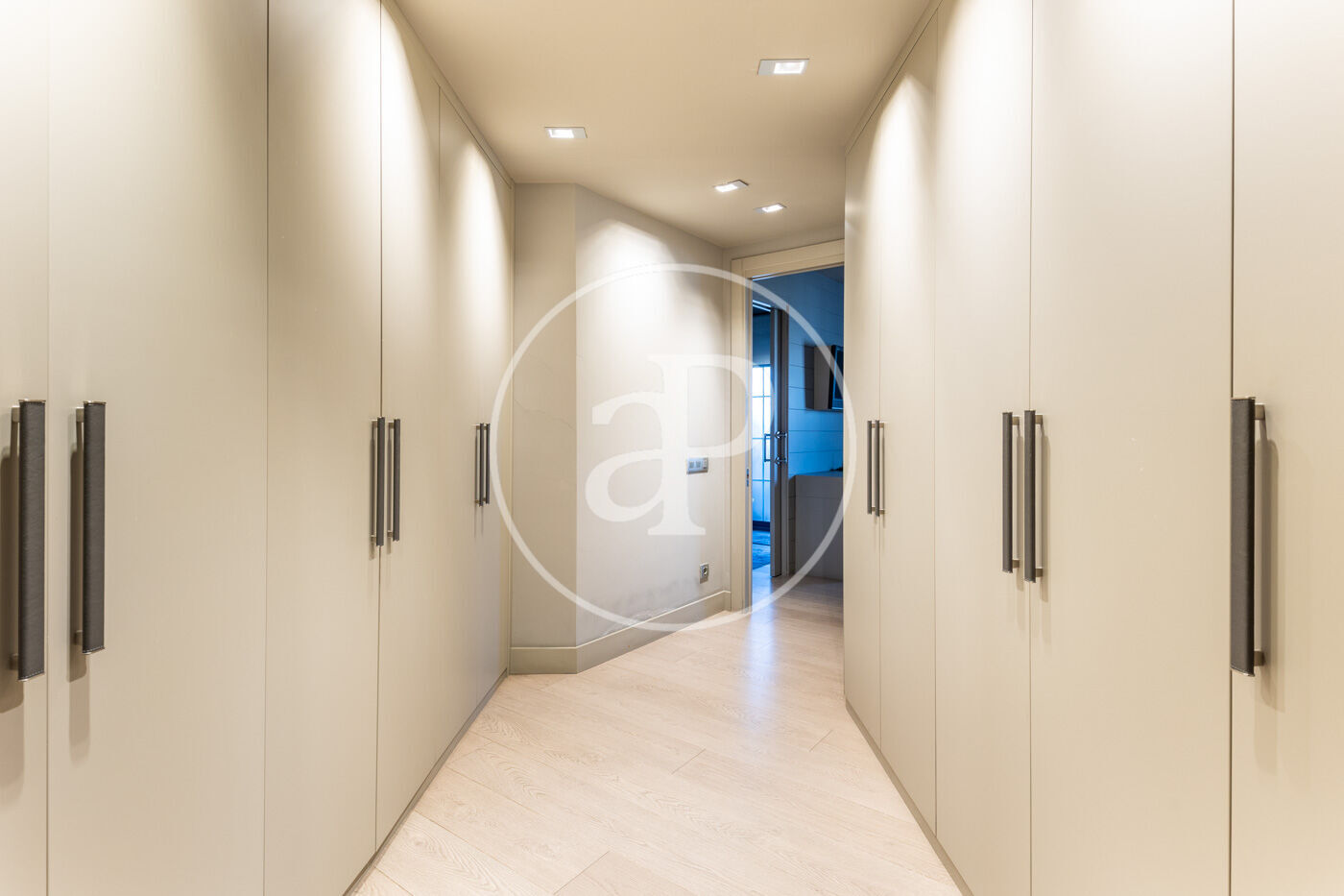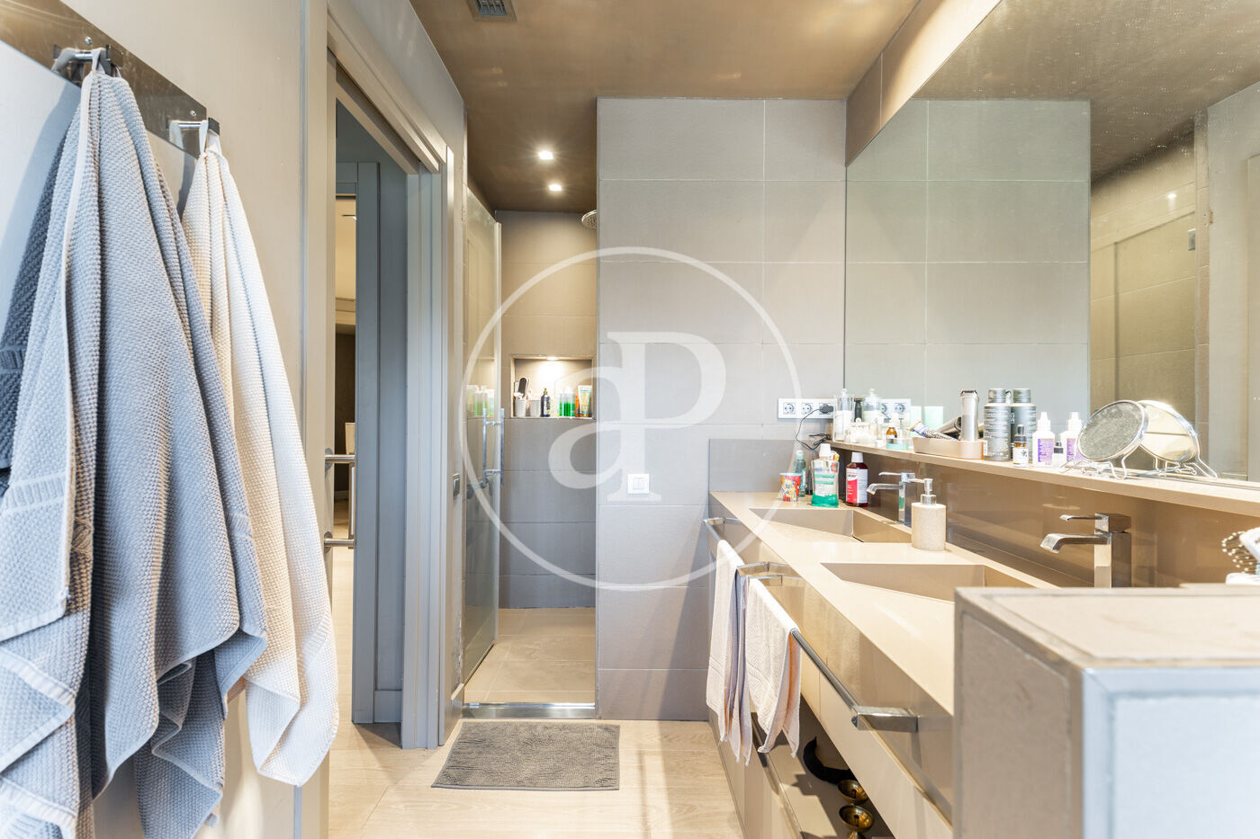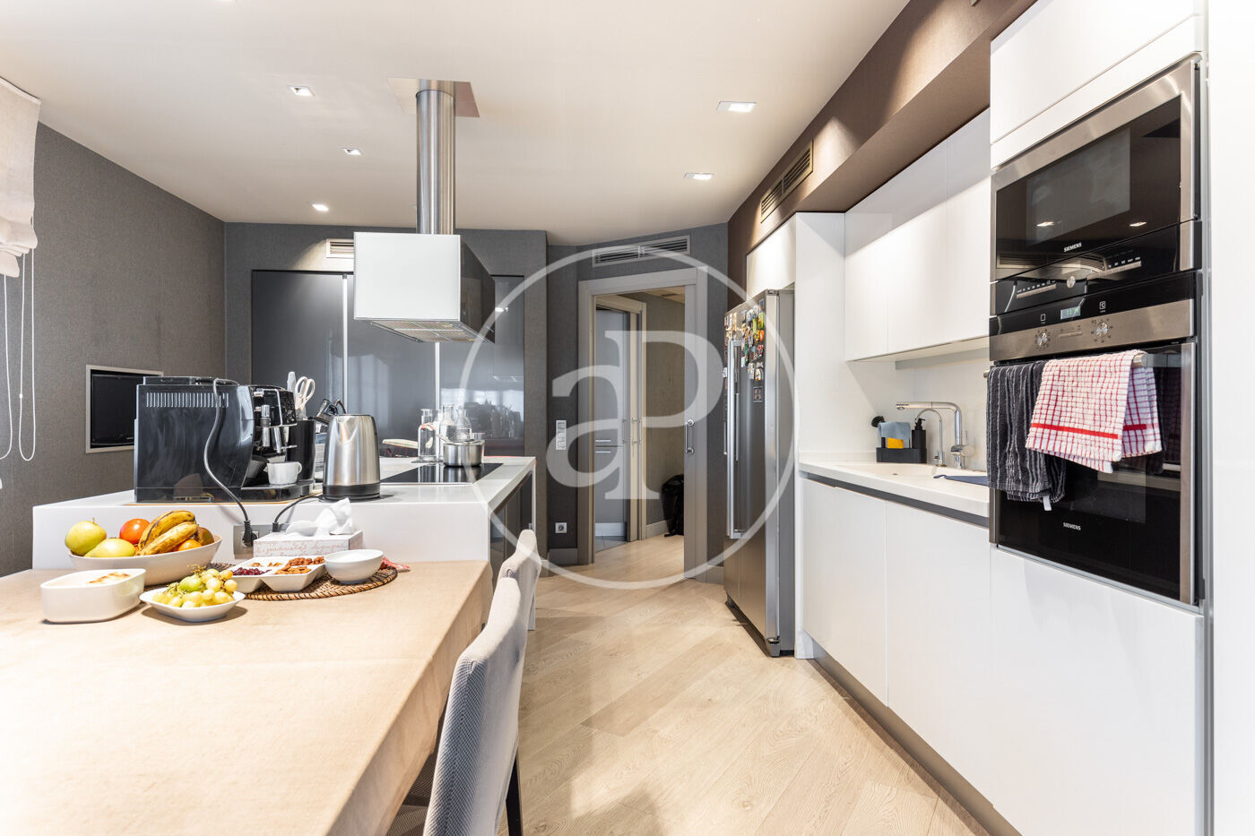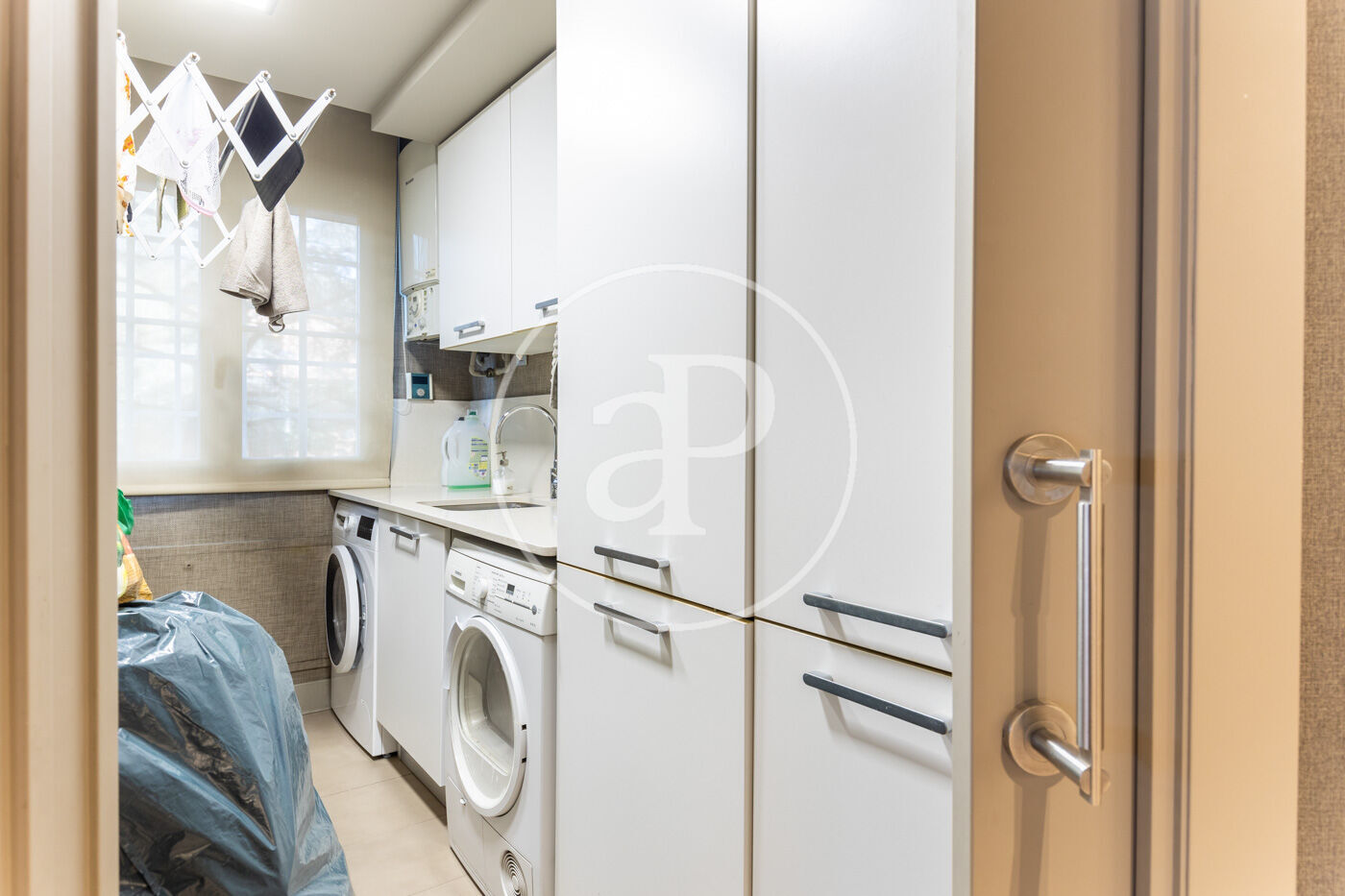 La zona de día está compuesta por un salón comedor de diseño con espacios abiertos y minimalistas y una cocina moderna completamente integrada al salón además de un lavadero aparte. Por otro lado, tres habitaciones dobles con armarios empotrados, dos baños completos y un vestidor componen la zona de noche.