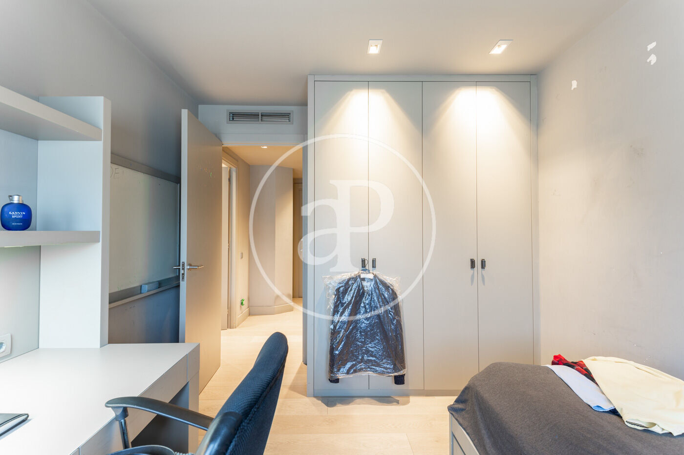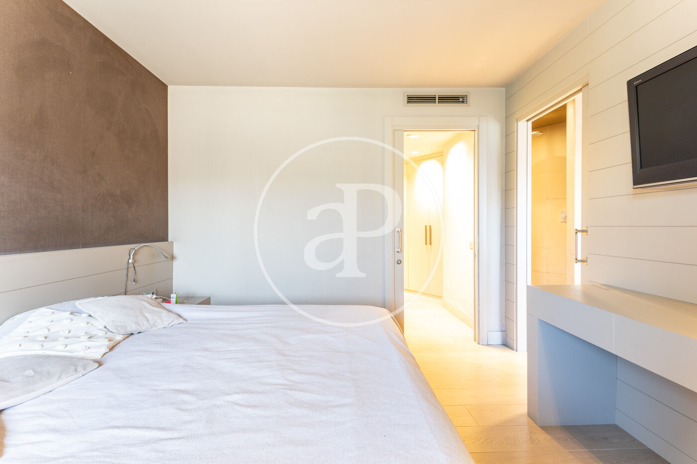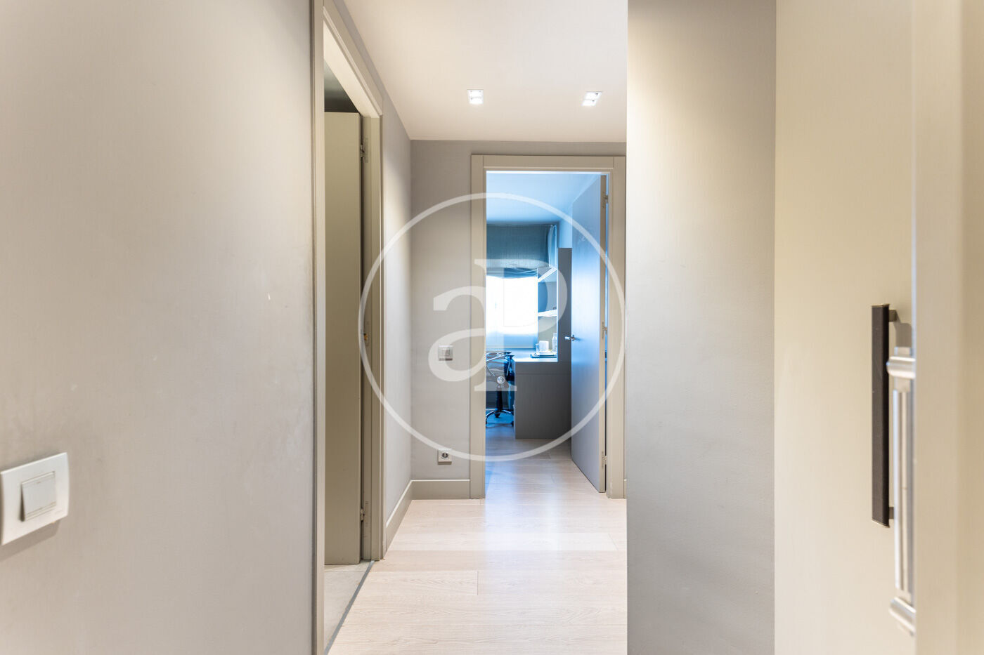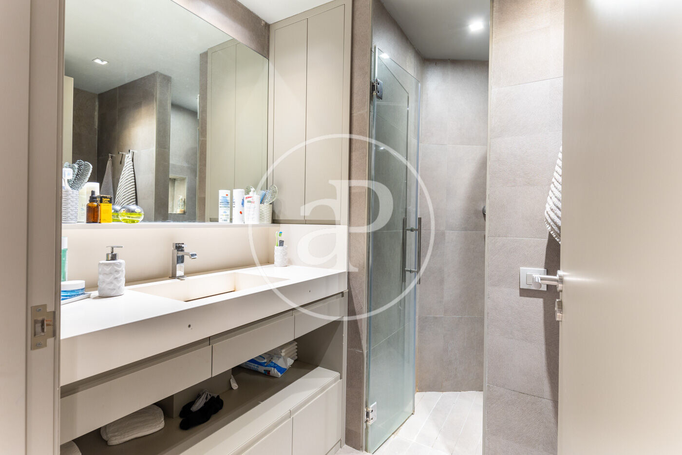La zona de día está compuesta por un salón comedor de diseño con espacios abiertos y minimalistas y una cocina moderna completamente integrada al salón además de un lavadero aparte. Por otro lado, tres habitaciones dobles con armarios empotrados, dos baños completos y un vestidor componen la zona de noche.