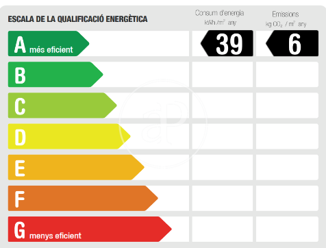Más eficiente Menos eficie Calificación energética Consumo energía Kw h/m² año Emisiones Co/m² año 39.00 6.00
