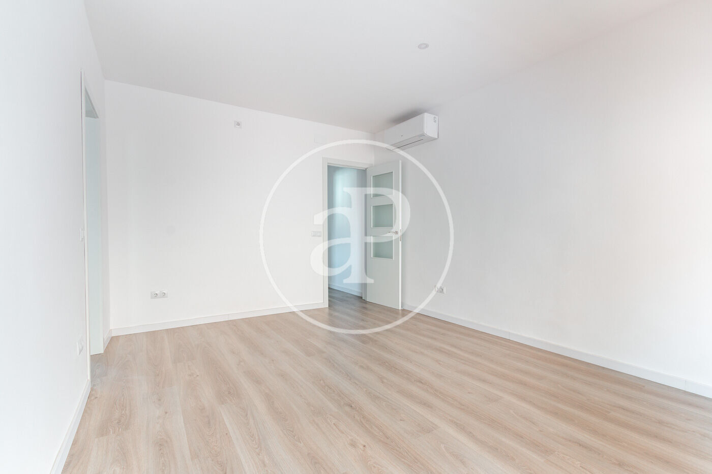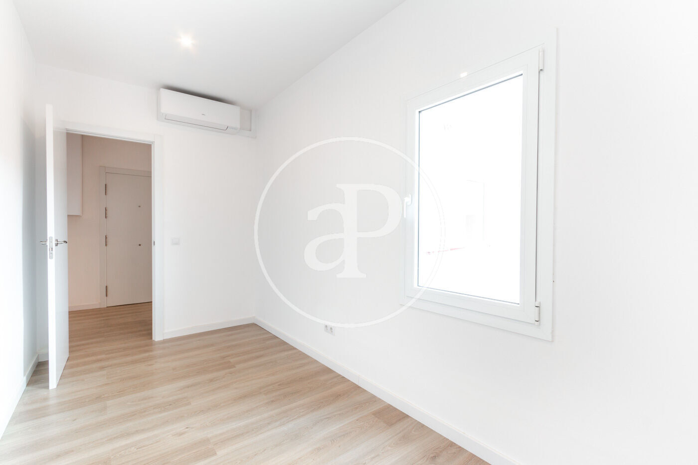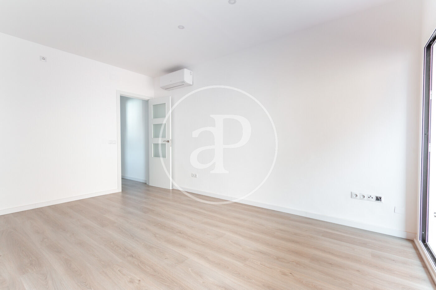 Accediendo por el recibidor, encontramos de frente una habitación amplia y luminosa con un split de aire frío/calor.