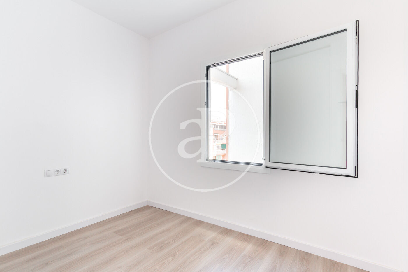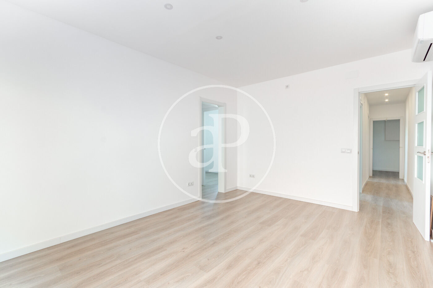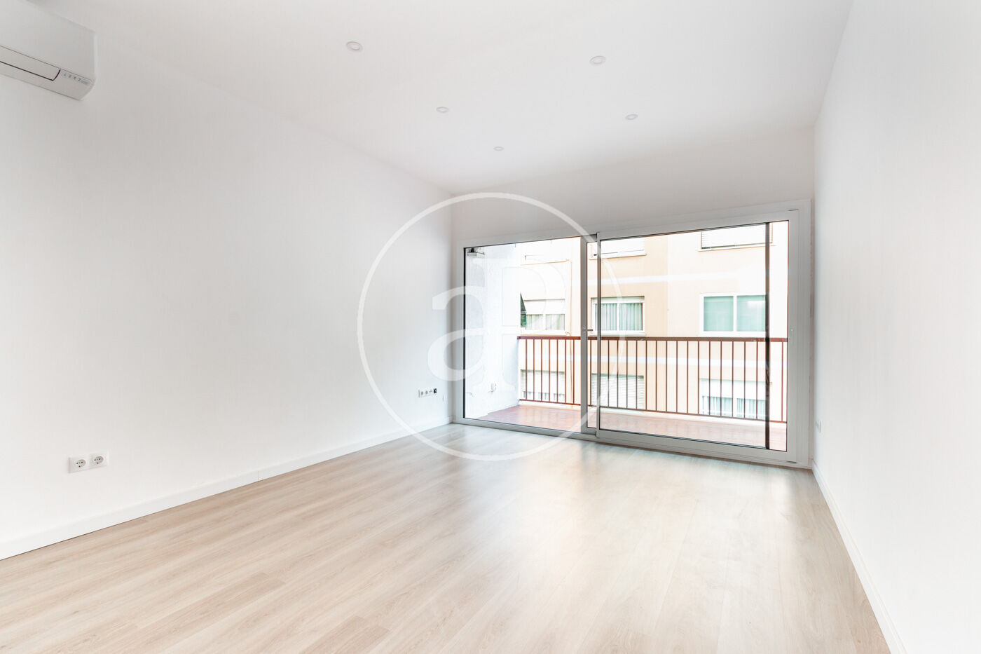 Accediendo por el recibidor, encontramos de frente una habitación amplia y luminosa con un split de aire frío/calor.