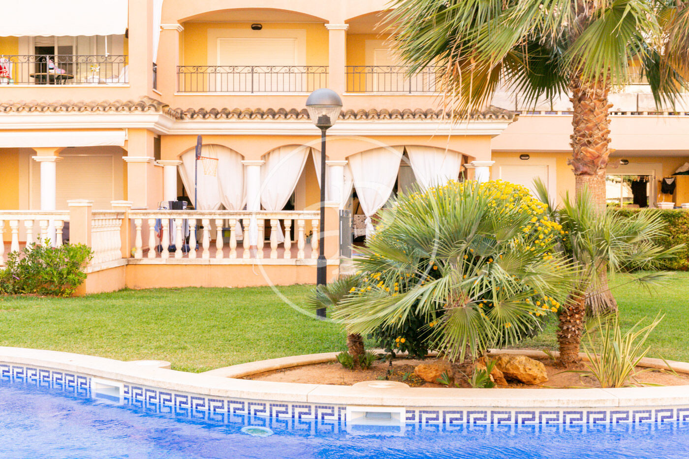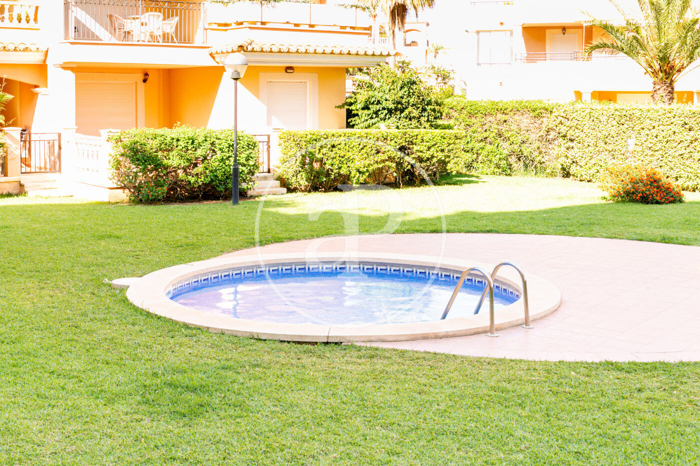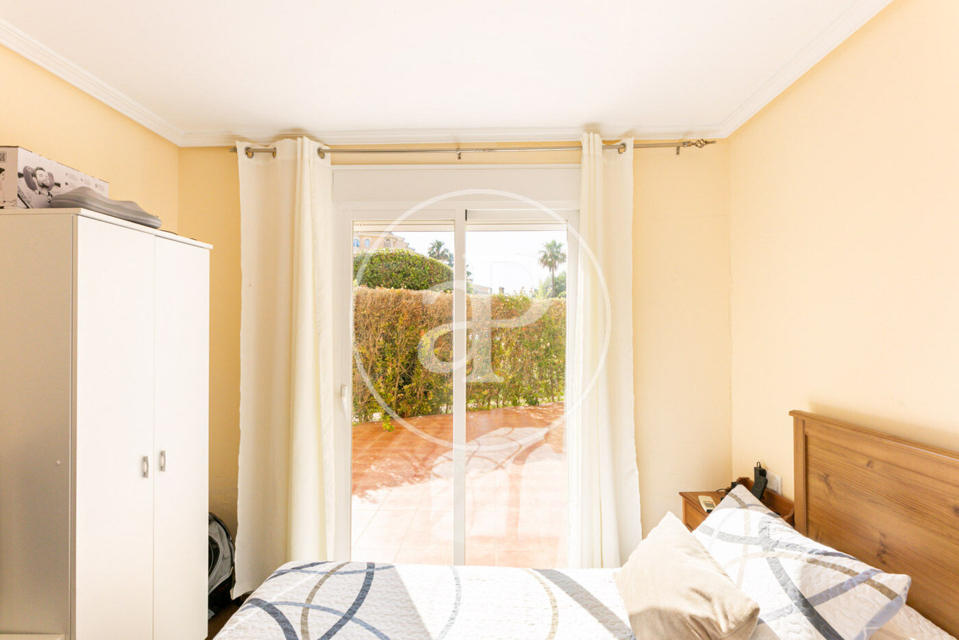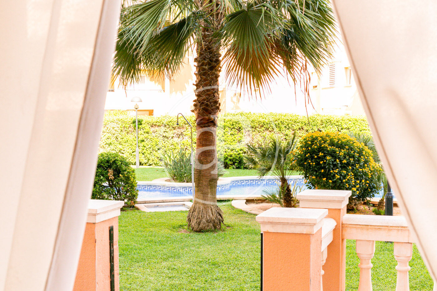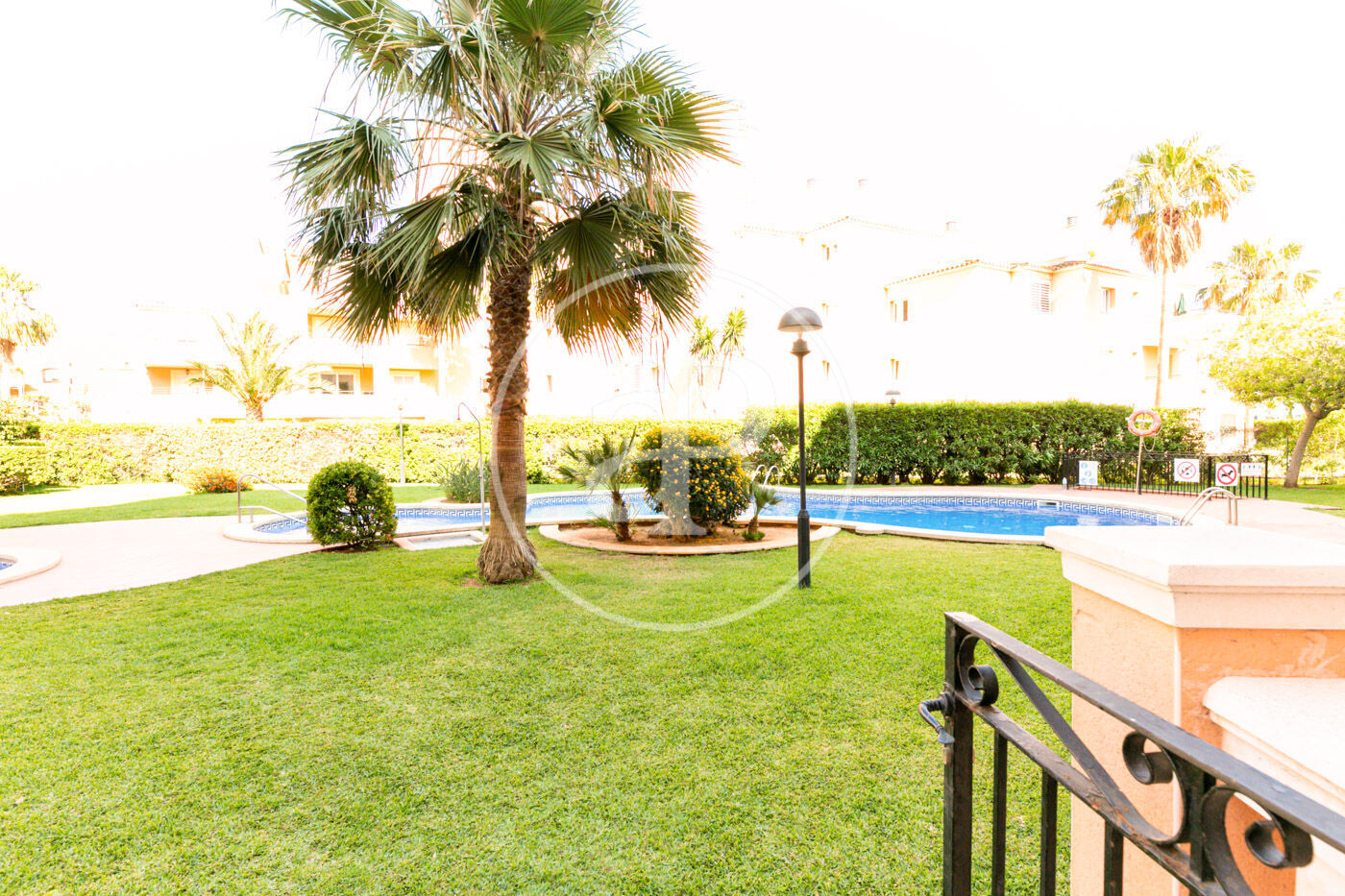 Esta planta baja está situada en un residencial con jardín y piscina al cual se accede directamente desde la gran terraza.