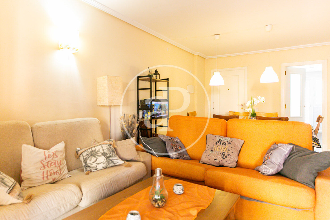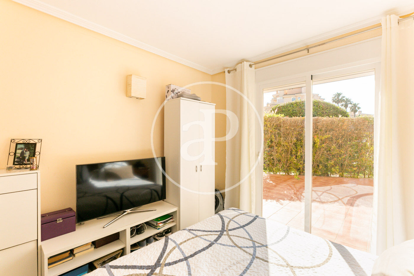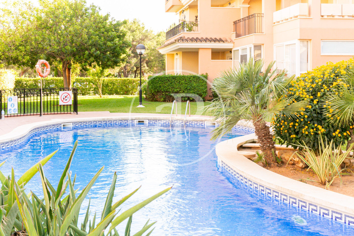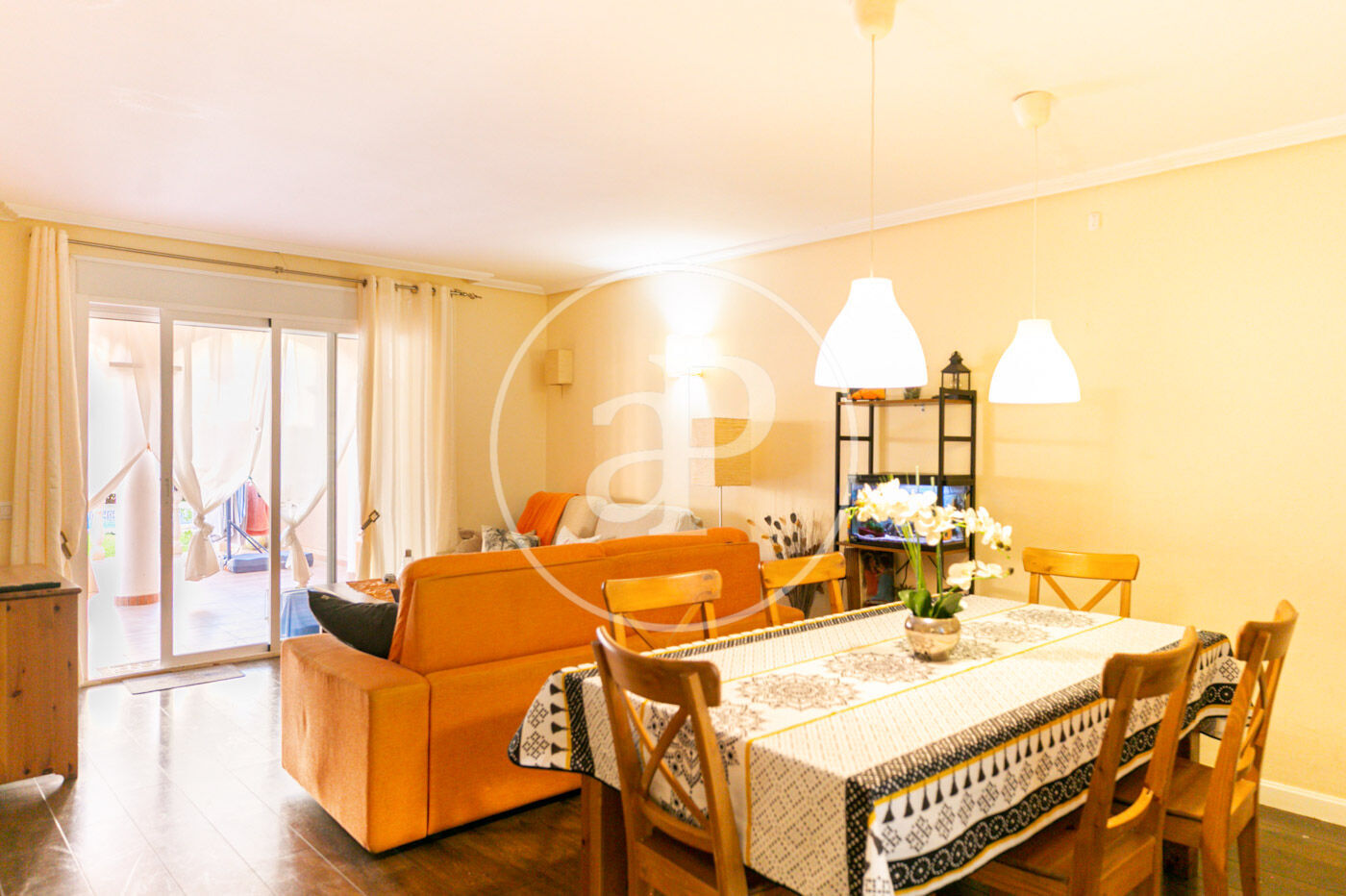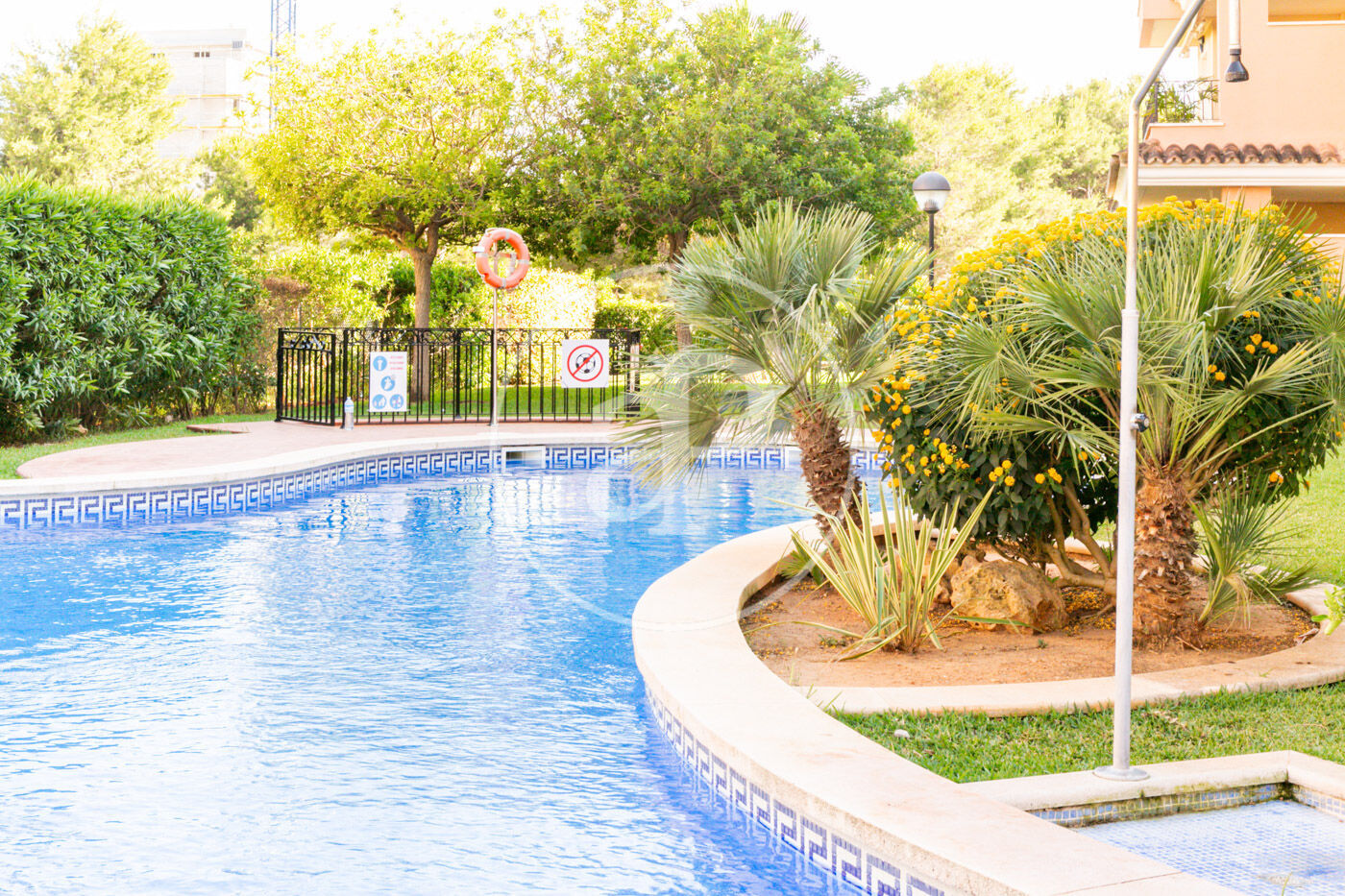 Esta planta baja está situada en un residencial con jardín y piscina al cual se accede directamente desde la gran terraza.