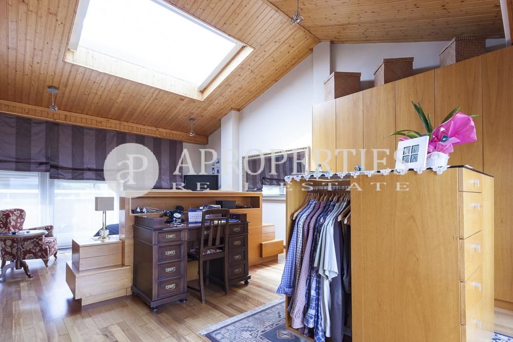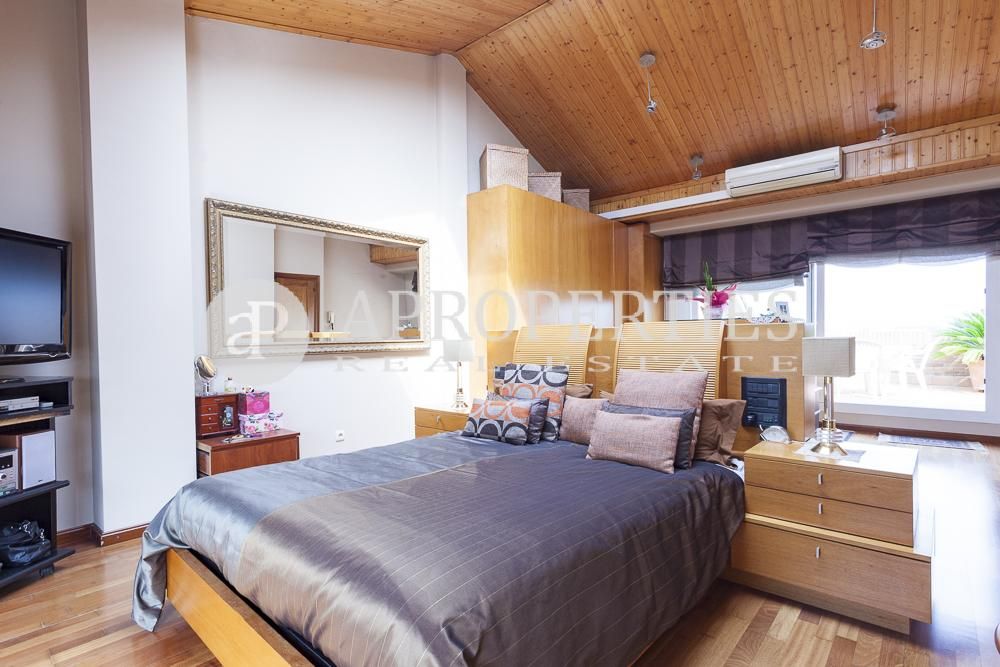 Buhardilla: Suite de gran tamaño con solárium con vista a la Mola, amplia zona de vestidor y despacho, terraza con vistas al jardín y piscina. Ventana tipo Velux en techo.