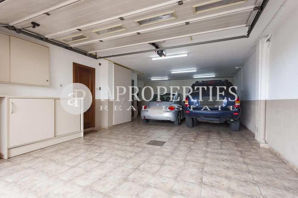 Planta sótano: parking para cuatro coches embaldosado, armarios empotrados de gran tamaño, trastero y lavamanos. Amplio y luminoso recibidor de entrada con escaleras de acceso a la primera planta.